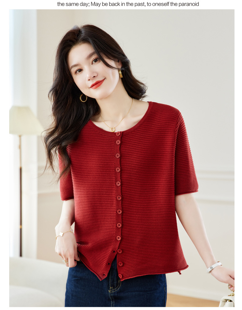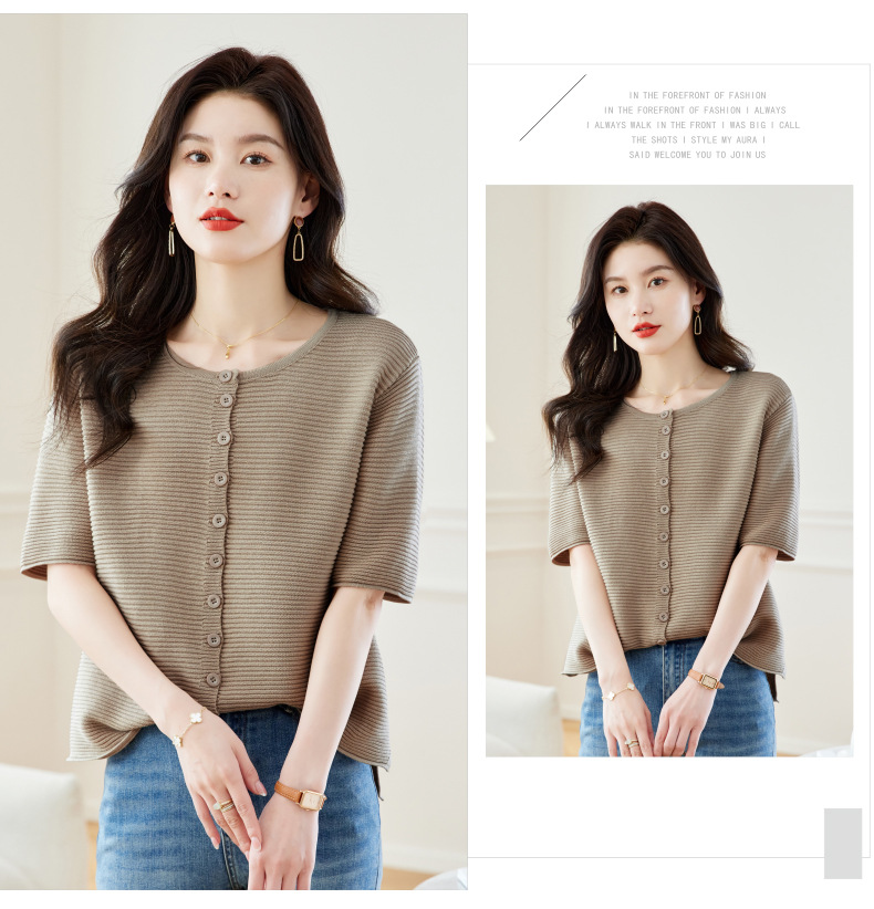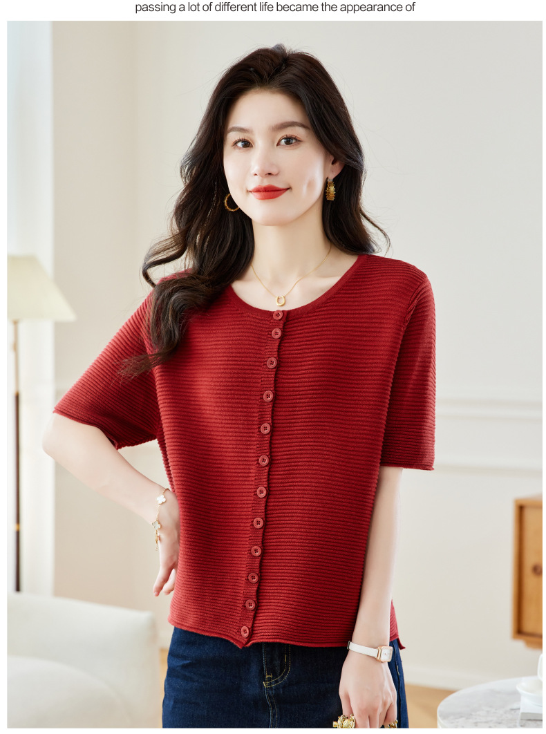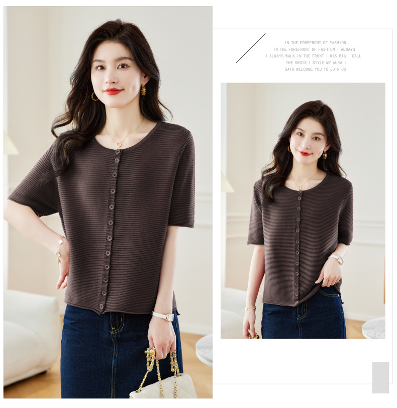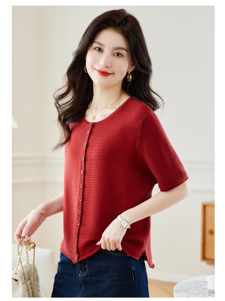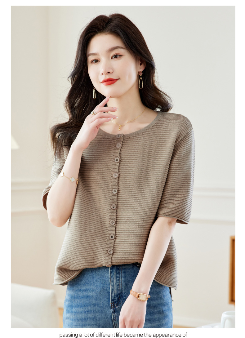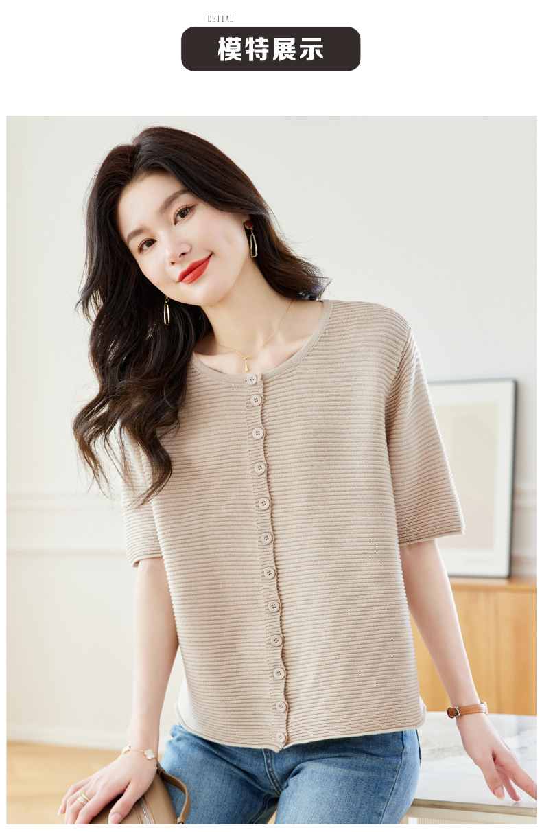 CC17-19762024新款圆领夏装短袖T恤妈妈针织衫宽松中老年显瘦遮肚子上衣女