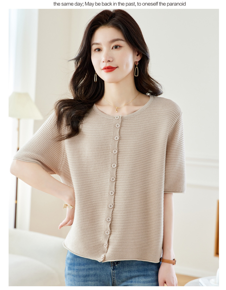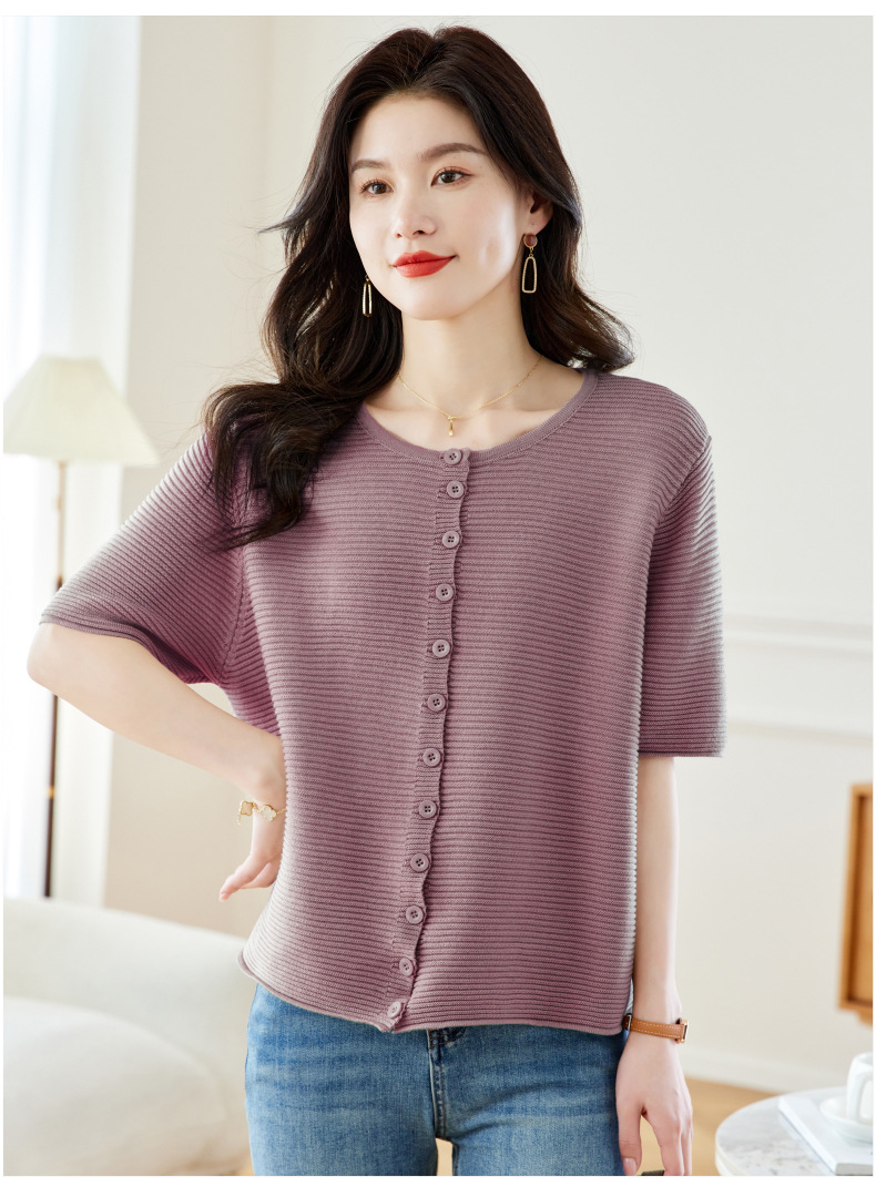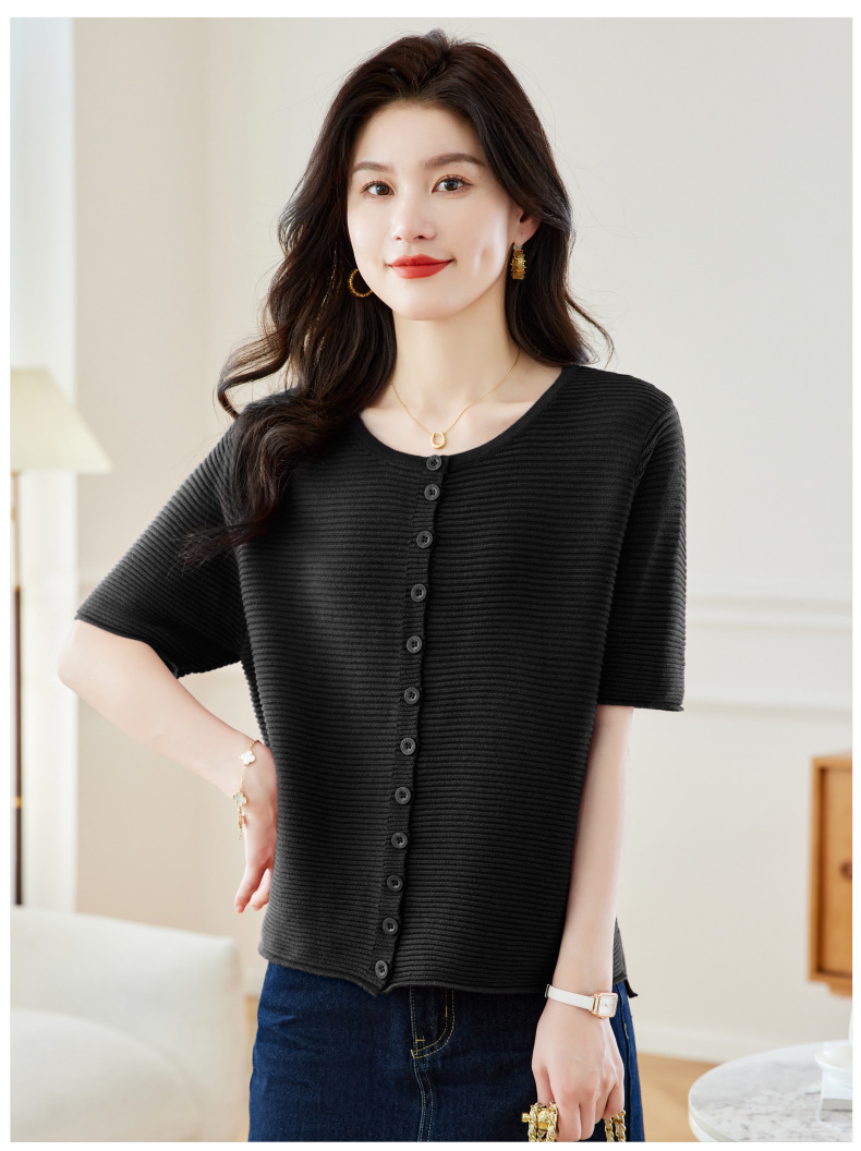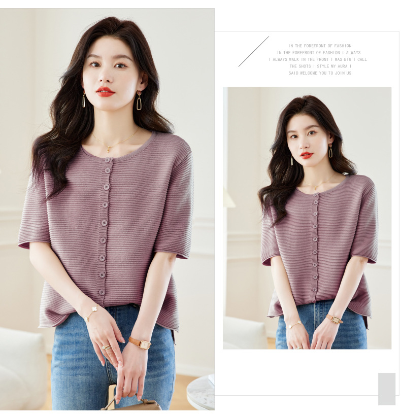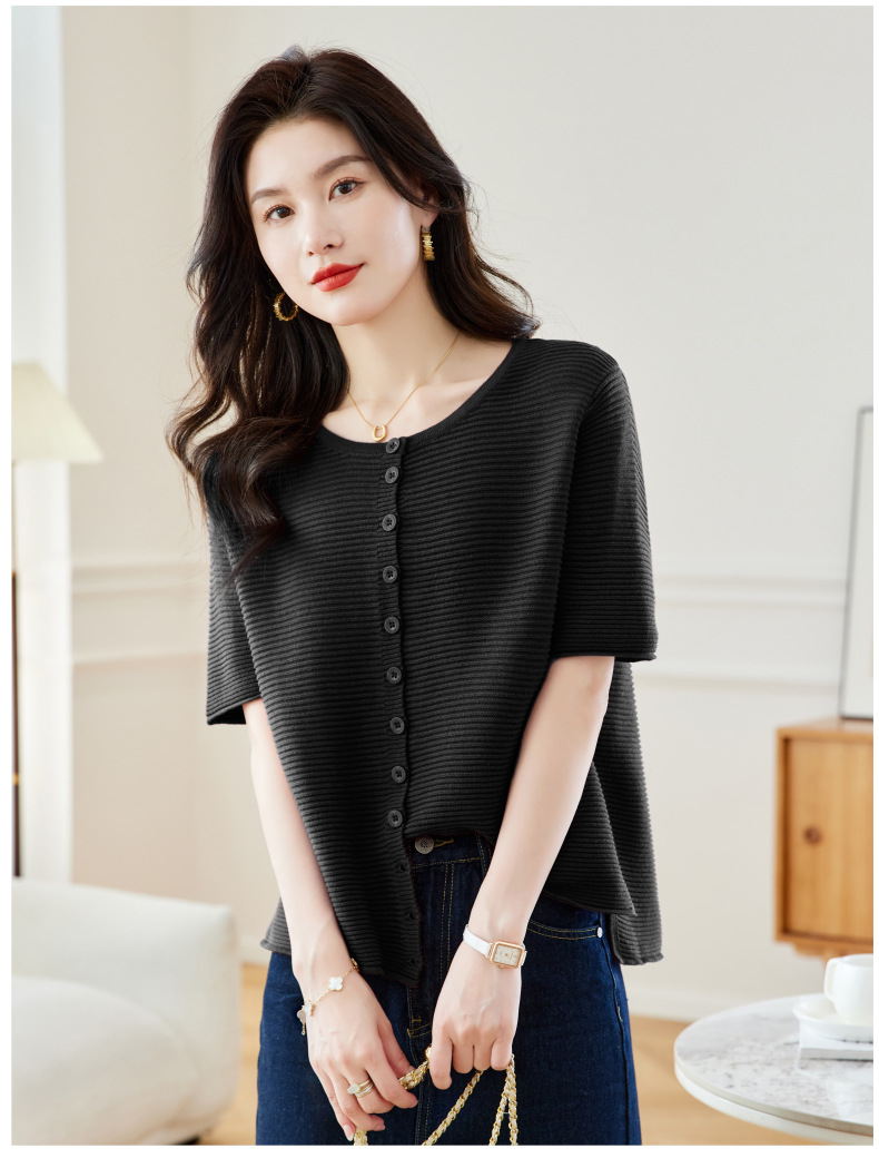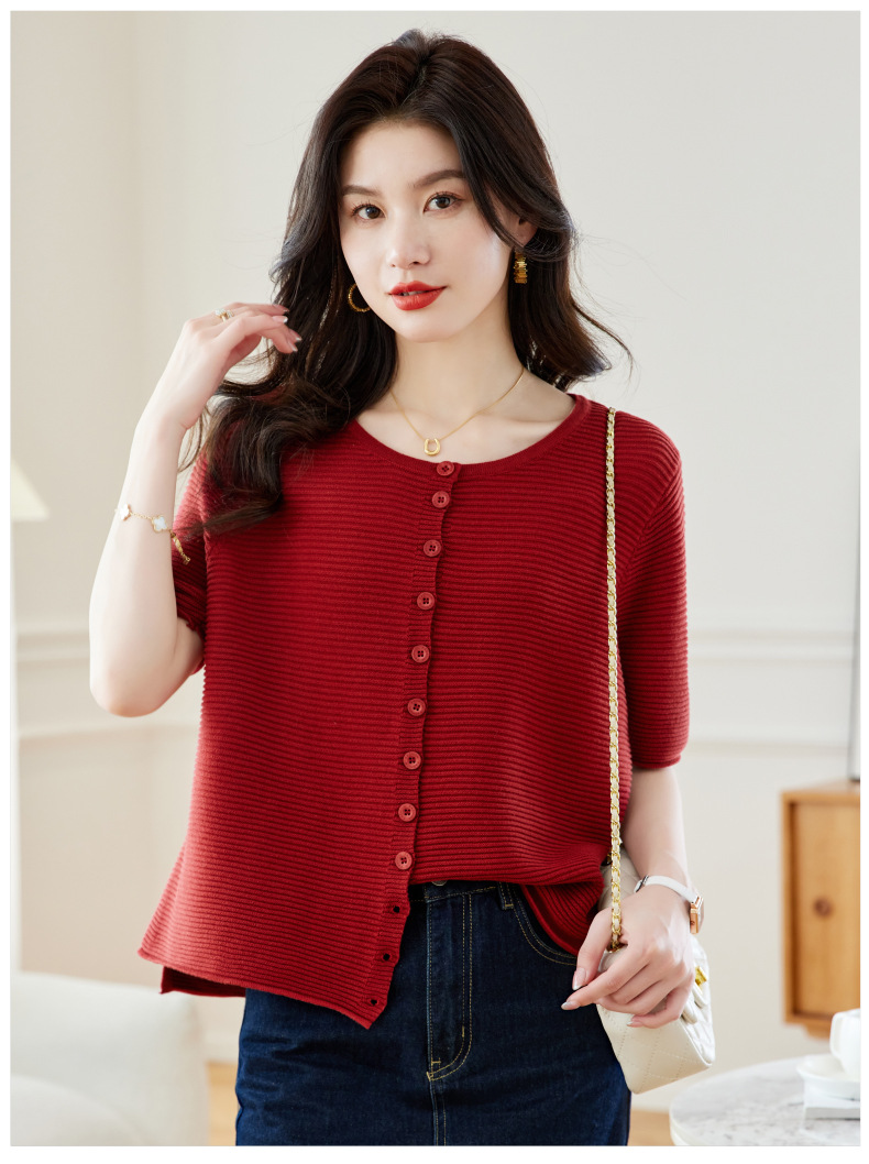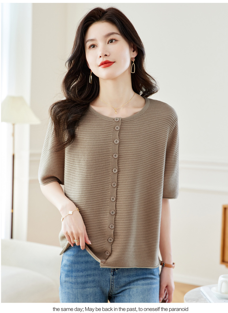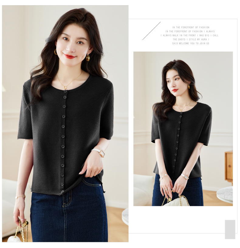 CC17-19762024新款圆领夏装短袖T恤妈妈针织衫宽松中老年显瘦遮肚子上衣女