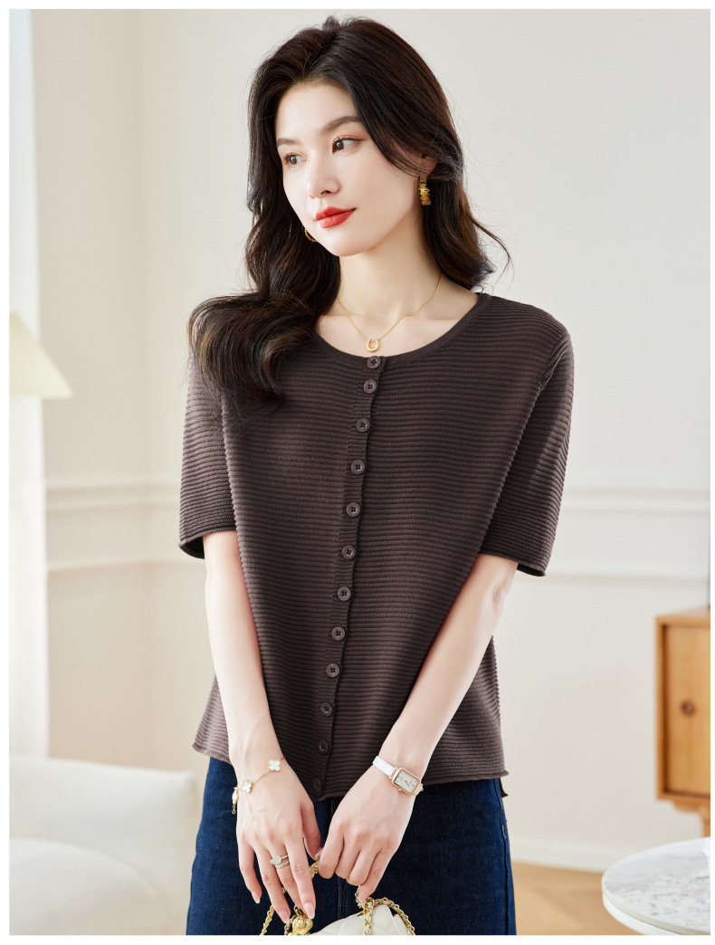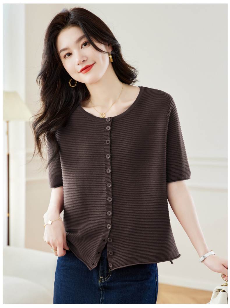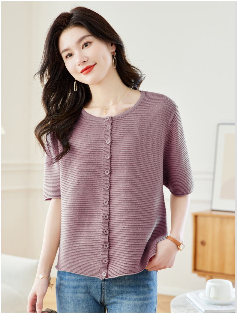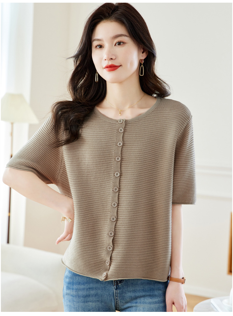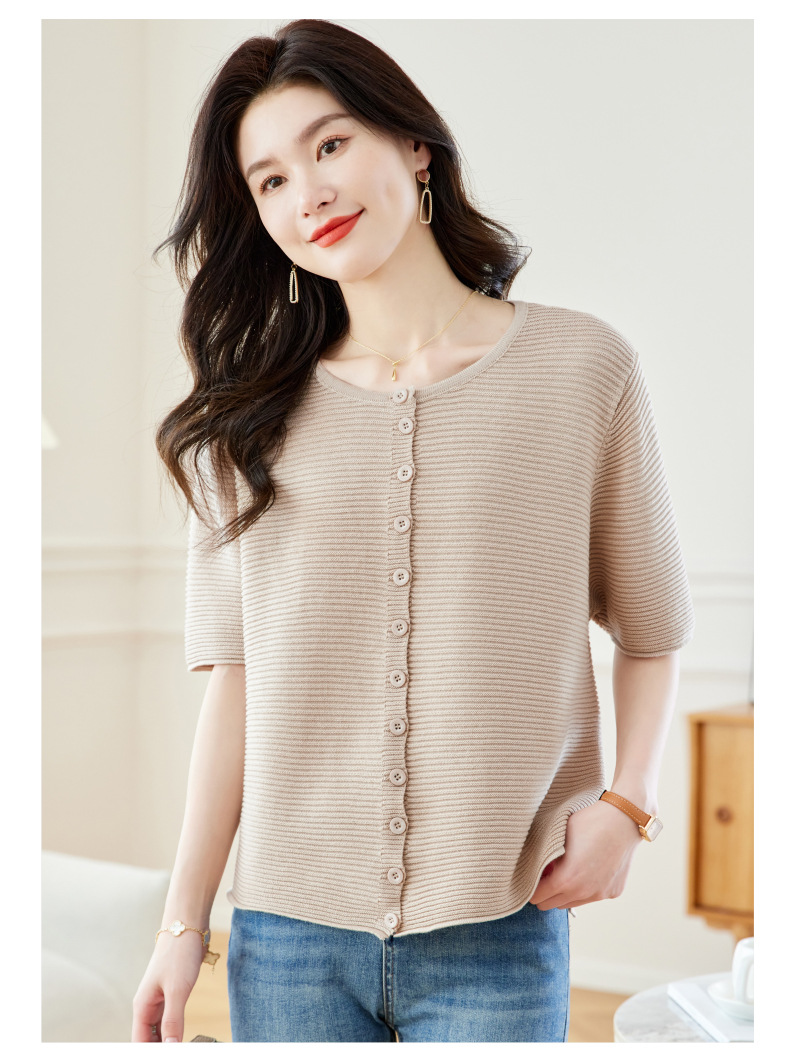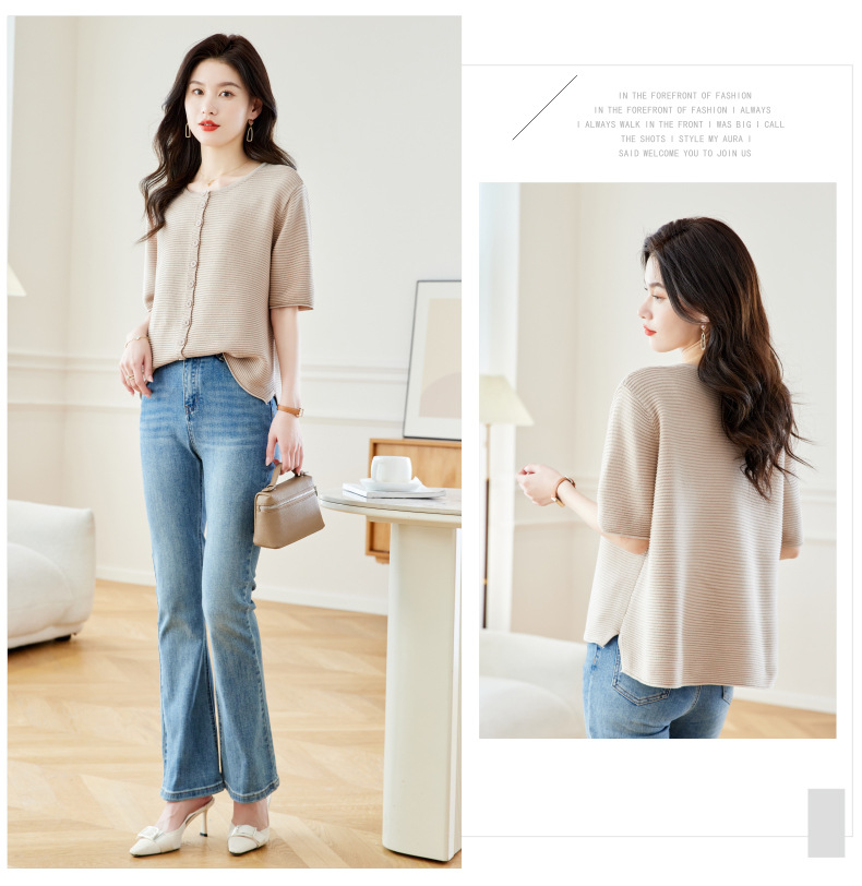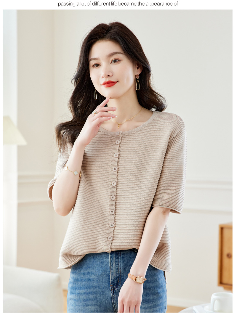 CC17-19762024新款圆领夏装短袖T恤妈妈针织衫宽松中老年显瘦遮肚子上衣女