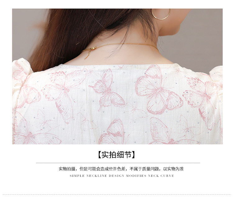 QYMOMS-PA475-L蝴蝶印花长款修身时尚大摆连衣裙24年夏款短袖方领收腰显瘦 商品图3