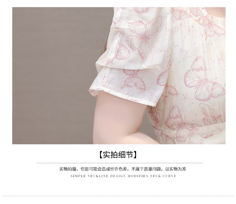 QYMOMS-PA475-L蝴蝶印花长款修身时尚大摆连衣裙24年夏款短袖方领收腰显瘦 商品图2