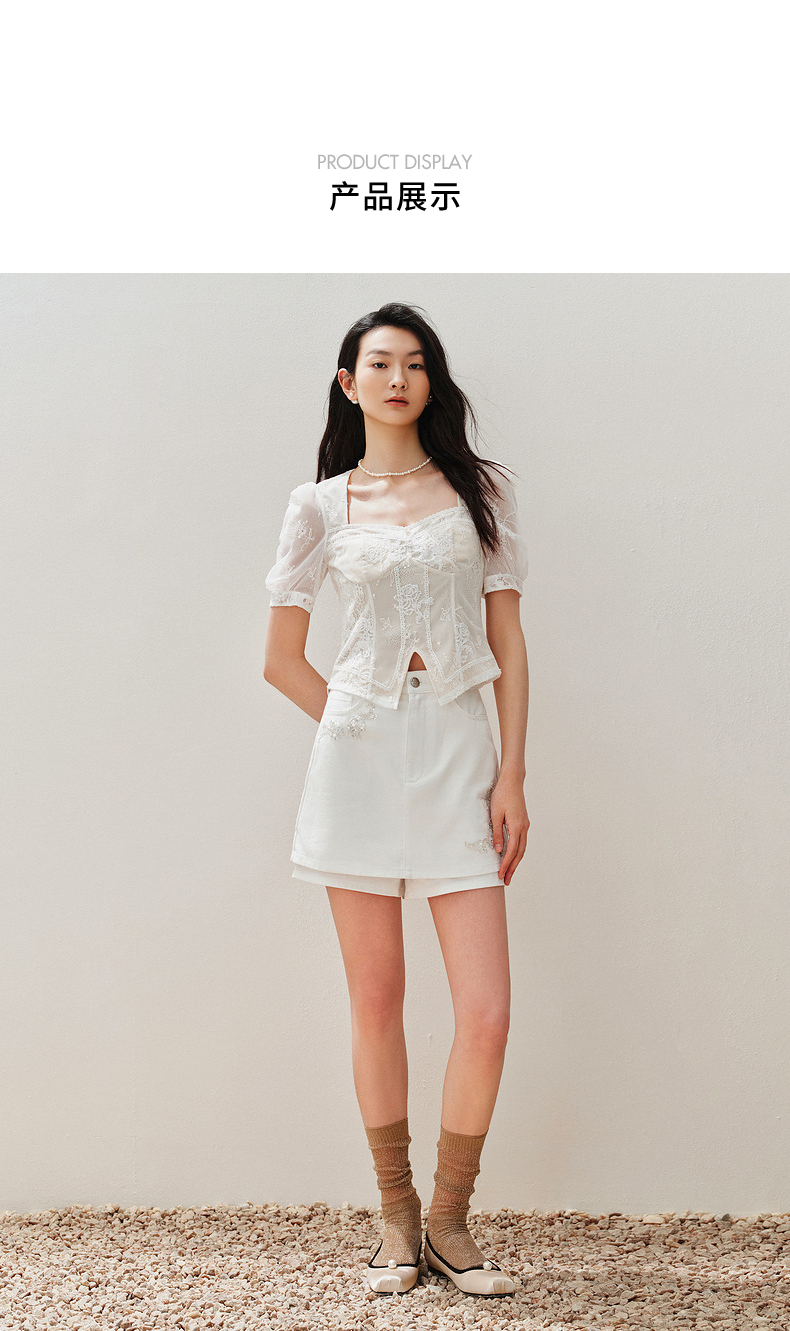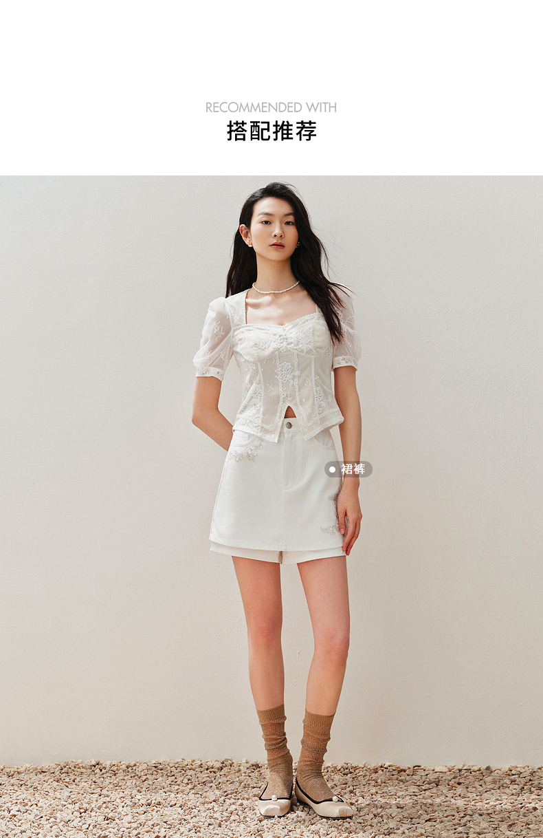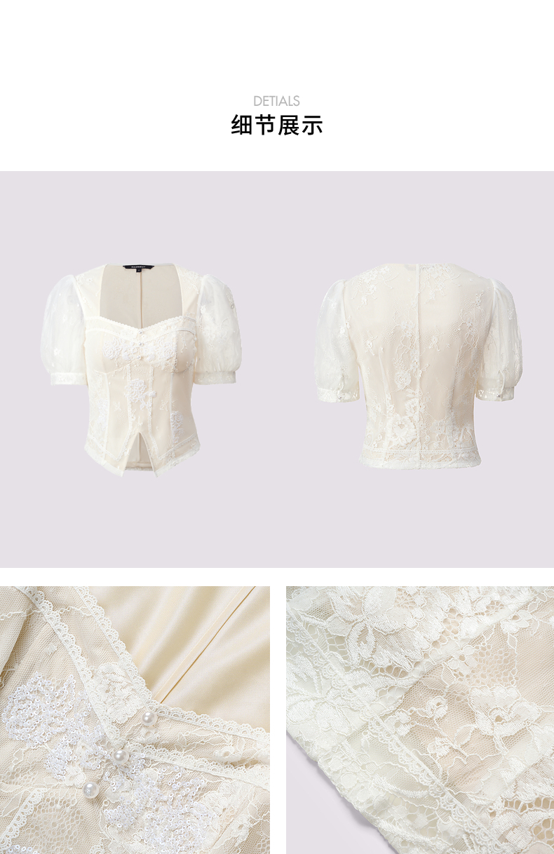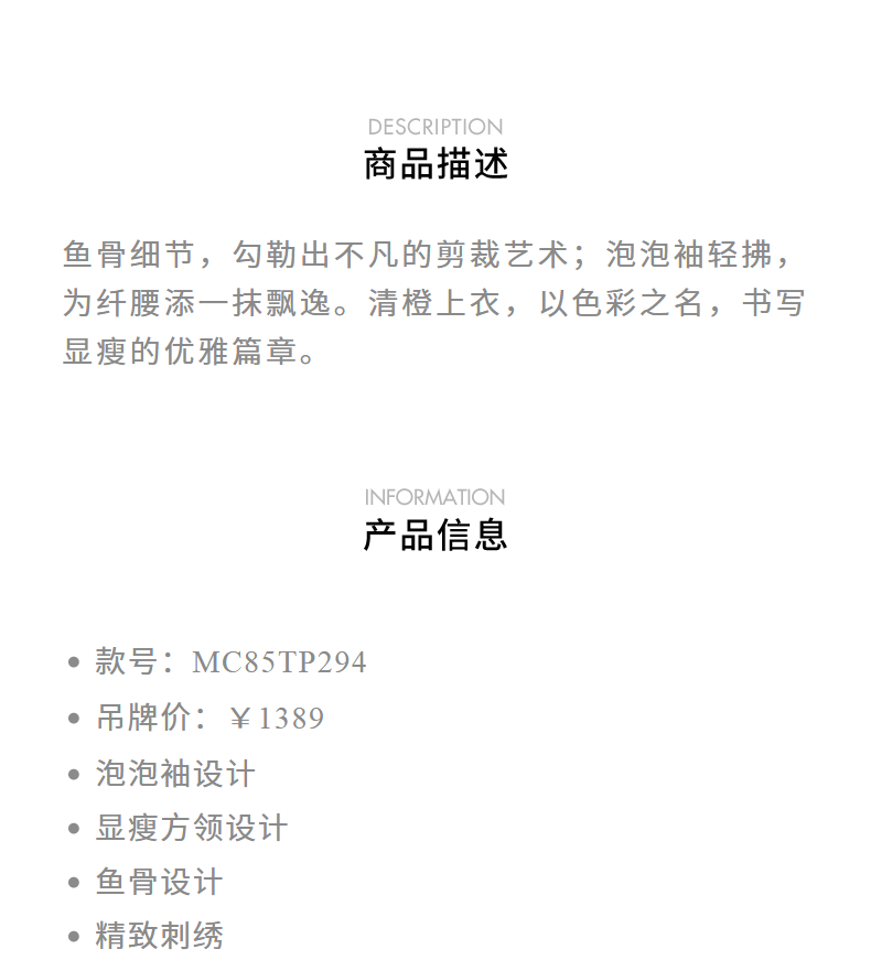 【静奢度假-商场同款】MAXRIENY宫廷感轻盈飘逸鱼骨结构上衣女(货号:MC85TP294)