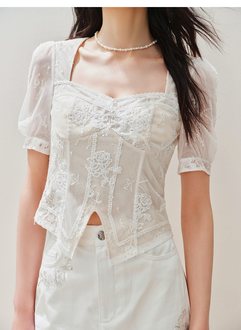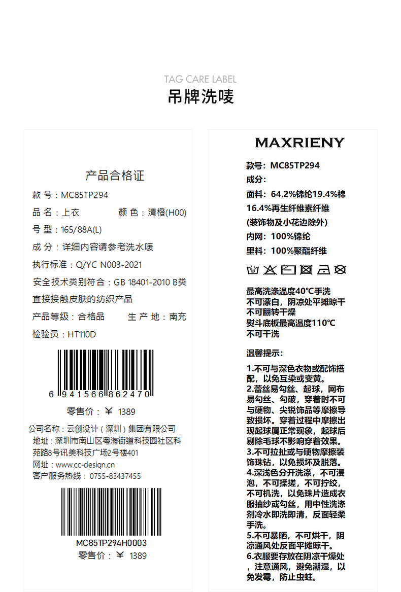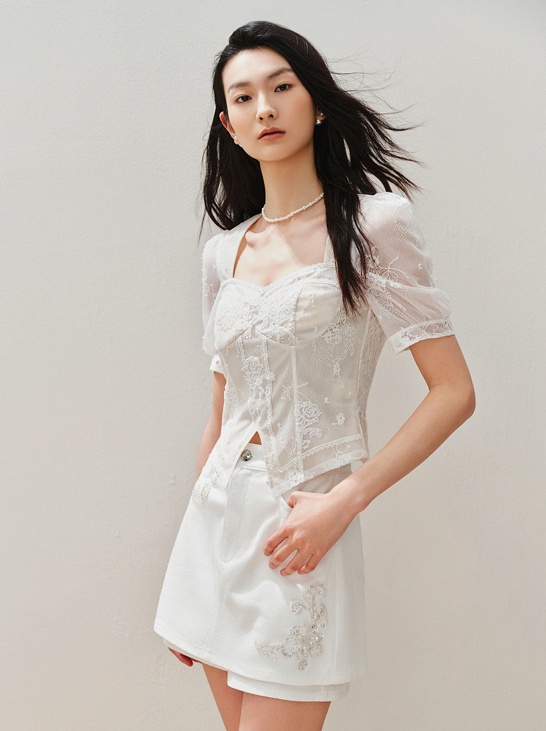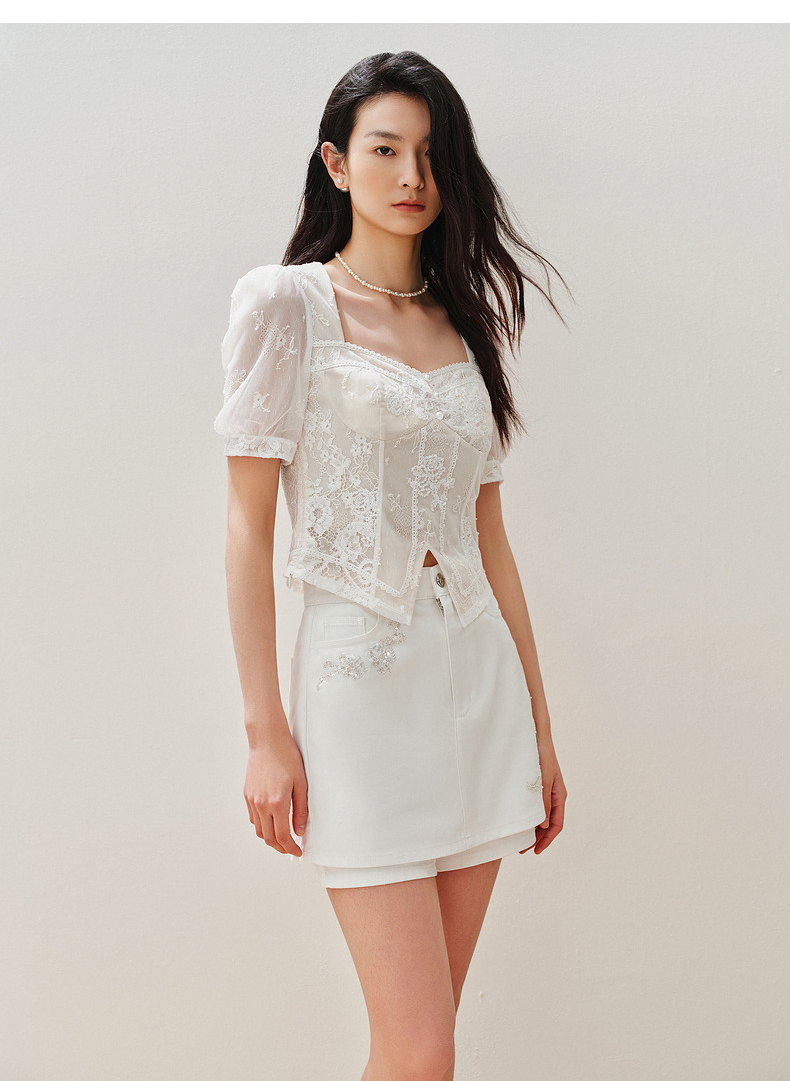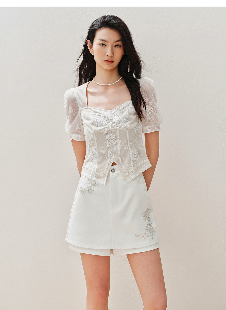 【静奢度假-商场同款】MAXRIENY宫廷感轻盈飘逸鱼骨结构上衣女(货号:MC85TP294)