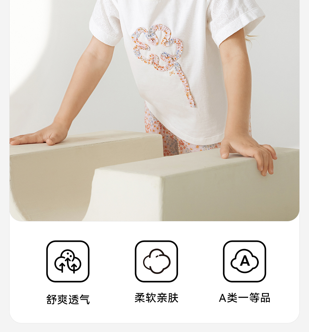 【商场同款】英氏女童打底衫春夏季短袖T恤透气休闲上衣2025新款