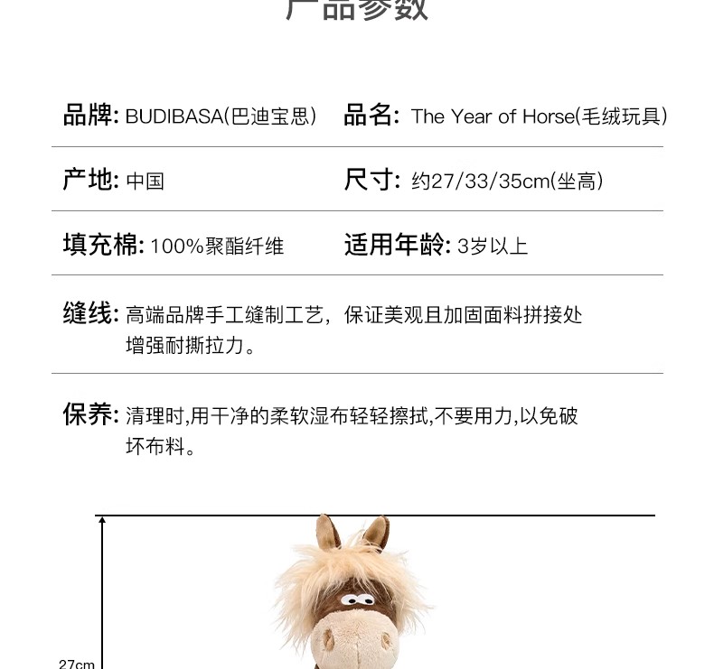 BUDIBASA巴迪宝思马年限定玩偶粉星白马-波拉Pola