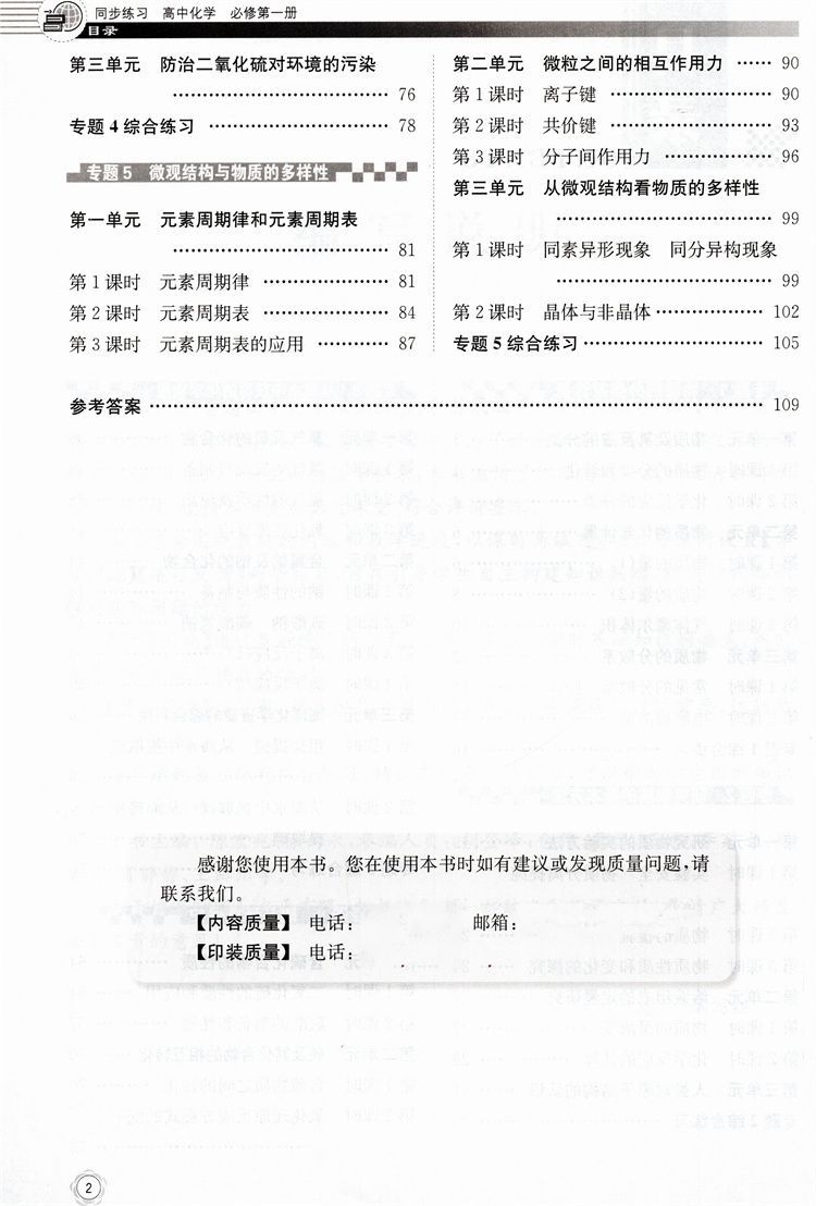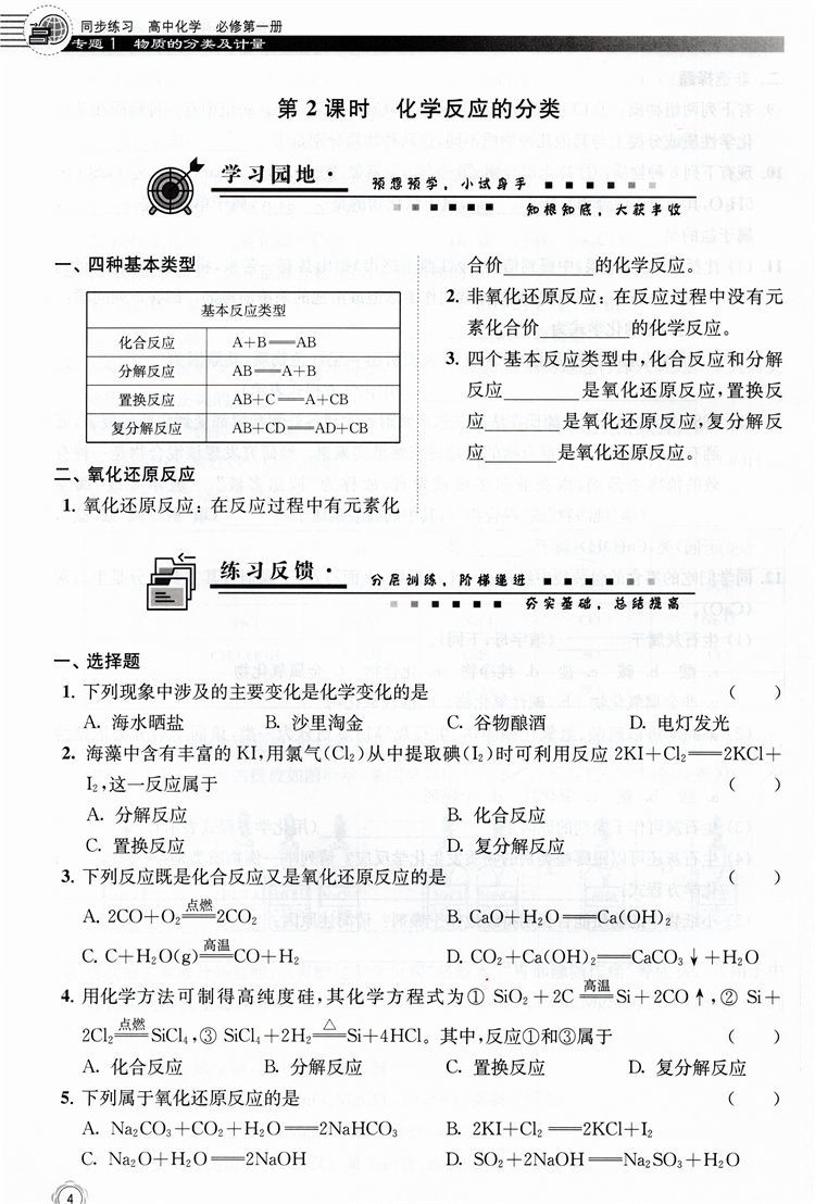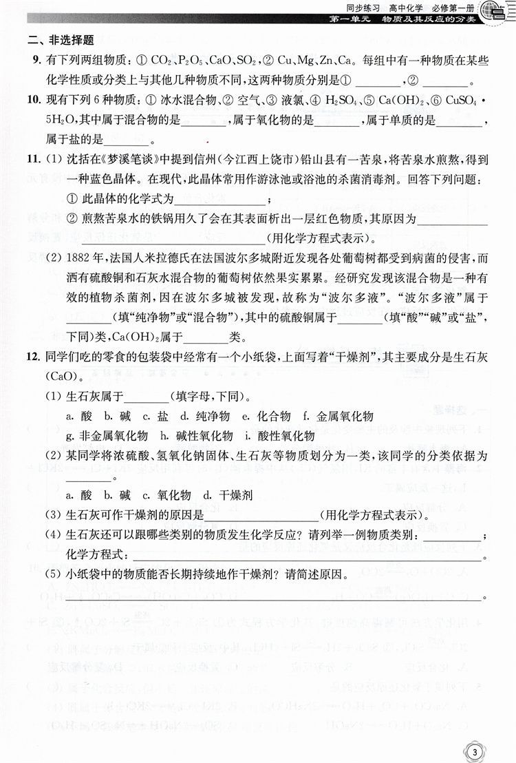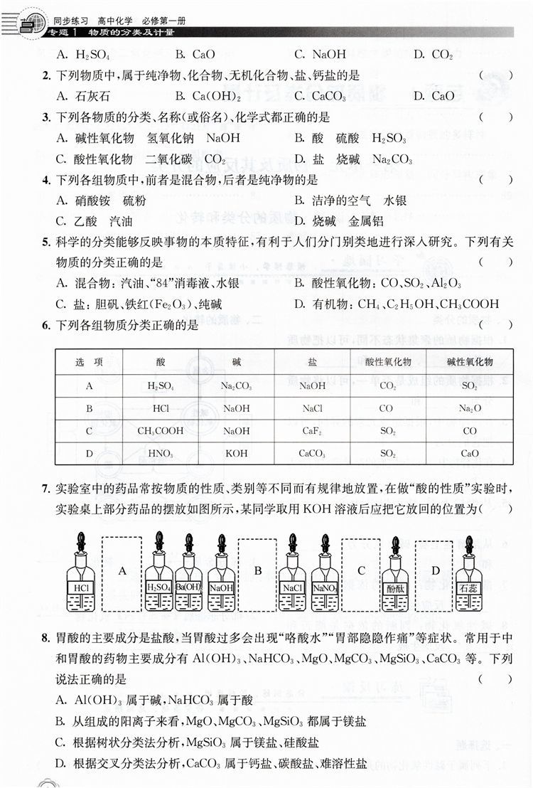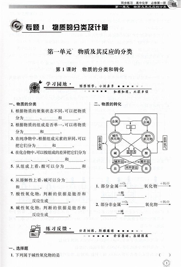 2025年 同步练习 高中化学 必修第1册 苏教版 必修第一册高中教辅