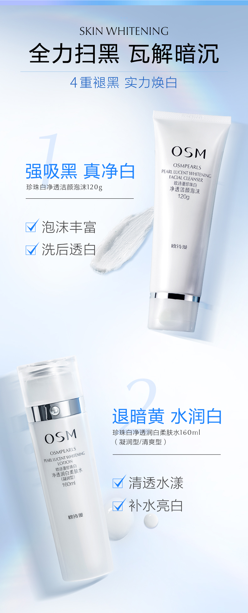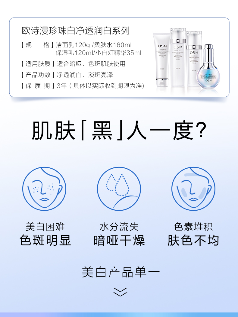 欧诗漫珍珠白臻白净透礼盒套装 美白淡斑补水保湿【新老包装随机发货】