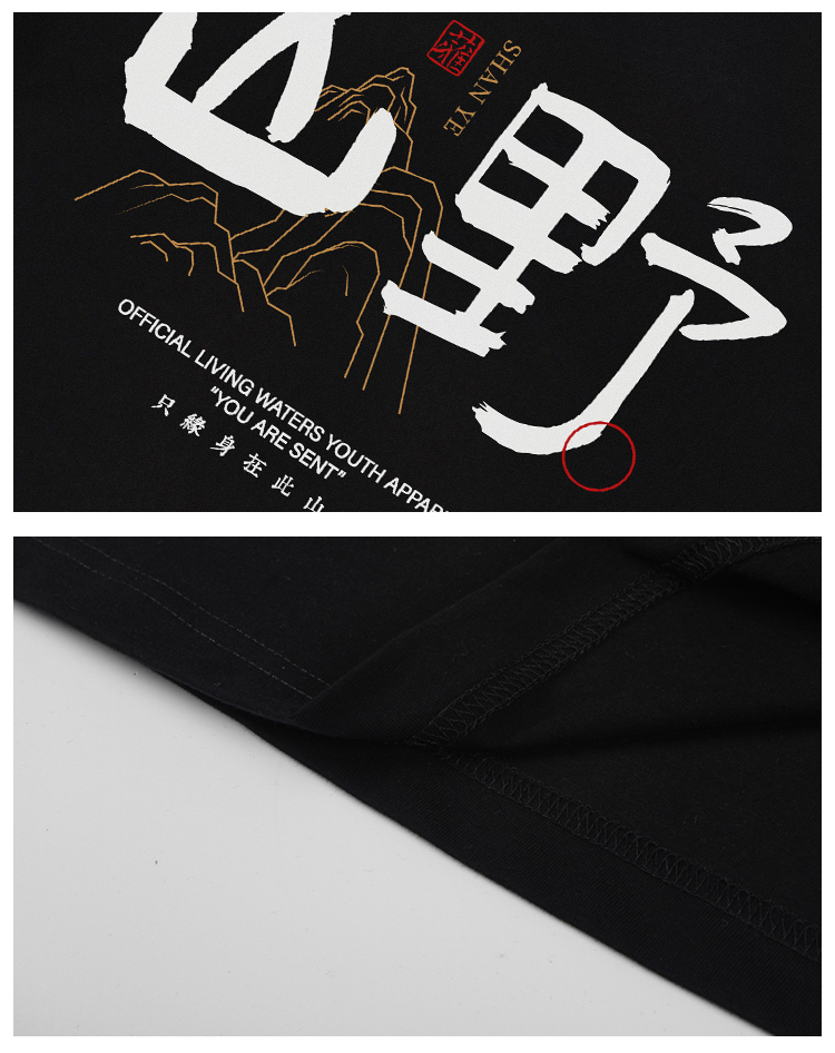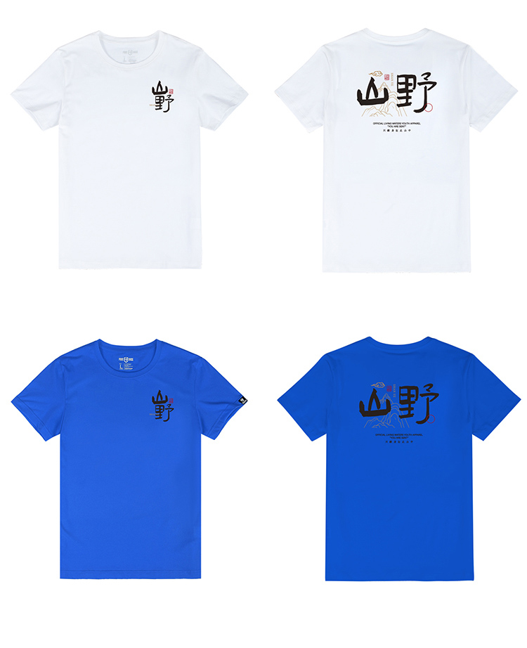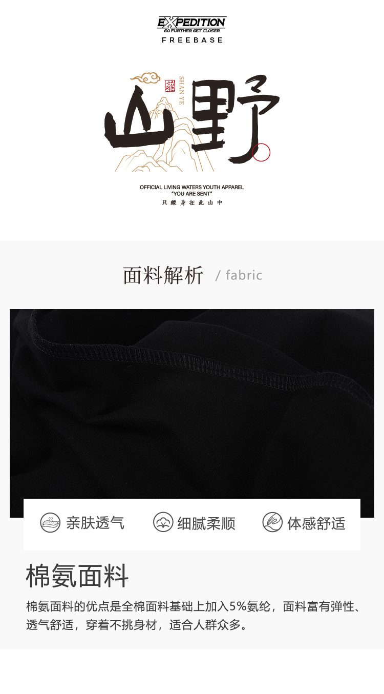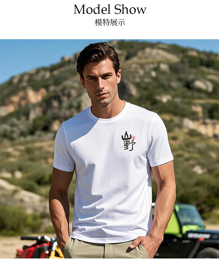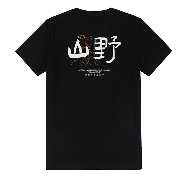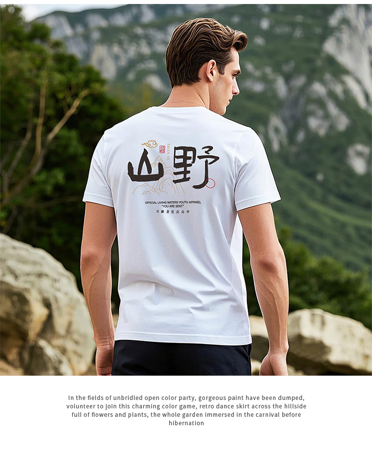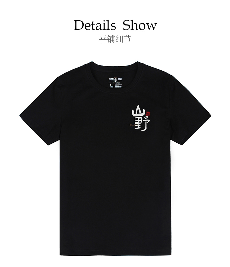 自由基地国风毛笔字休闲户外露营短袖T恤夏季新款情侣弹力棉上衣 NMT-2212
