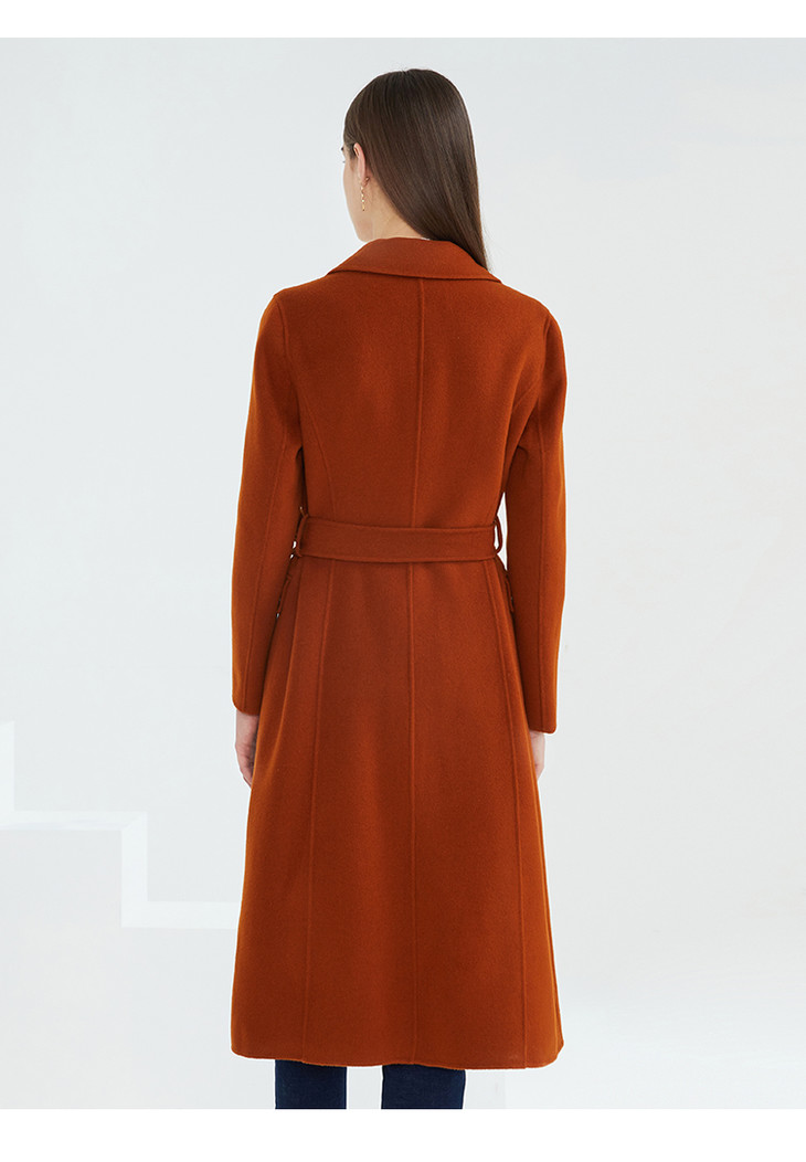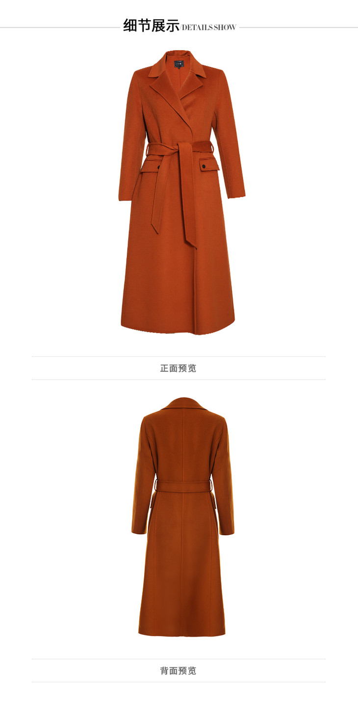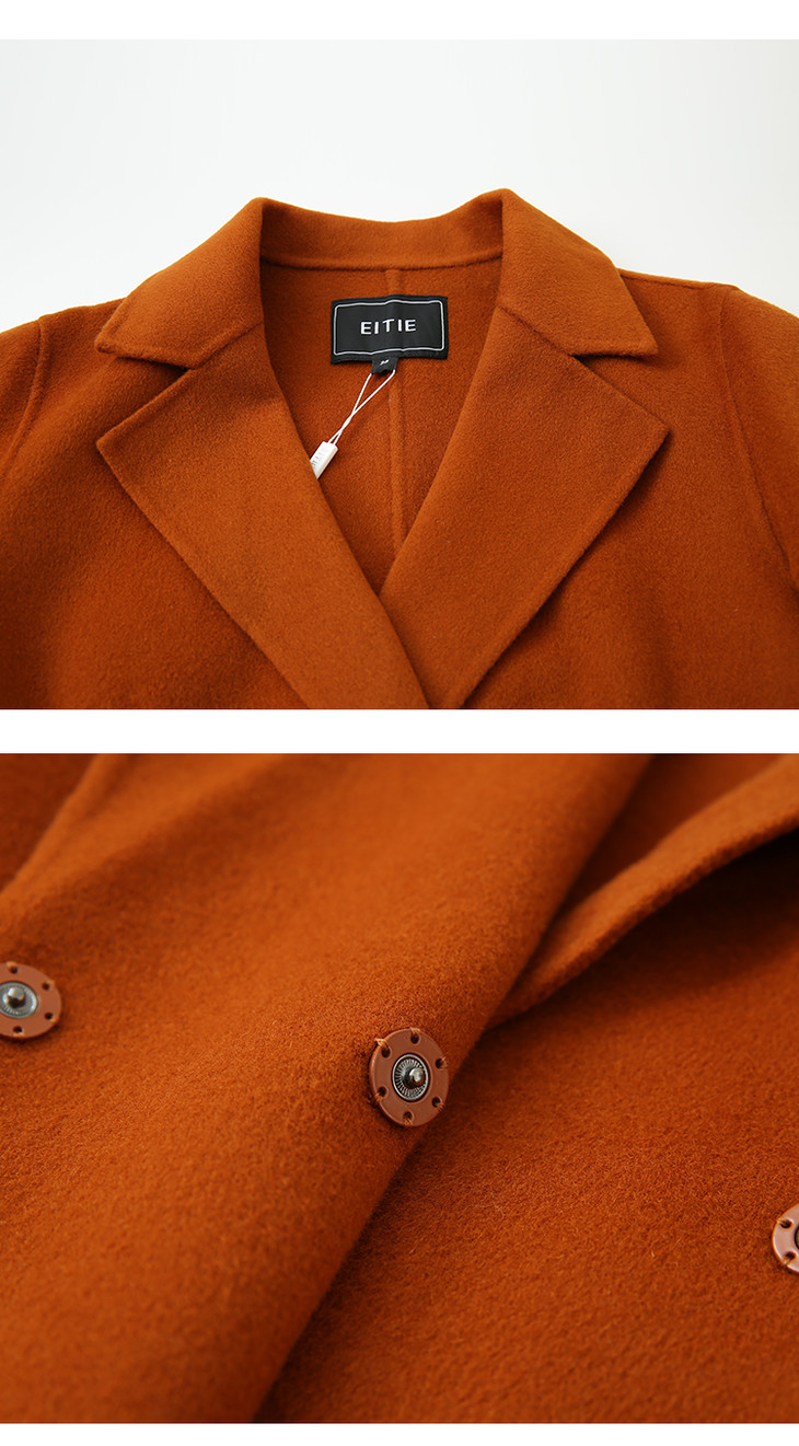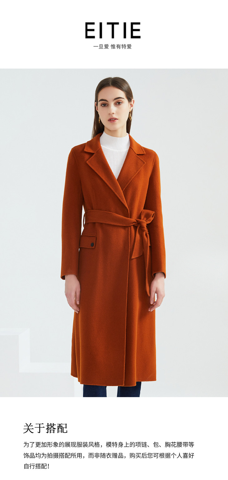 EITIE爱特爱冬季新款经典气质翻领收腰长款羊毛呢大衣女外套6414113