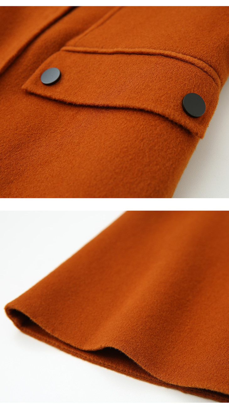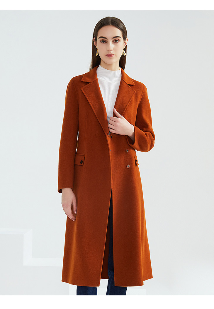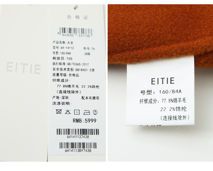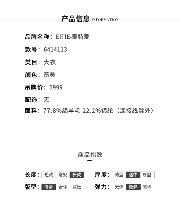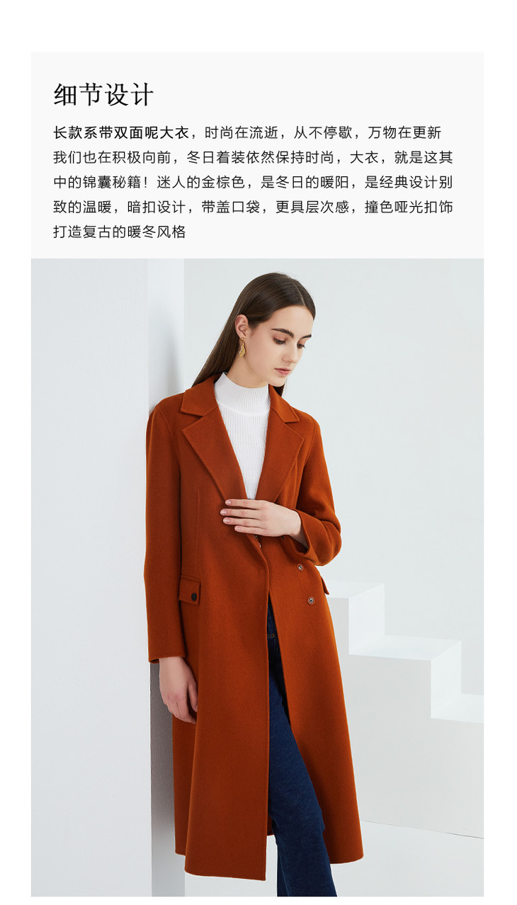 EITIE爱特爱冬季新款经典气质翻领收腰长款羊毛呢大衣女外套6414113