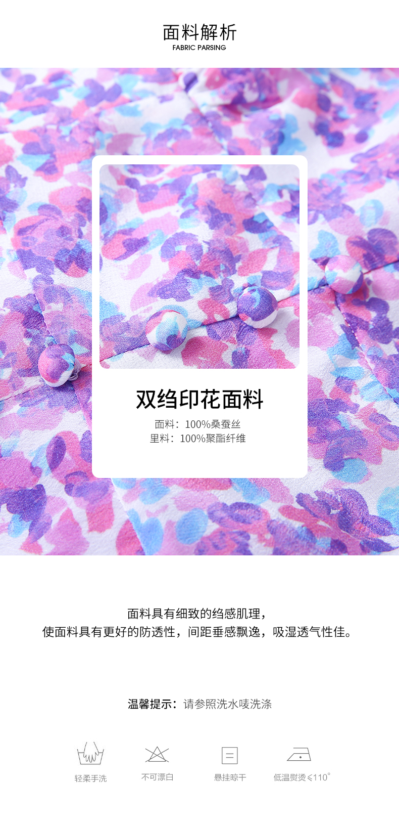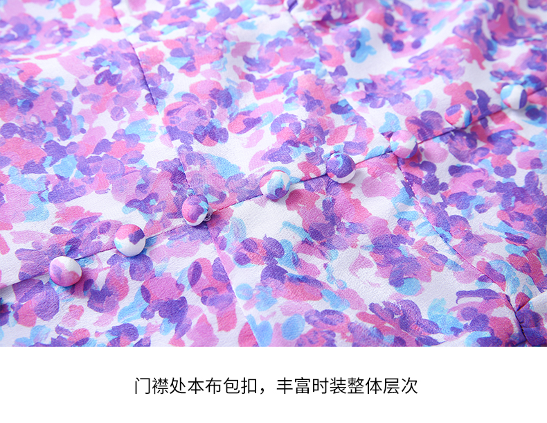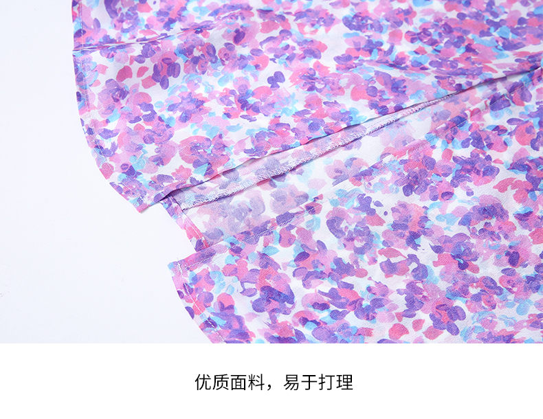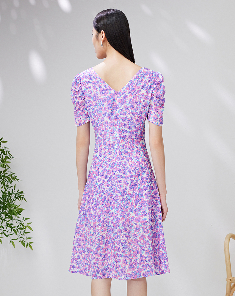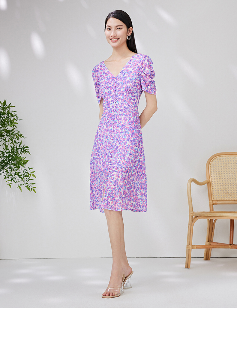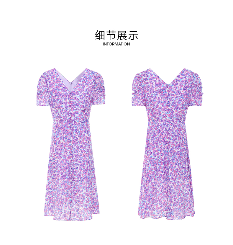 EITIE爱特爱夏款新品优雅V领显瘦高腰舒适泡泡袖印花连衣裙7007753