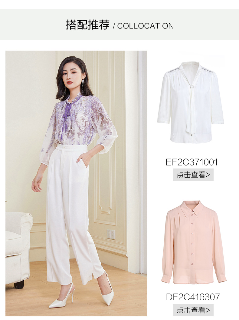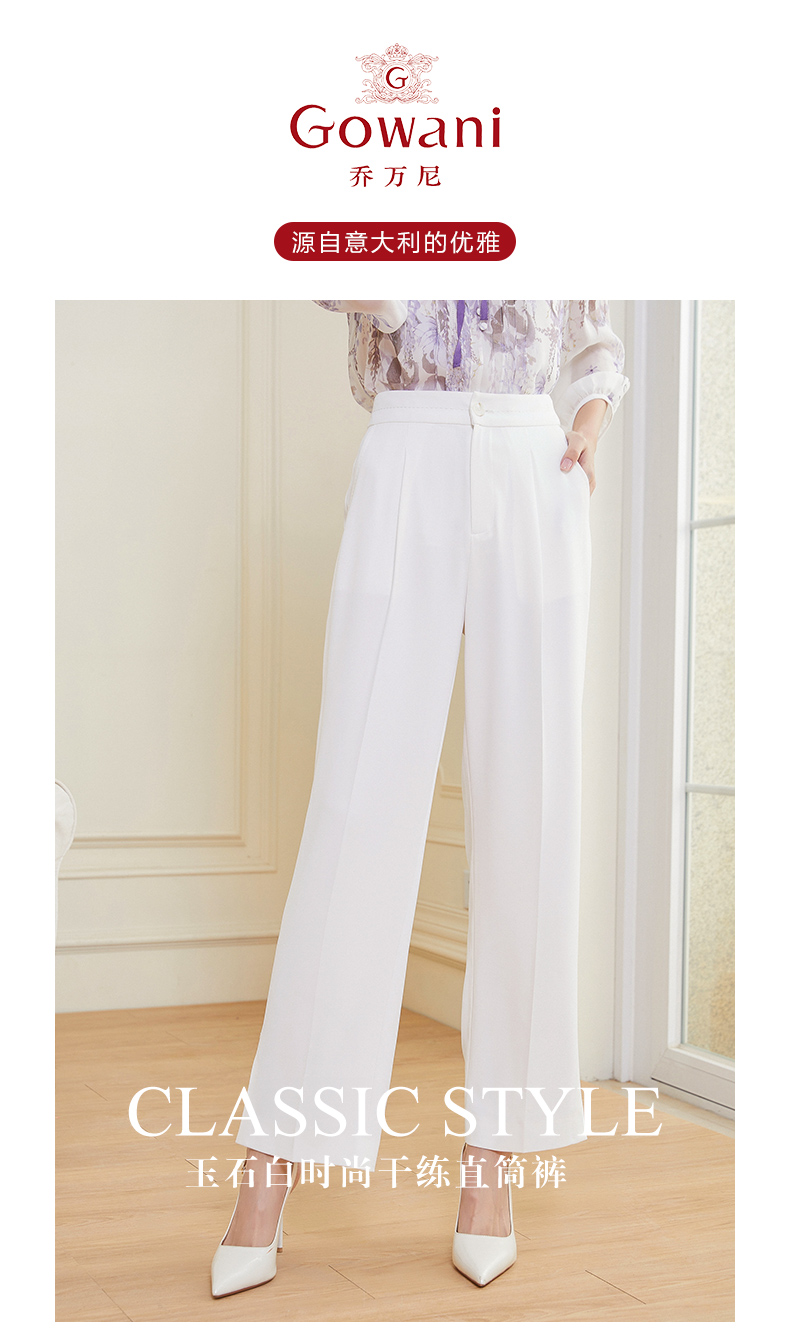 乔万尼女裤子夏薄款白色新款显瘦宽松小个子直筒裤DF2F428