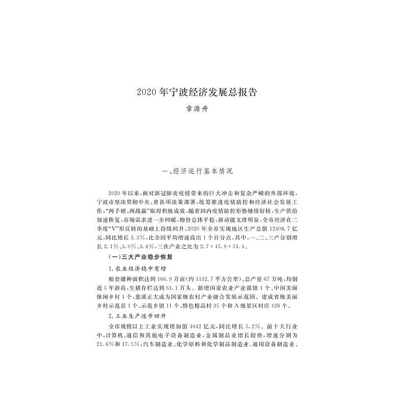 本书是宁波市社会科学院(宁波市社会科学界联合会)深入贯彻xp新时代中国特色社会主义思想,强化并推进学科体系、学术观点和研究方法创新,集中组织各区县(市)、全市高校、研究机构、各行业(产业)等部门的优秀专家学者编写的一部服务于宁波经济社会发展的年度研究报告。全书通过对2020年宁波市经济、社会、文化、生态、党建等基本情况进行总结和评估,对2021年的发展趋势进行研判和预测,为各级党委政府科学决策提供理论支持,为社会组织和公众提供有价值的信息,既具有全局性、战略性和理论性,又具有前瞻性、专业性和务实性。