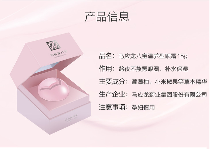 【马应龙八宝粉珍珠眼霜】温养型眼霜、400余年八宝配方、补水保湿,专注眼部护理!