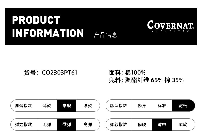 Covernat2023秋季新品女士灯芯绒长裤CO2303PT61