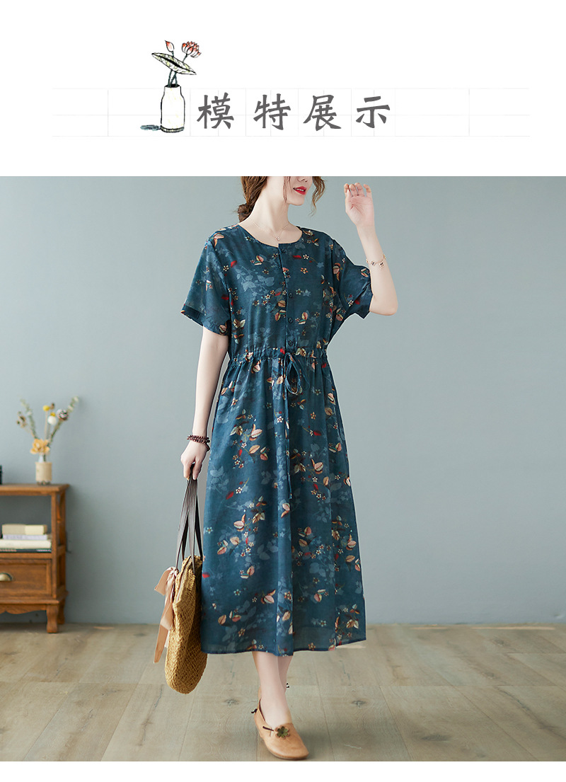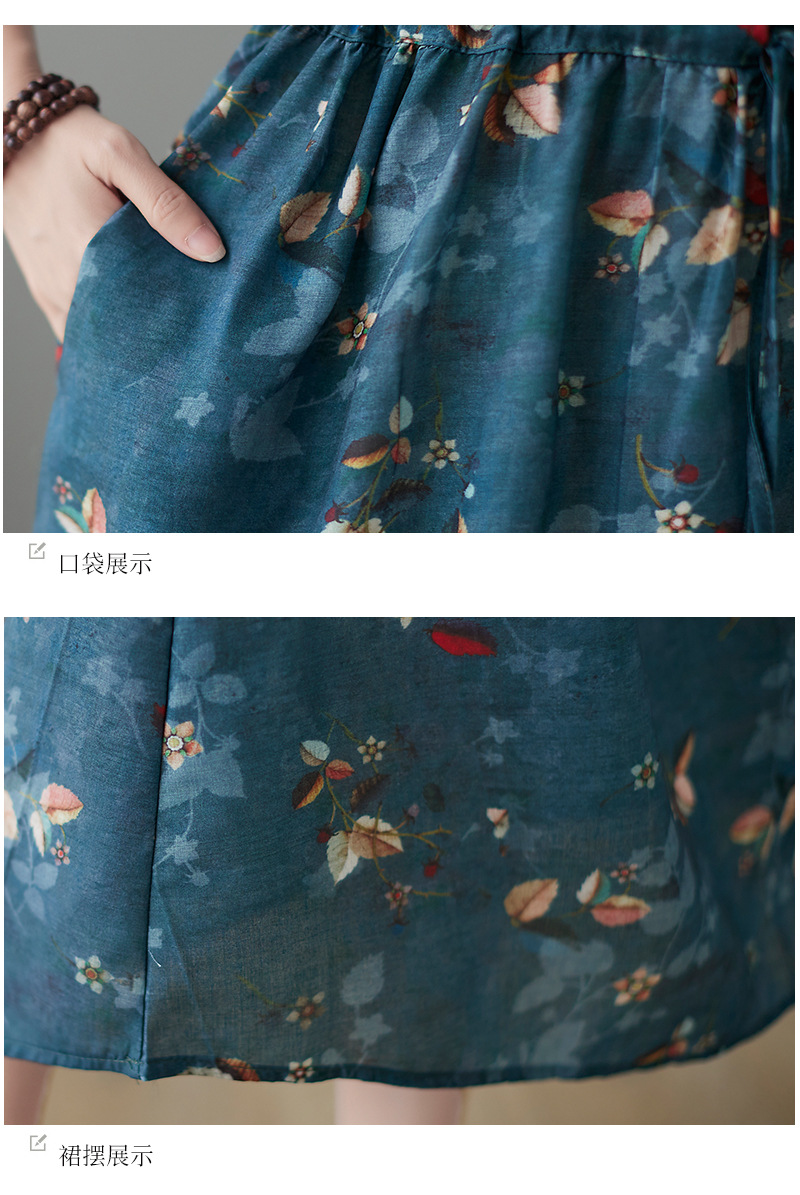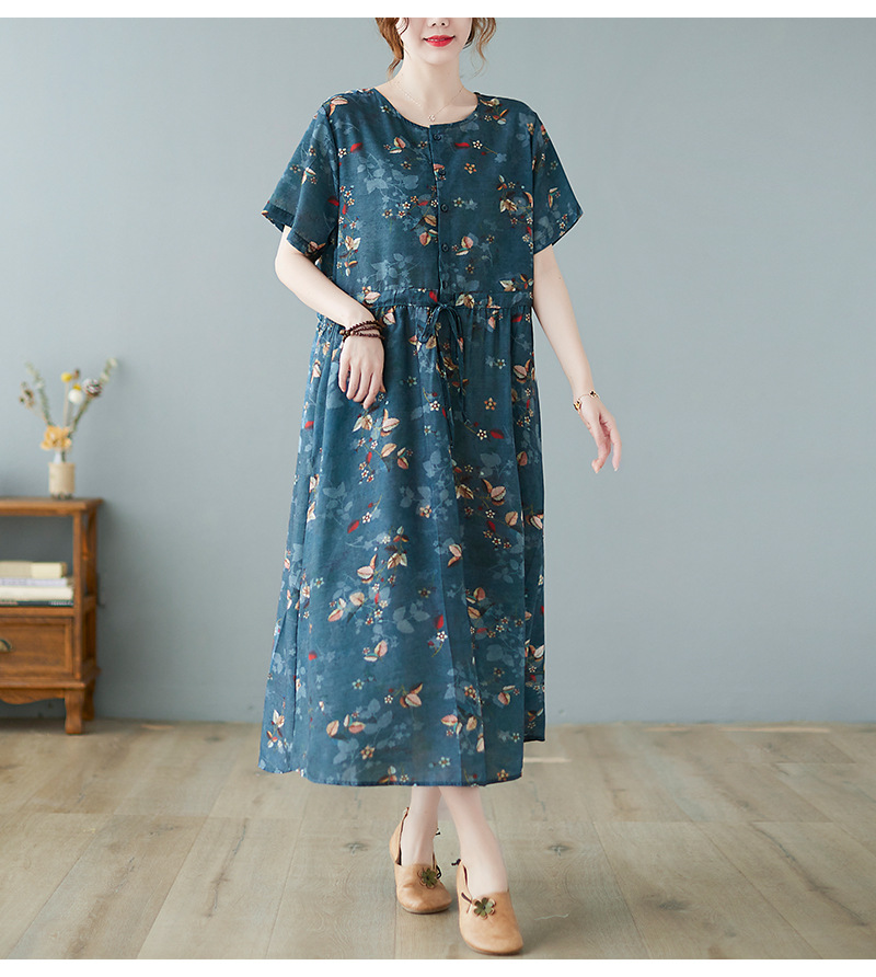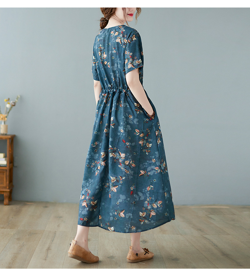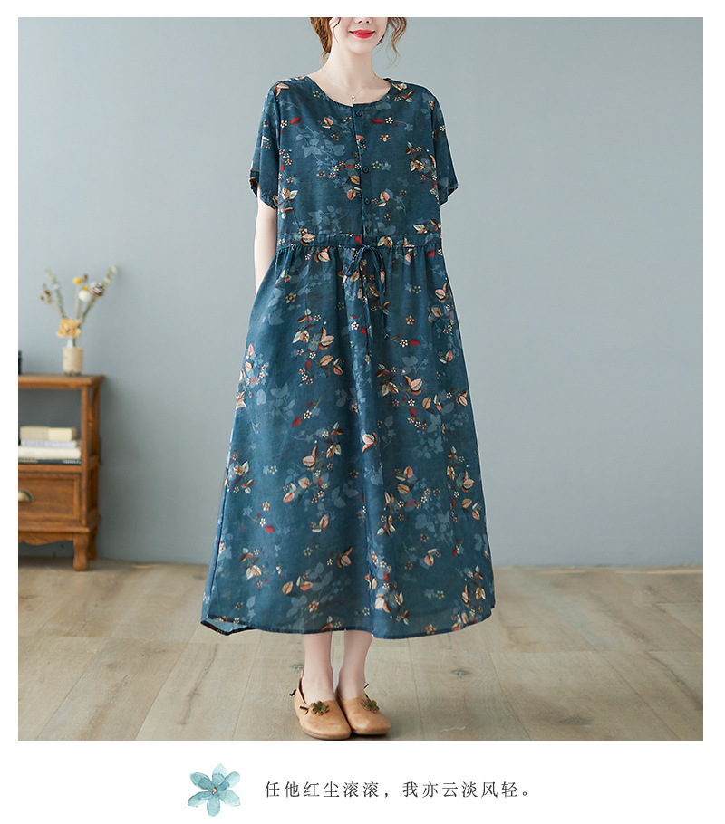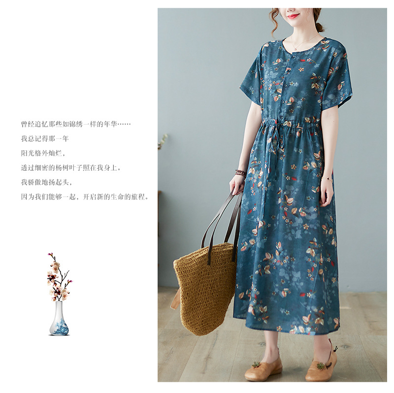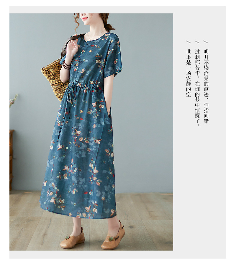 GYH 8369碎花田园风棉麻系带收腰休闲宽松连衣裙