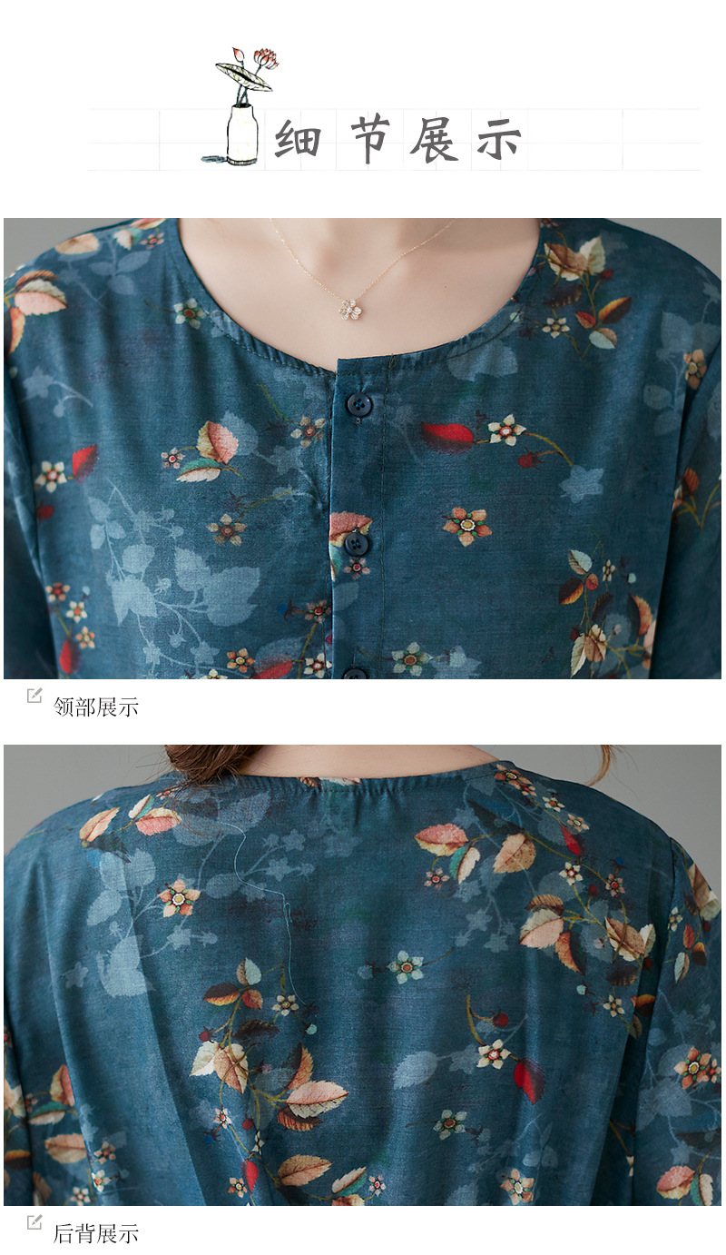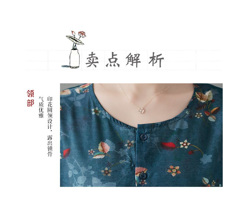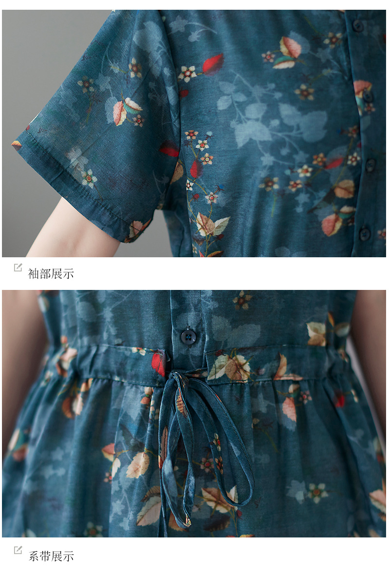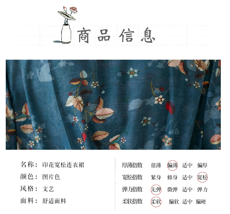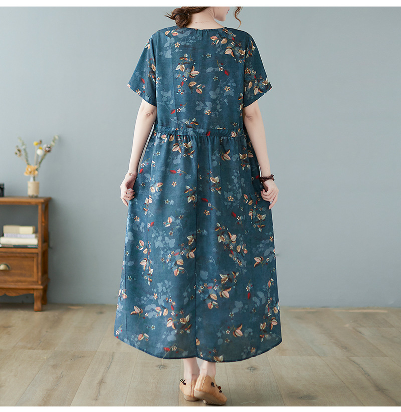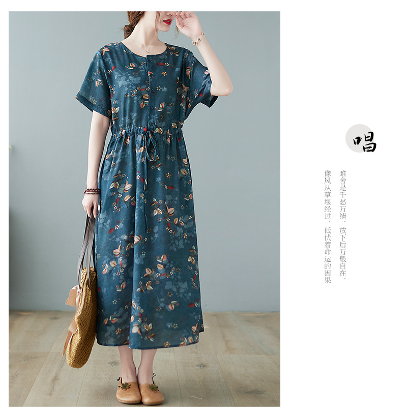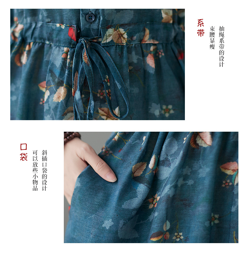 GYH 8369碎花田园风棉麻系带收腰休闲宽松连衣裙