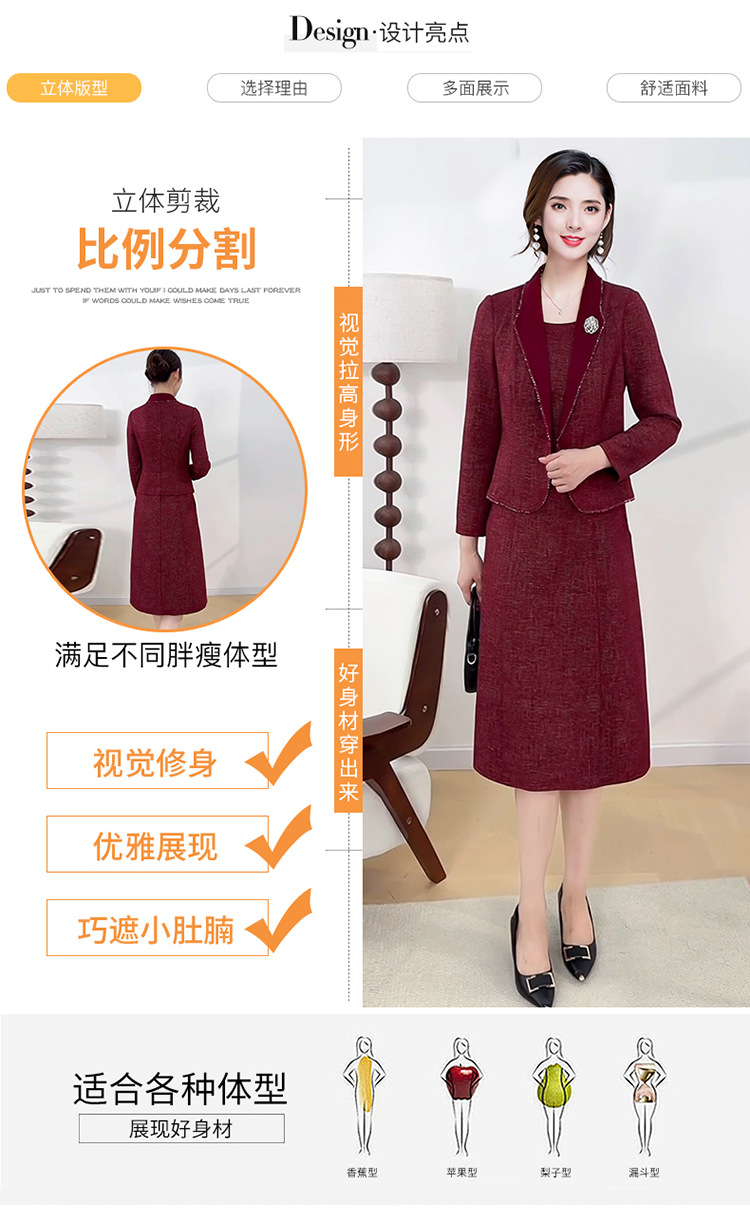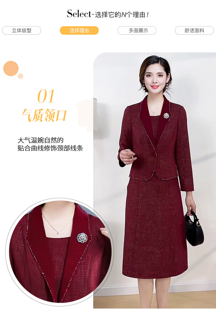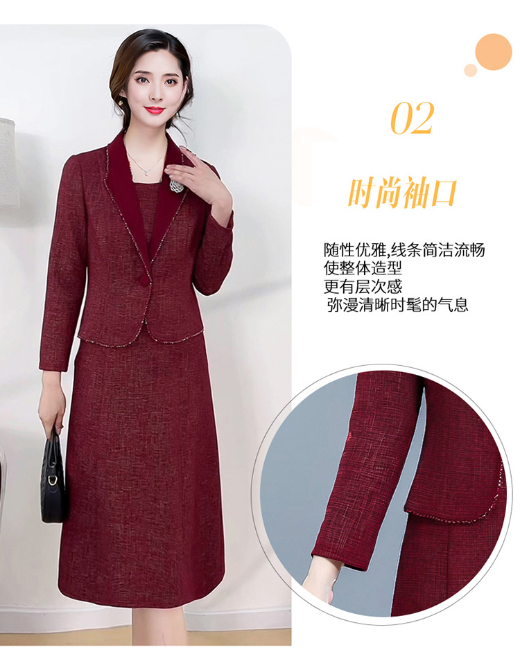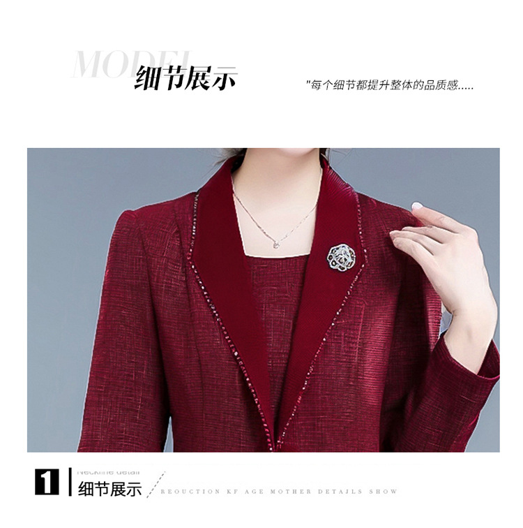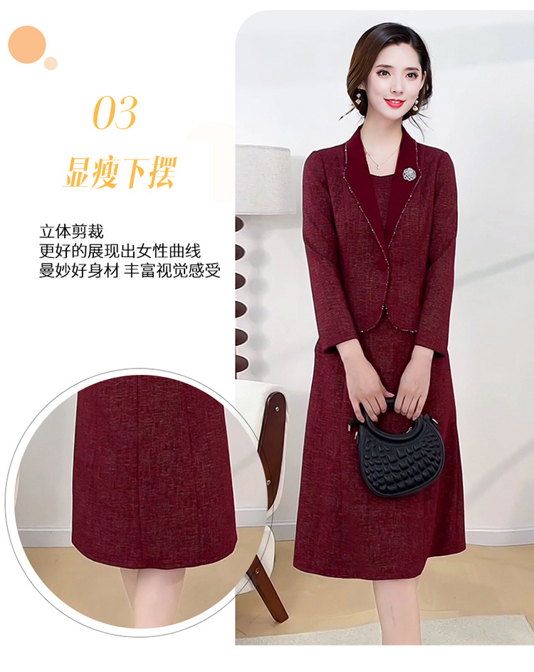 QYM 99H253-Y连衣裙妈妈装假两件时尚拼结中长款礼服裙 商品图4