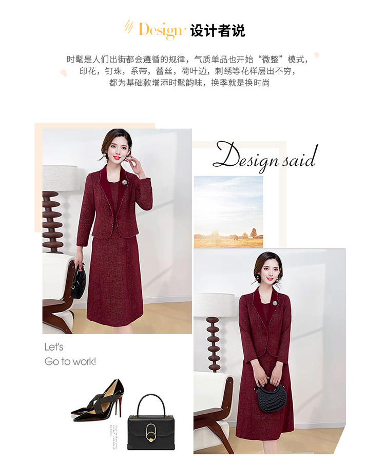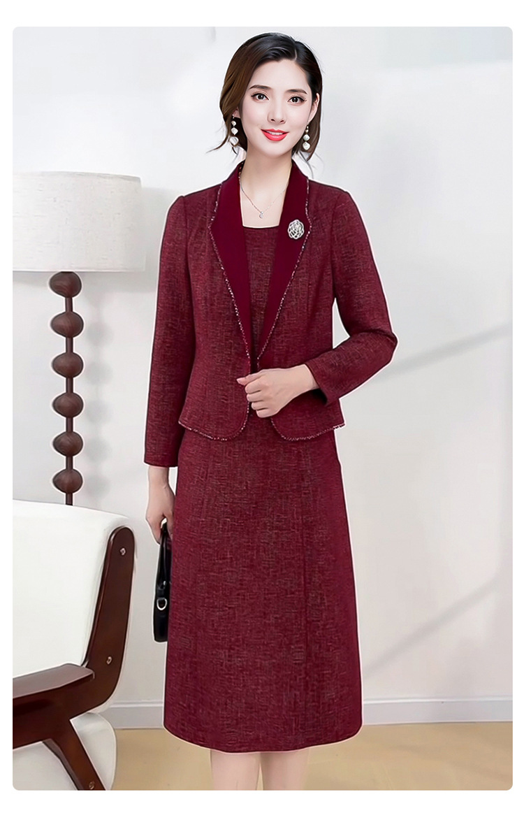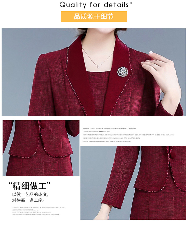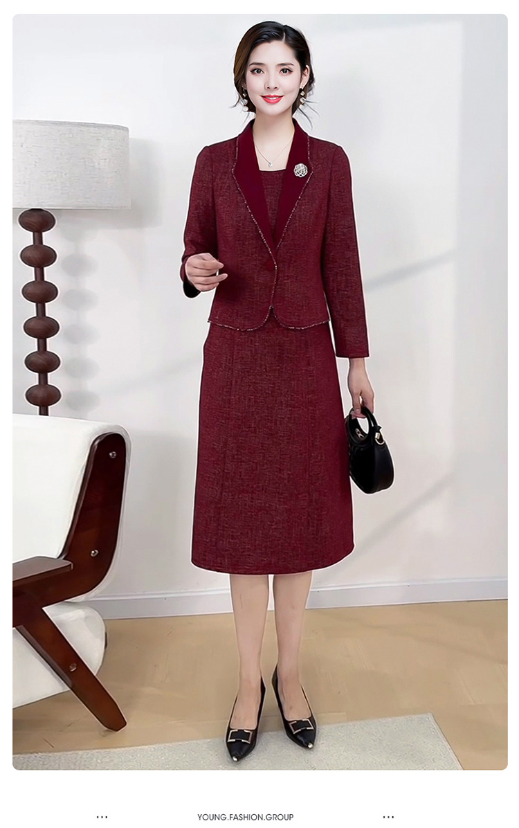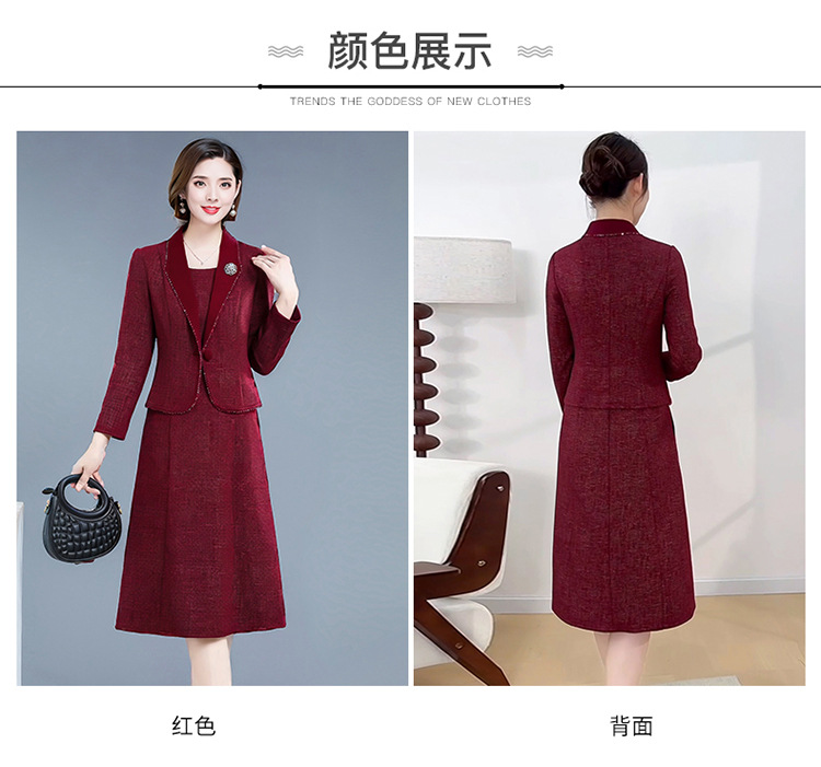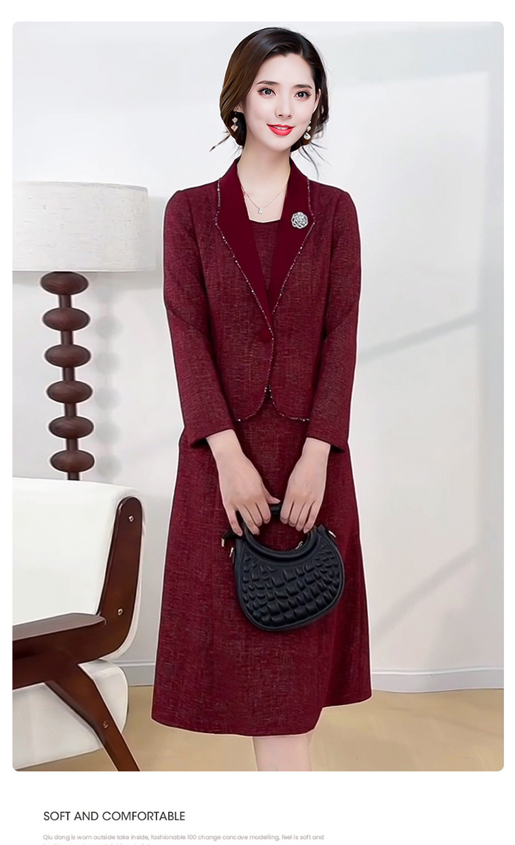 QYM 99H253-Y连衣裙妈妈装假两件时尚拼结中长款礼服裙 商品图4
