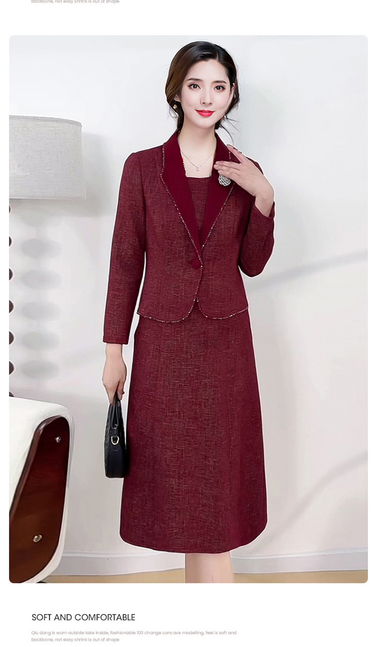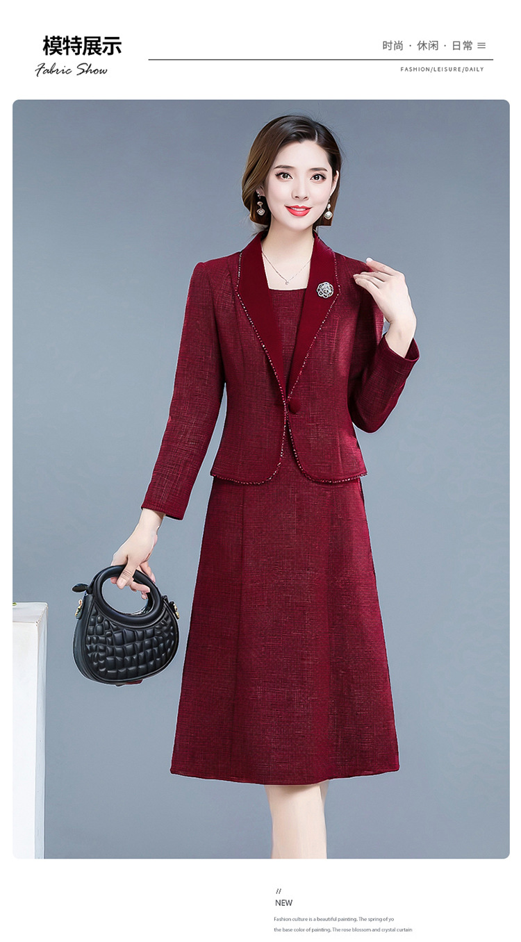 QYM 99H253-Y连衣裙妈妈装假两件时尚拼结中长款礼服裙 商品图0
