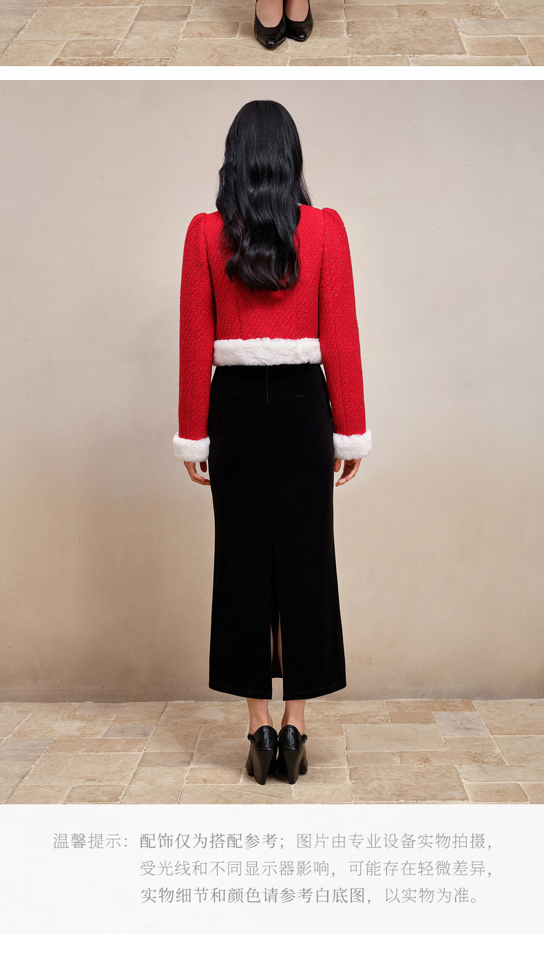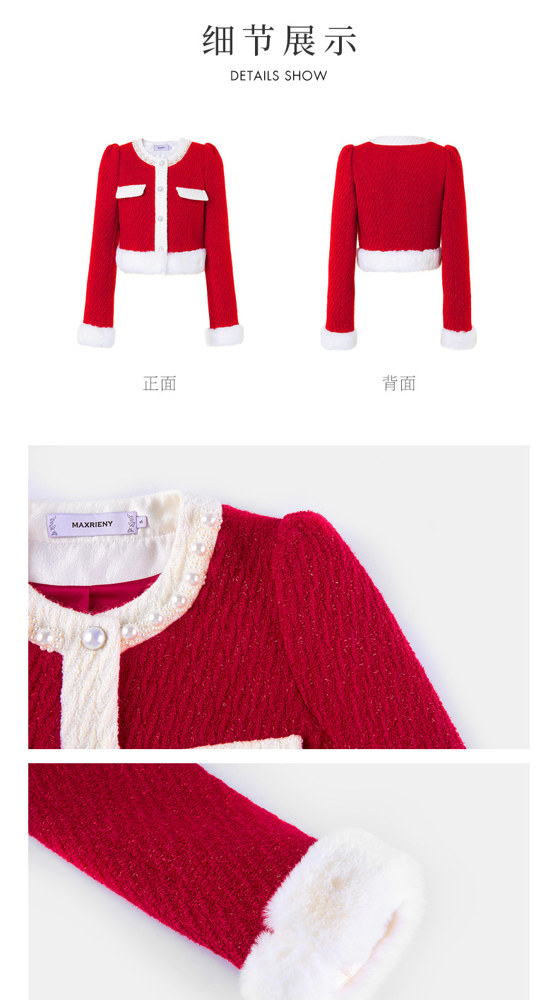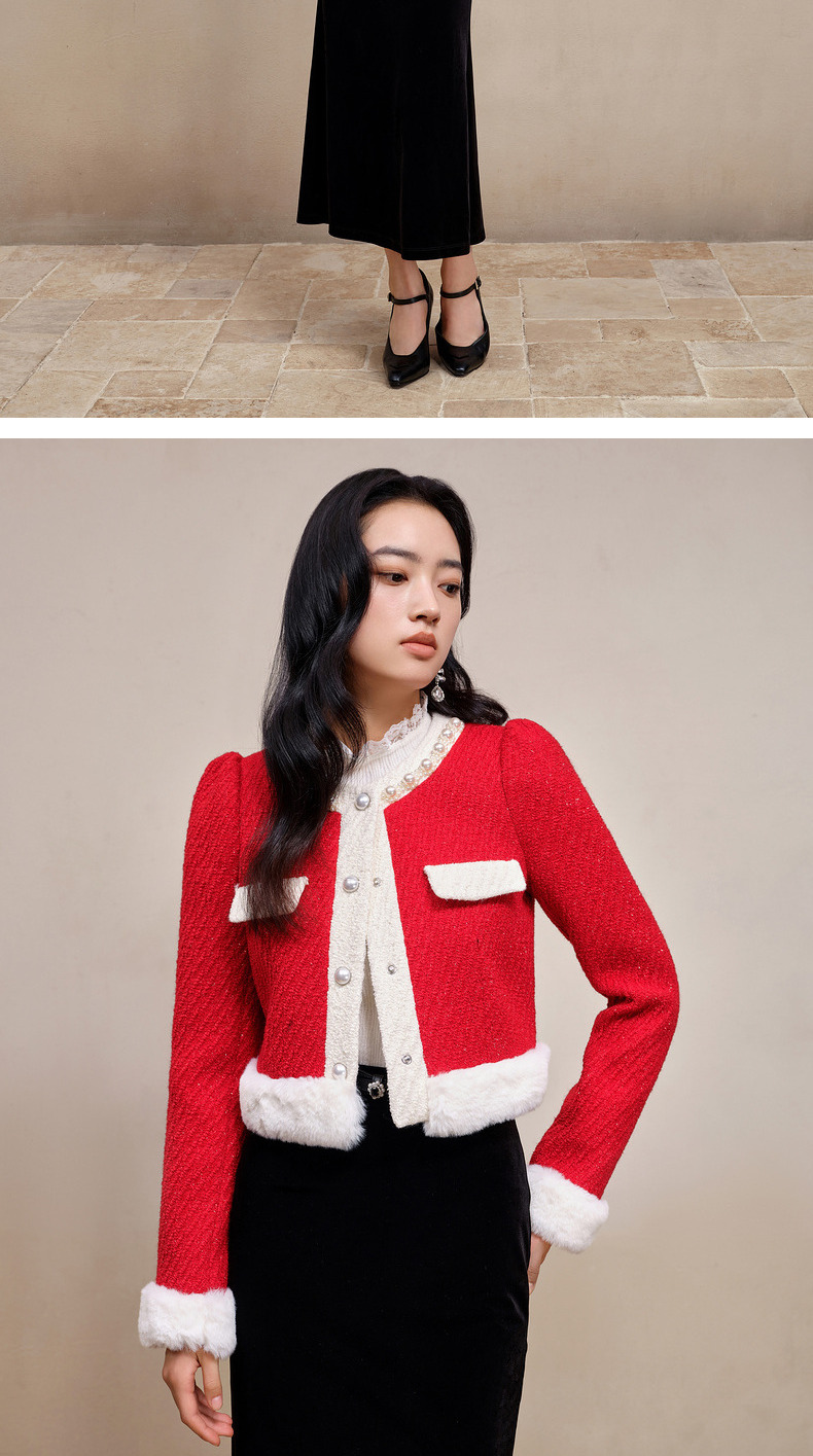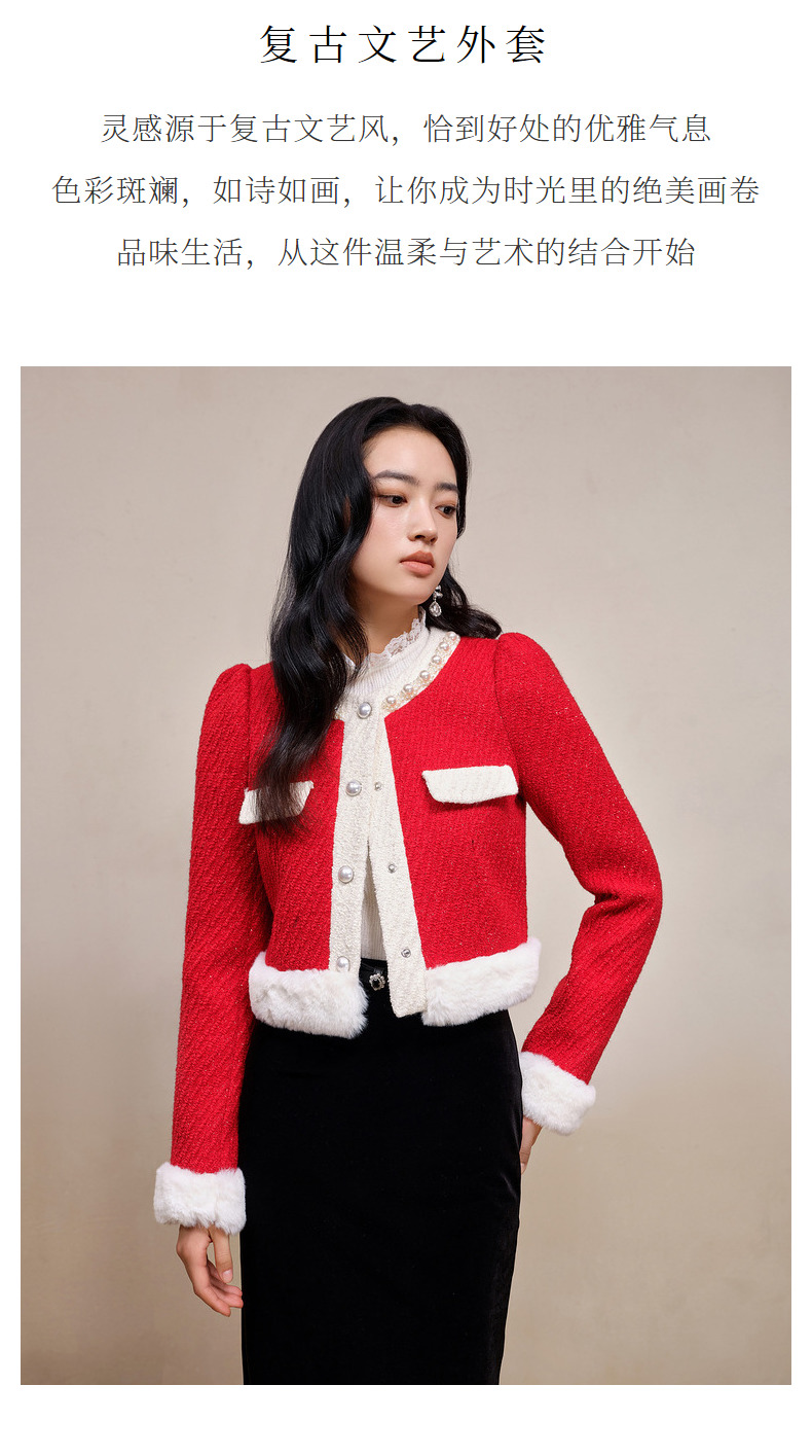 MAXRIENY名媛千金小香风羊毛花纱短外套冬款气质感(货号:MS88JA777)
