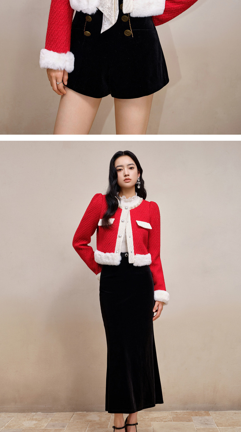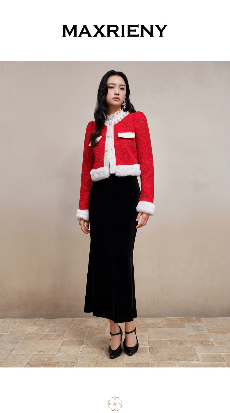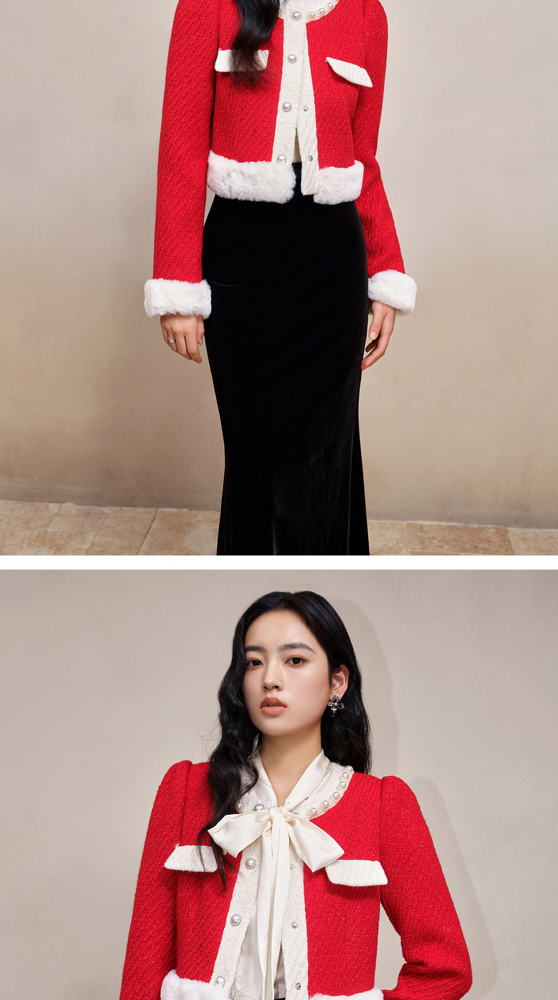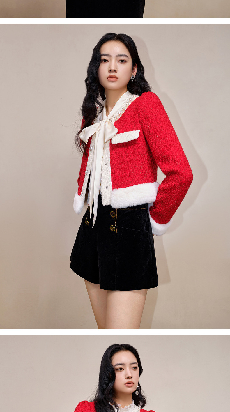 MAXRIENY名媛千金小香风羊毛花纱短外套冬款气质感(货号:MS88JA777)