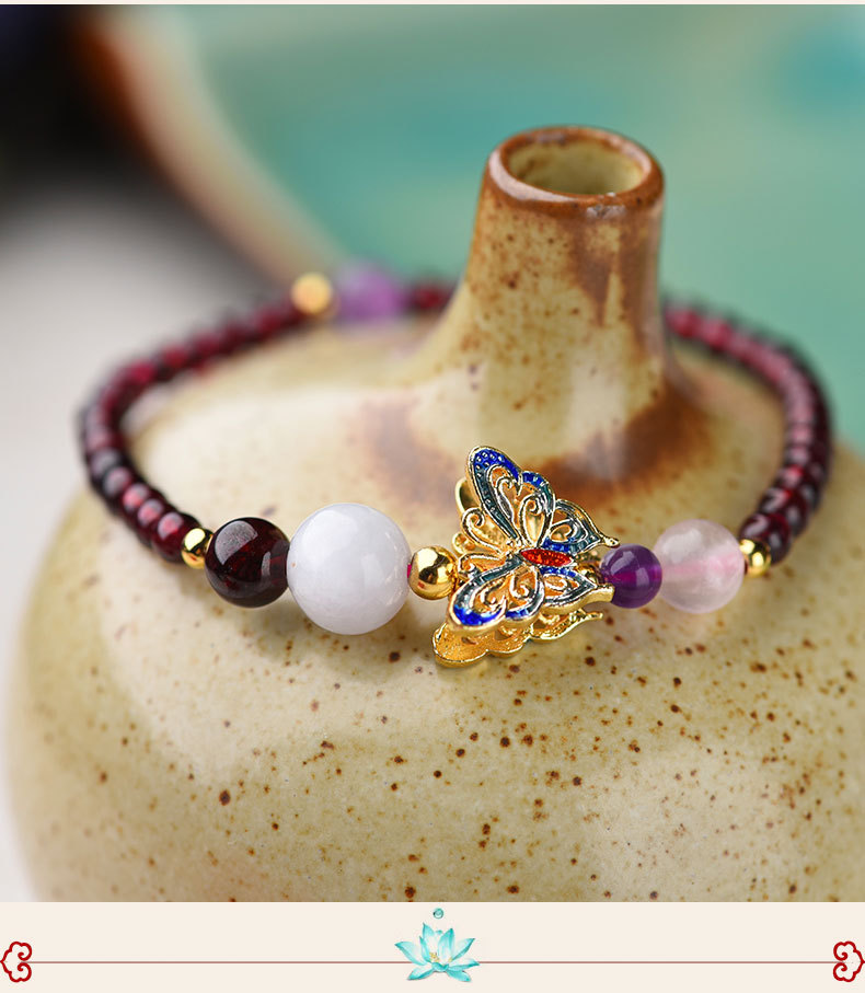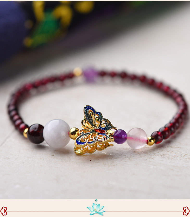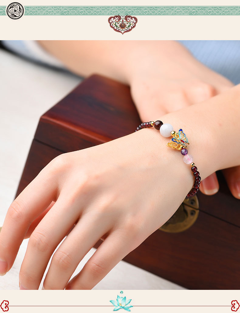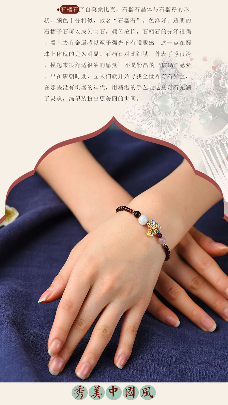 JGL-05050152石榴石单圈手串景泰蓝蝴蝶国风手链女简约古风手饰