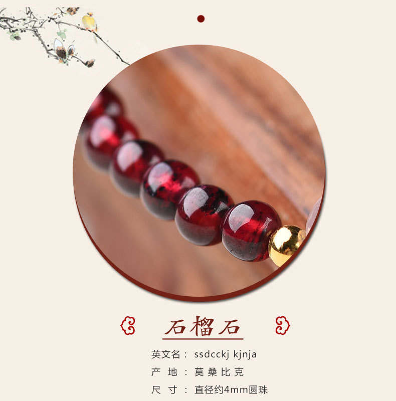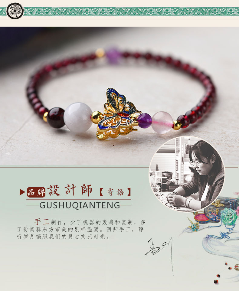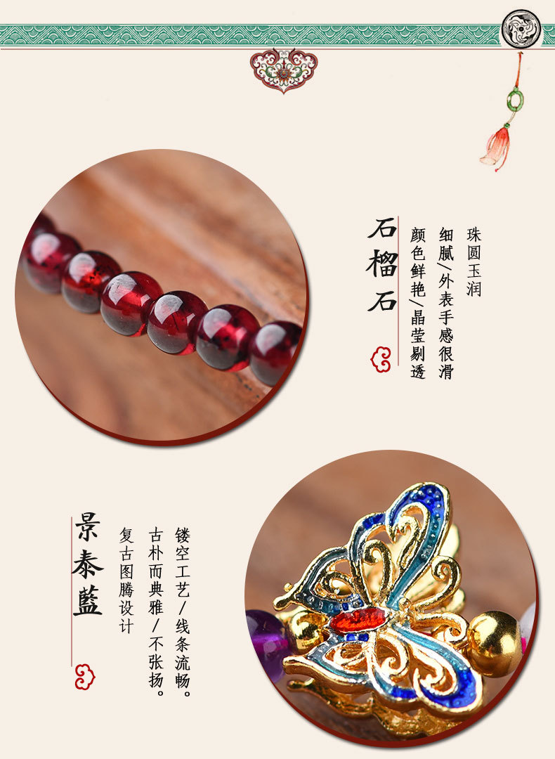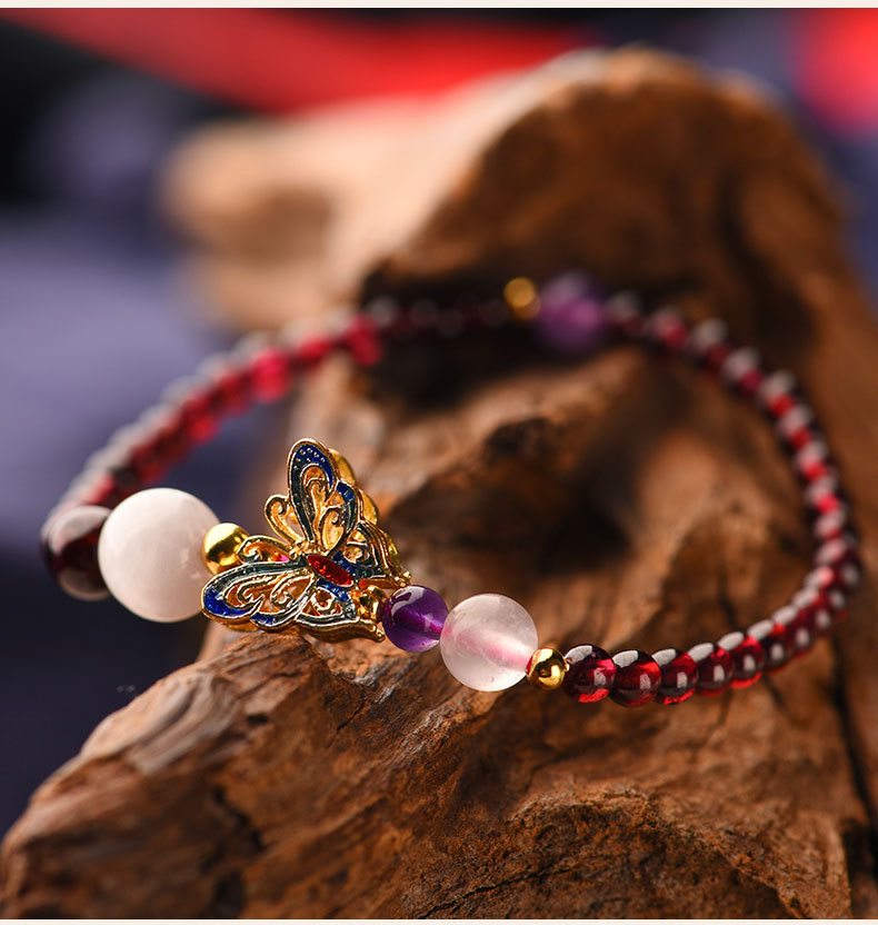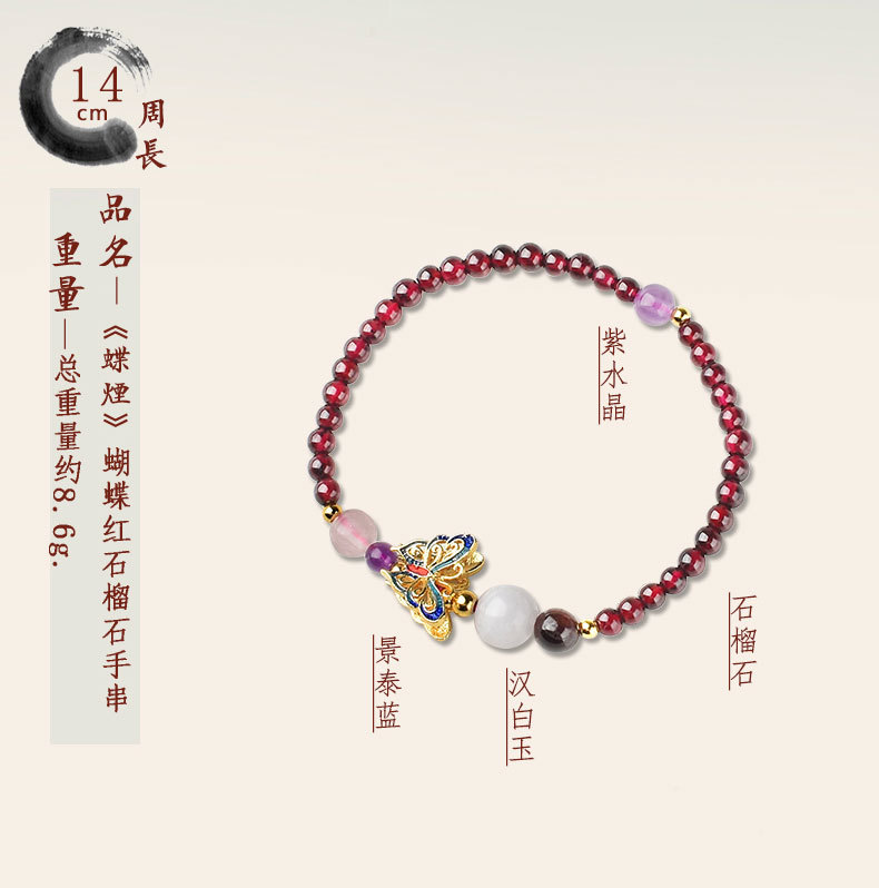 JGL-05050152石榴石单圈手串景泰蓝蝴蝶国风手链女简约古风手饰