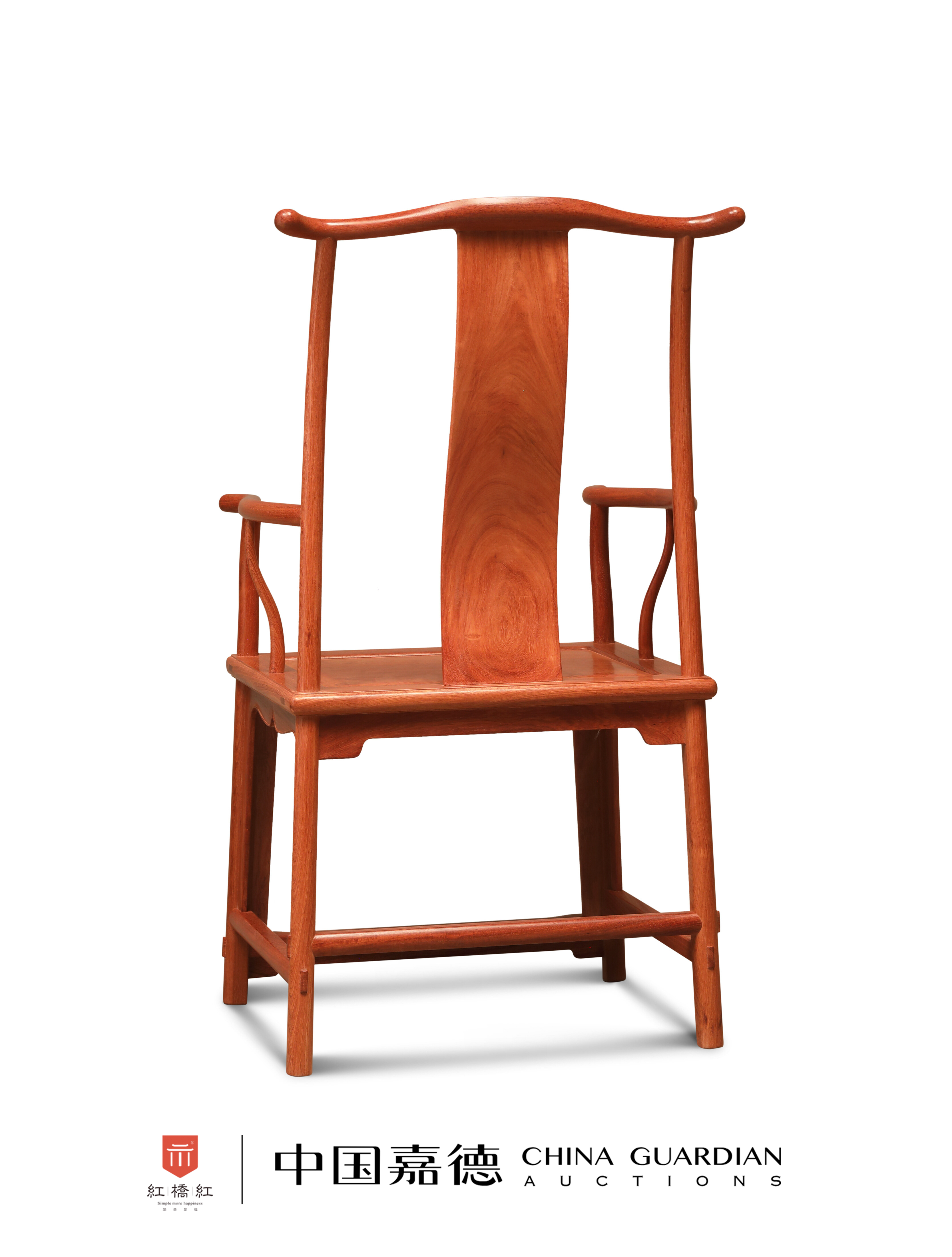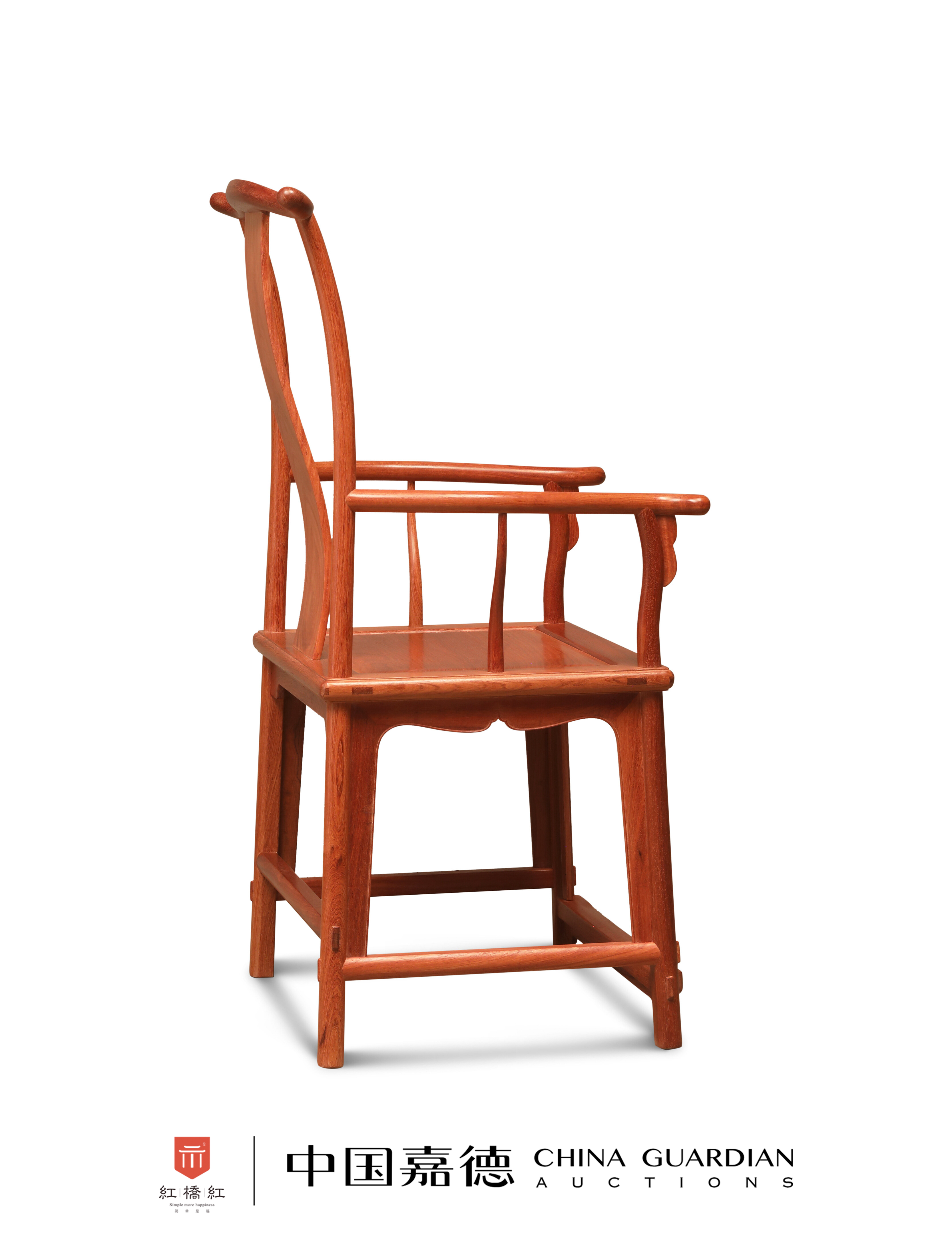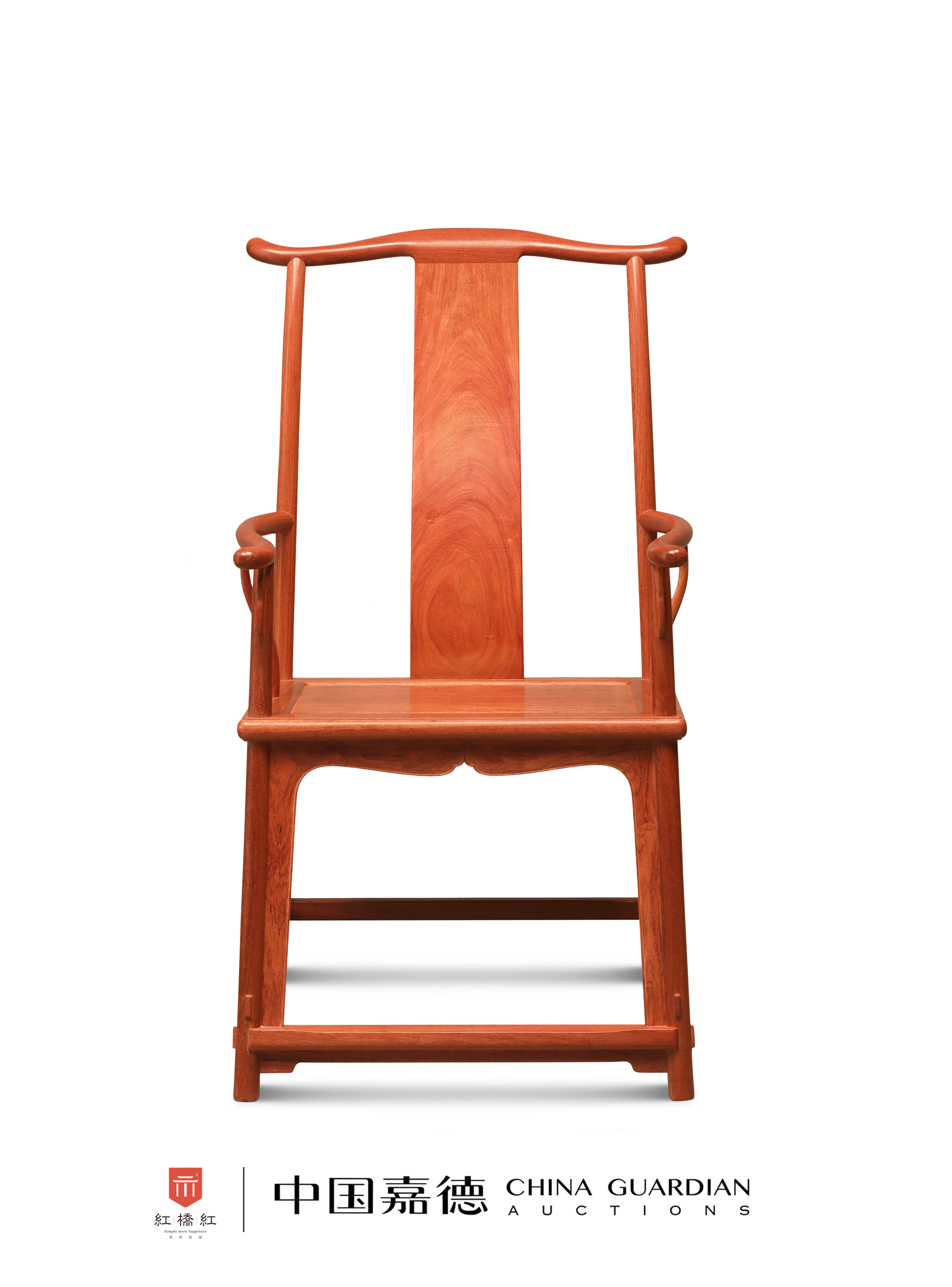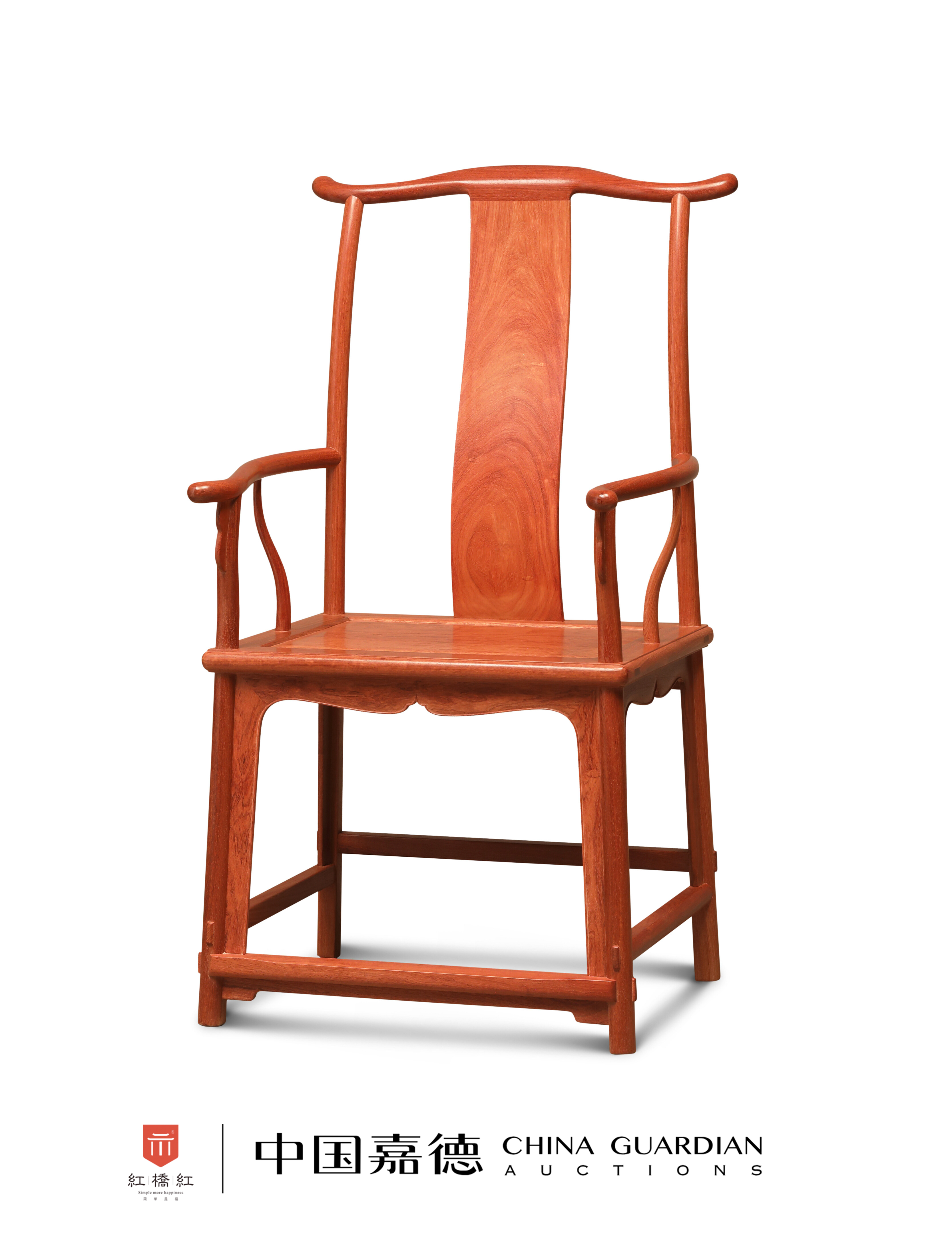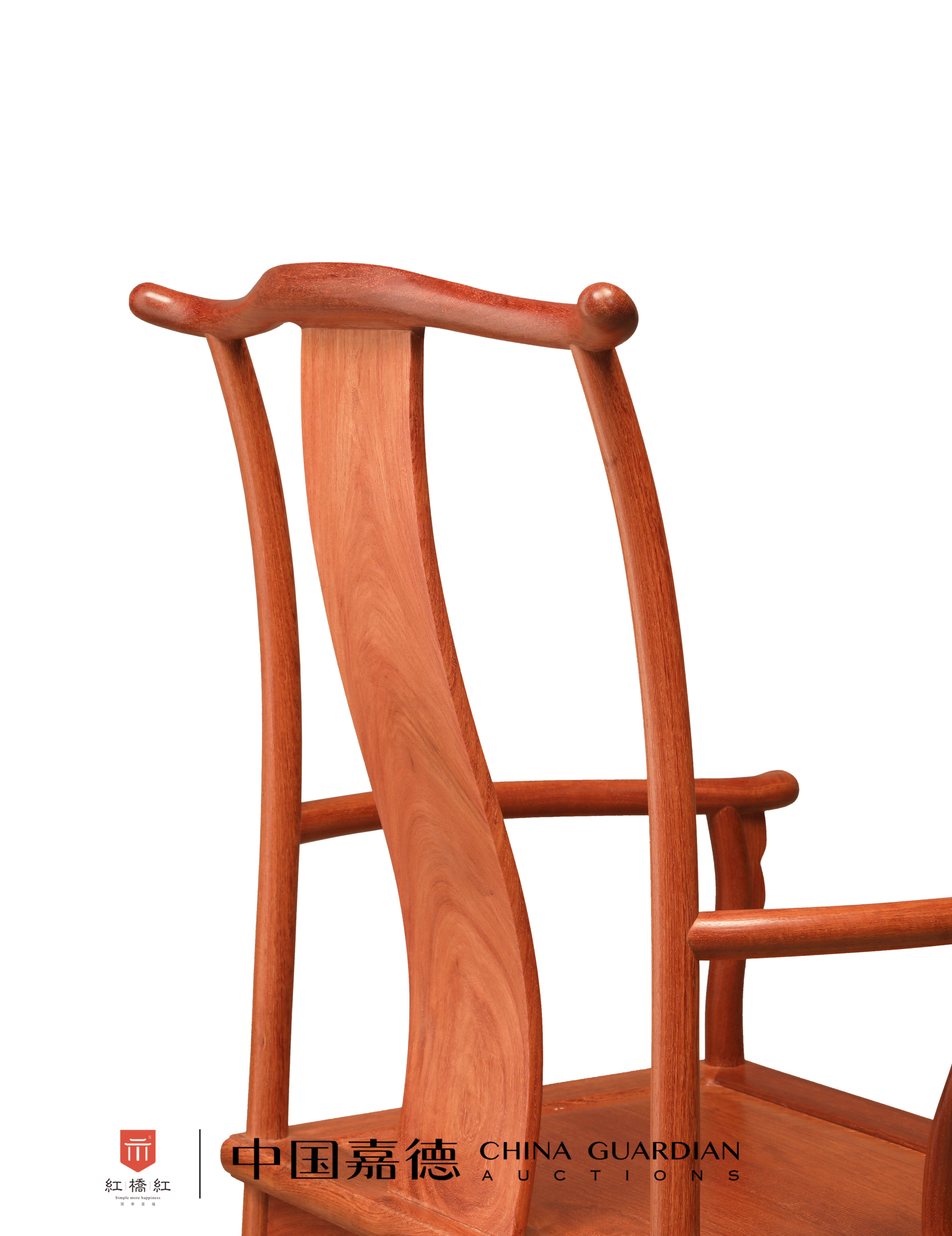 此椅大体光素,凸出缅甸花梨木美观的纹理。同时线条优美,构件以圆材为主,形成刚柔并济、动静皆宜的视觉美感,体现了明式家具在当今的制作中仍延续着简约隽永之美。