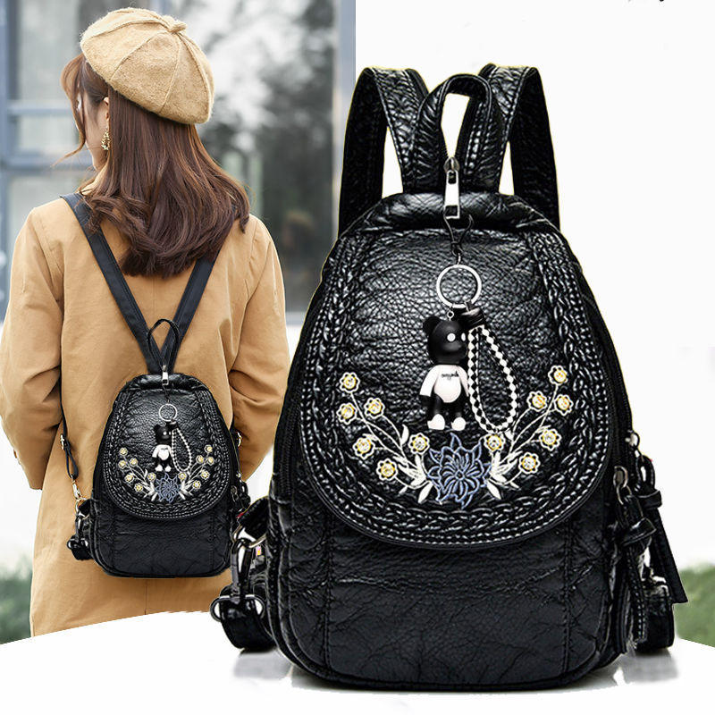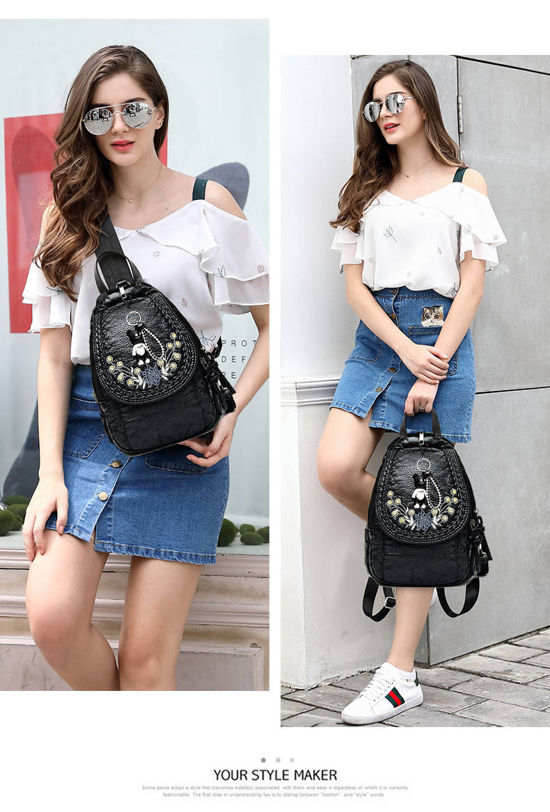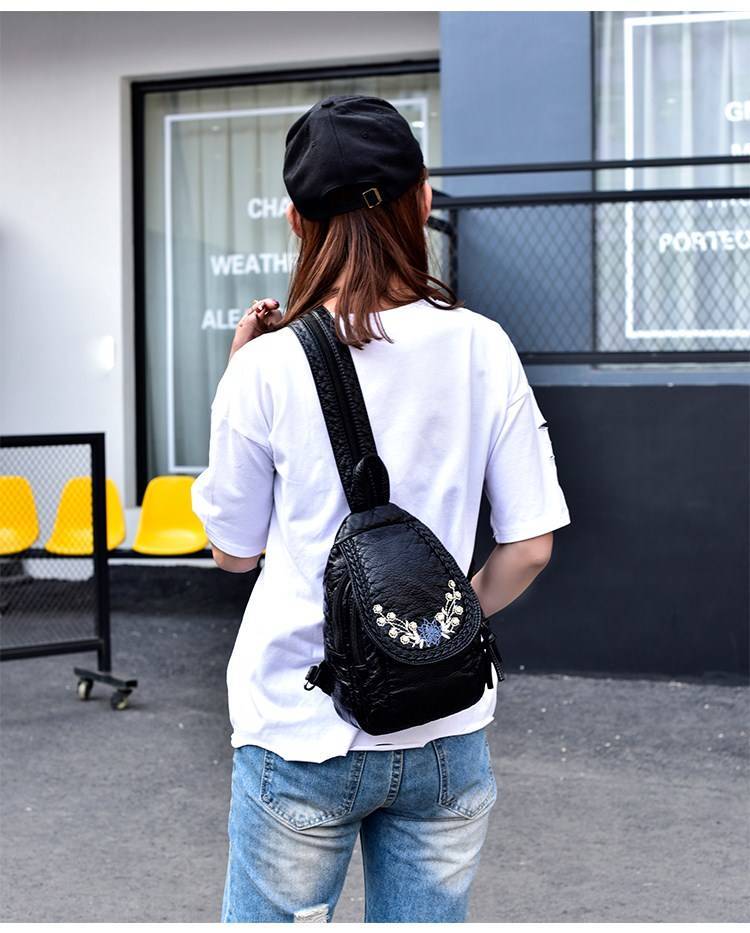 PDD-印花女士背包双肩包韩版休闲百搭软皮斜挎两用胸包