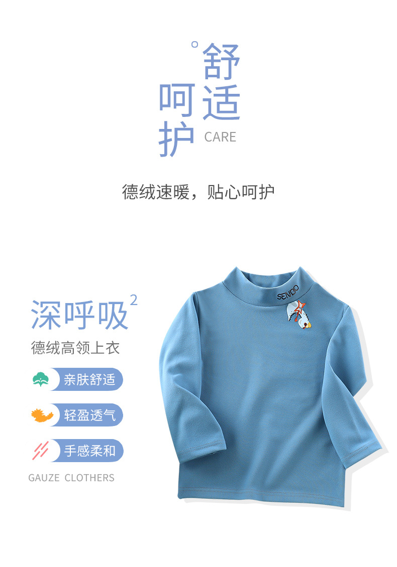 【双面德绒39.9/2件!】儿童打底衫春秋新款,长袖卡通上衣中领中大男女童保暖秋衣,速暖锁温,给宝贝温馨的呵护!