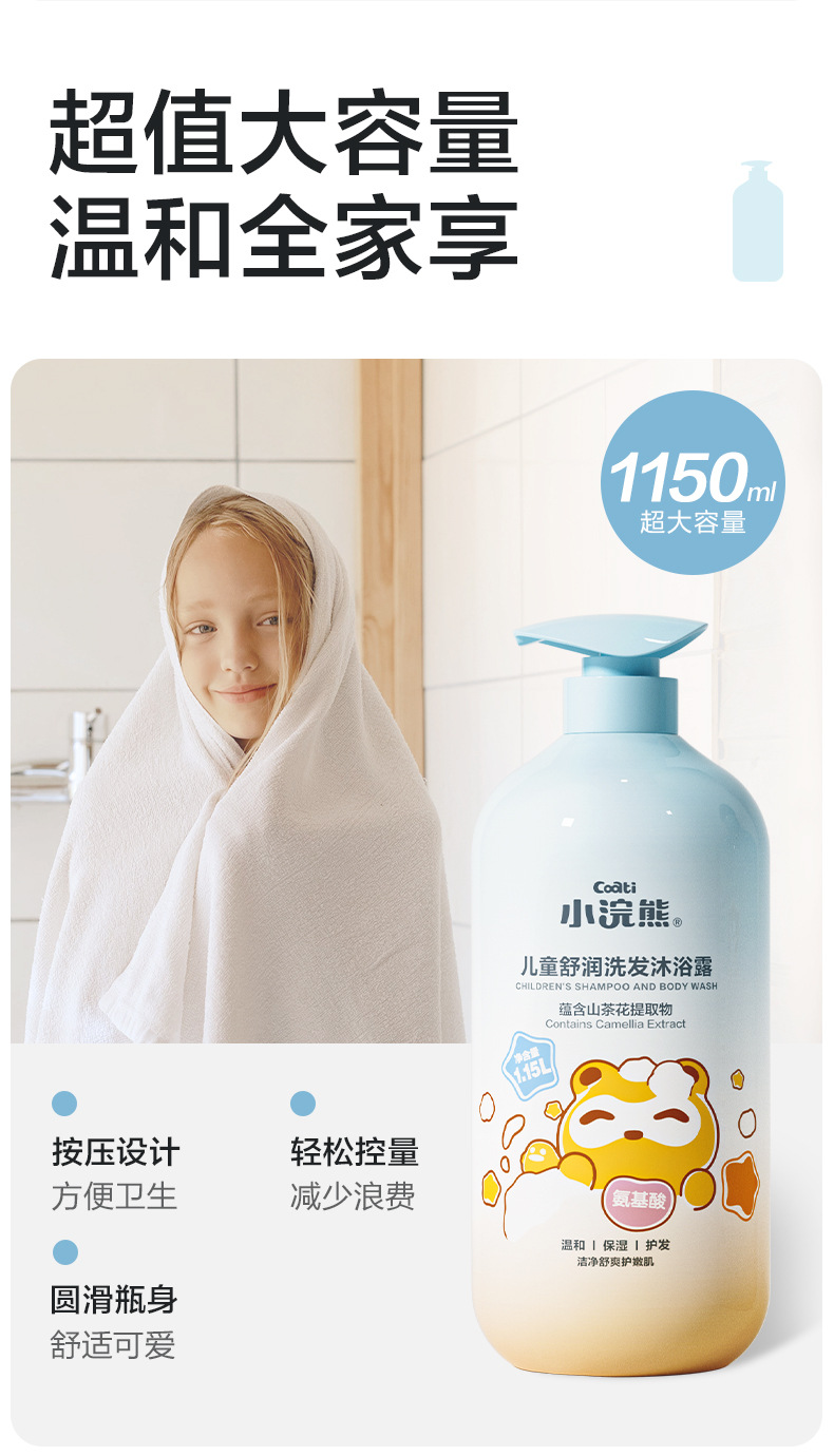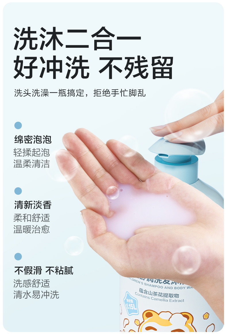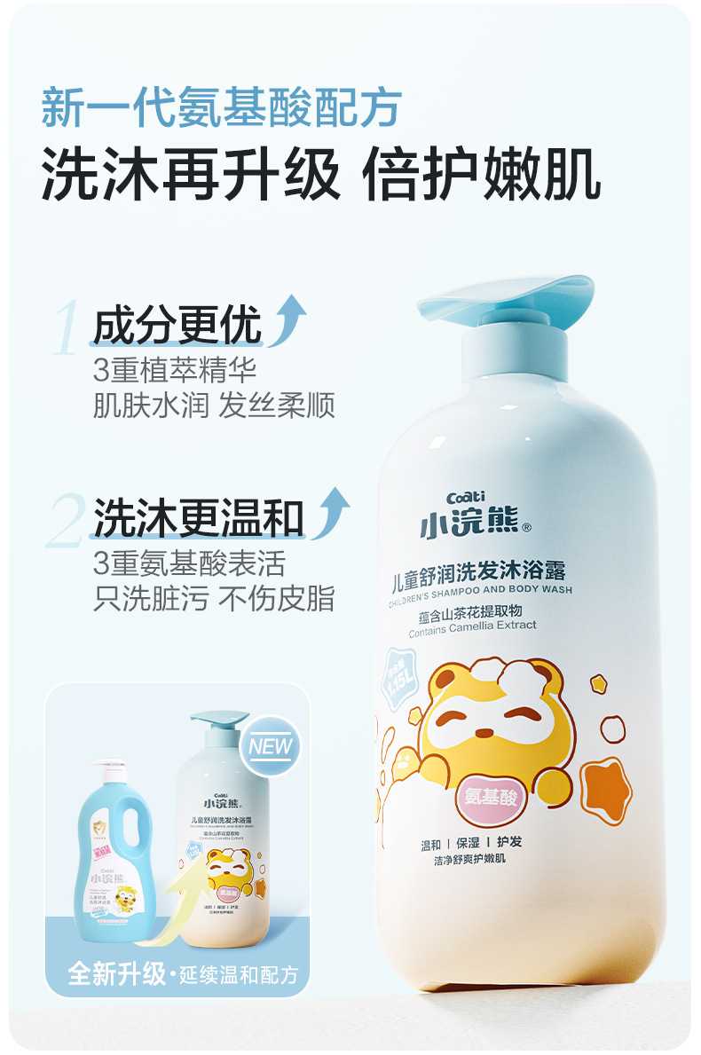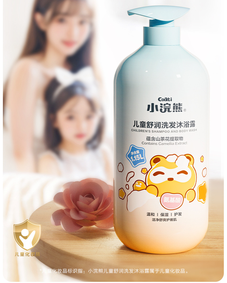 【新升级❗️温柔清洁】小浣熊山茶花儿童专用洗发水沐浴露新生儿婴儿男女宝宝洗护二合一。ya
