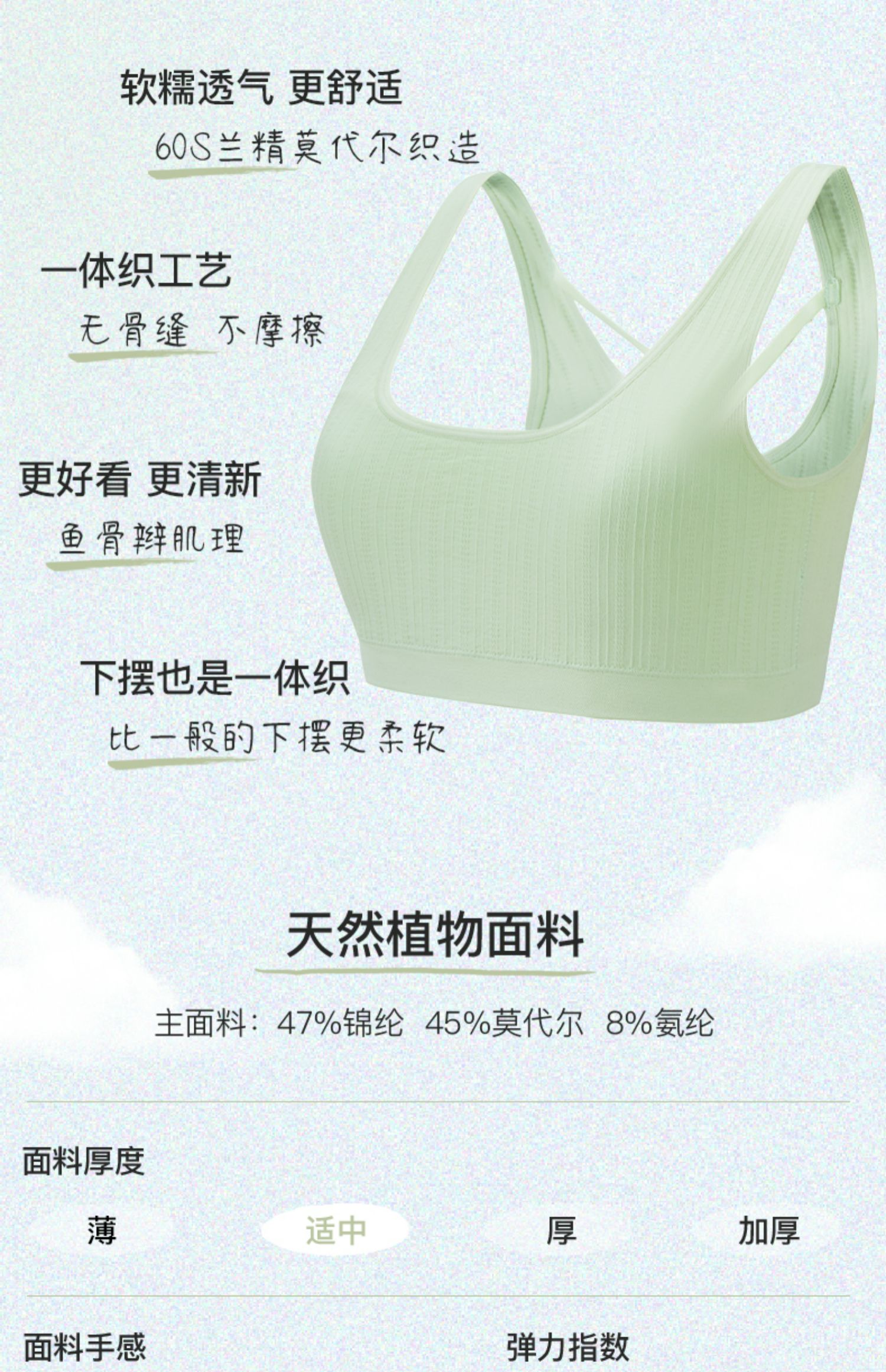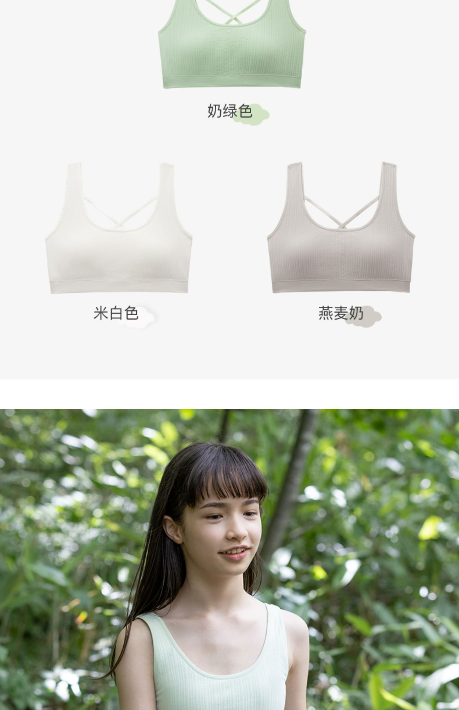 likeuu女童发育期内衣小学生少女鱼骨辫一体织无尺码内衣初发育