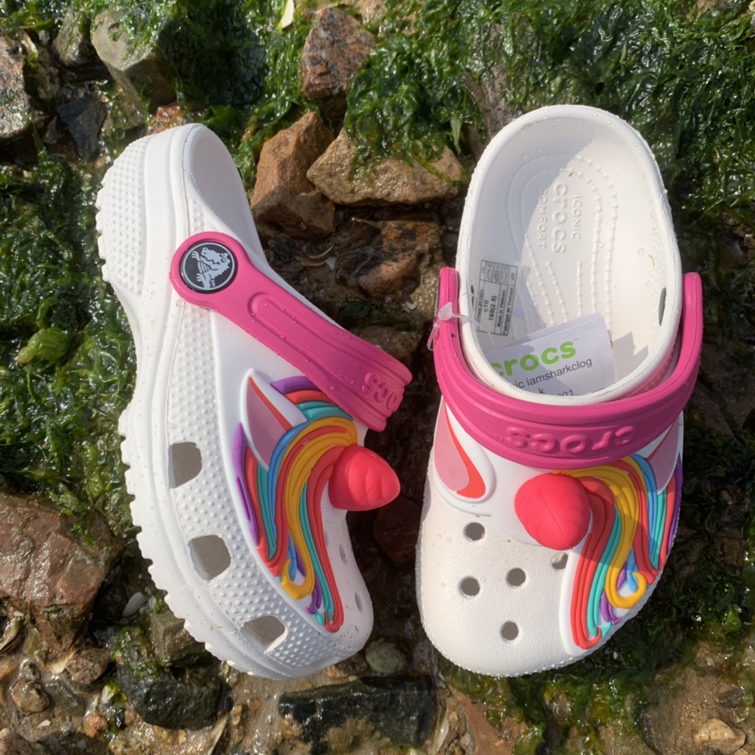 75 货号060791075 pp Crocs卡洛驰卡通洞洞鞋凉鞋🦄🦈儿童沙滩鞋,户外速干拖鞋。🍭卡洛驰卡通形象款鞋,身根据运动风克洛格外形制作卡通形象🔅深受孩子们的喜爱,✨宽松舒适的鞋床贴合脚型设计,宽大鞋头不束缚宝贝的双脚,趣味十足🎉轻盈舒适,充满弹性,鞋床和外力间距缓冲性与舒适性。