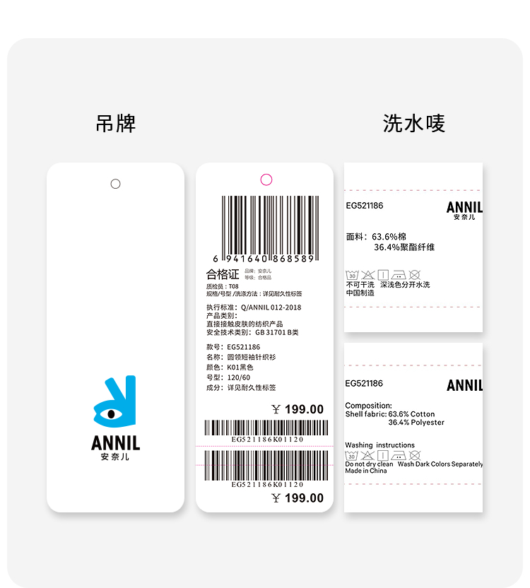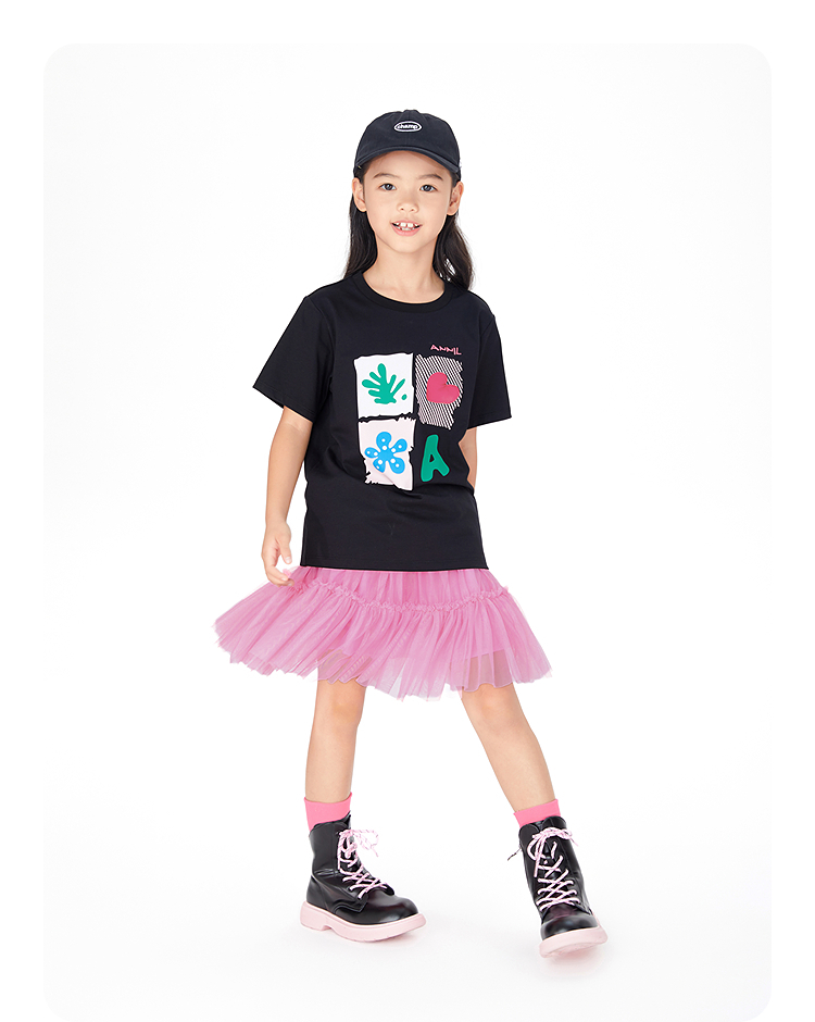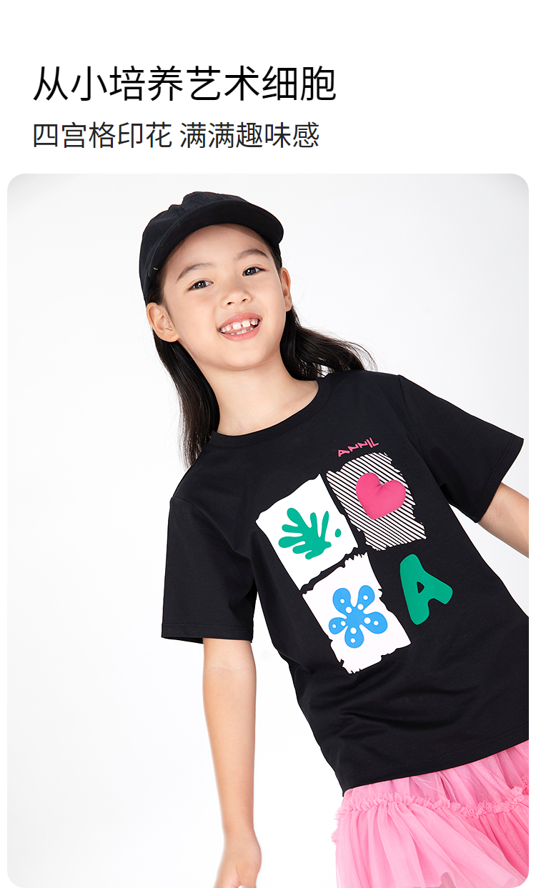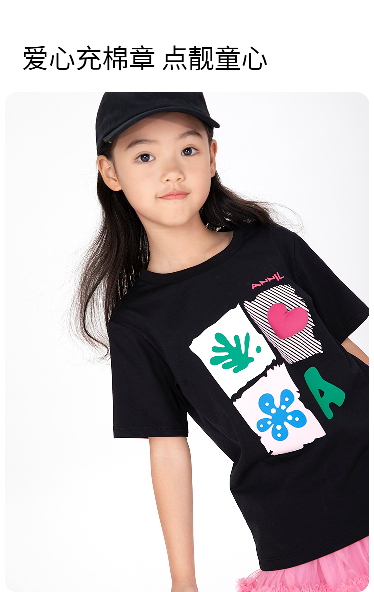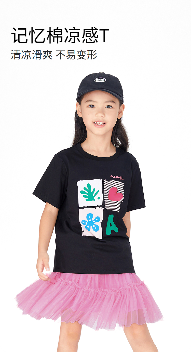 女童SORONA凉感圆领短袖针织衫夏季新款安奈儿童装EG521186