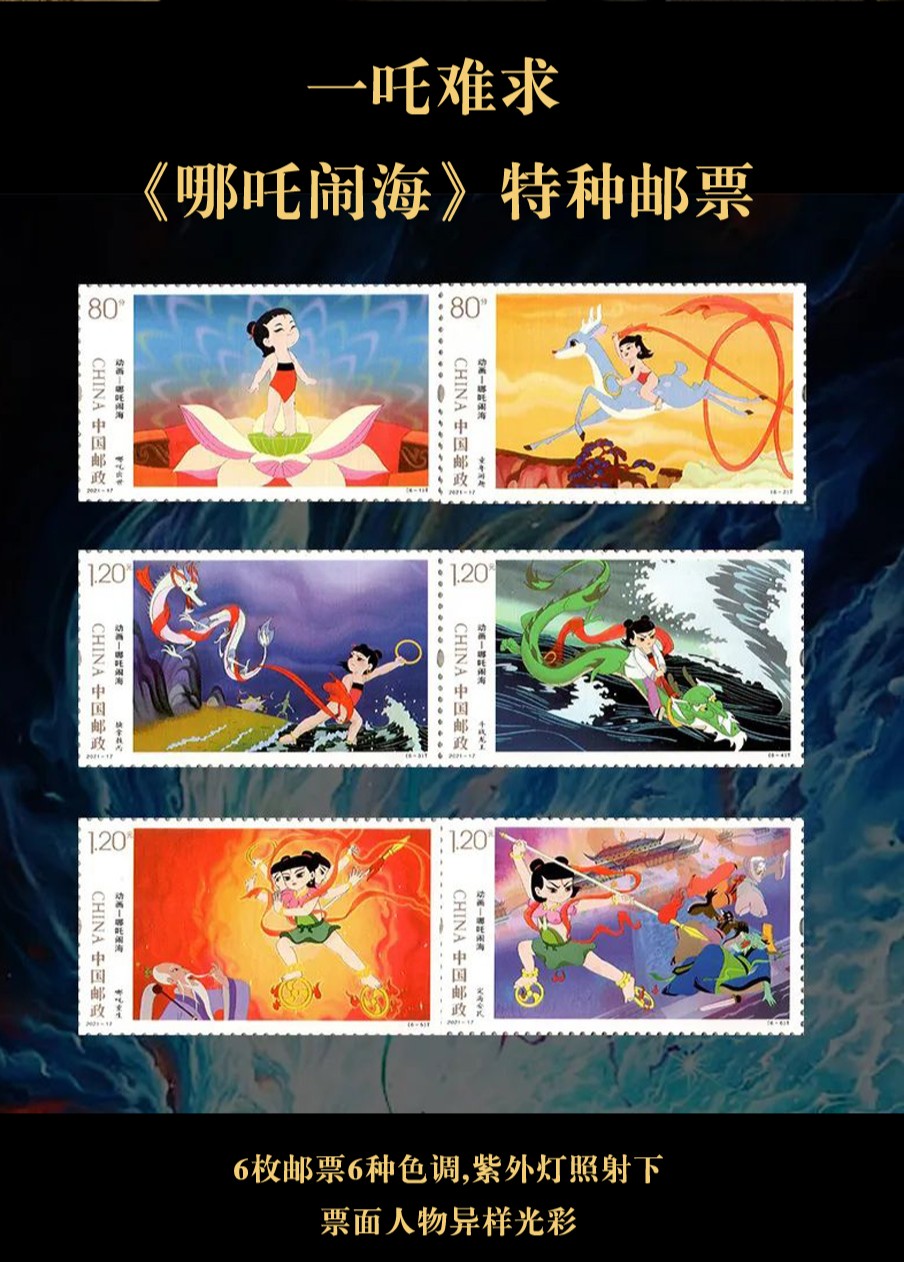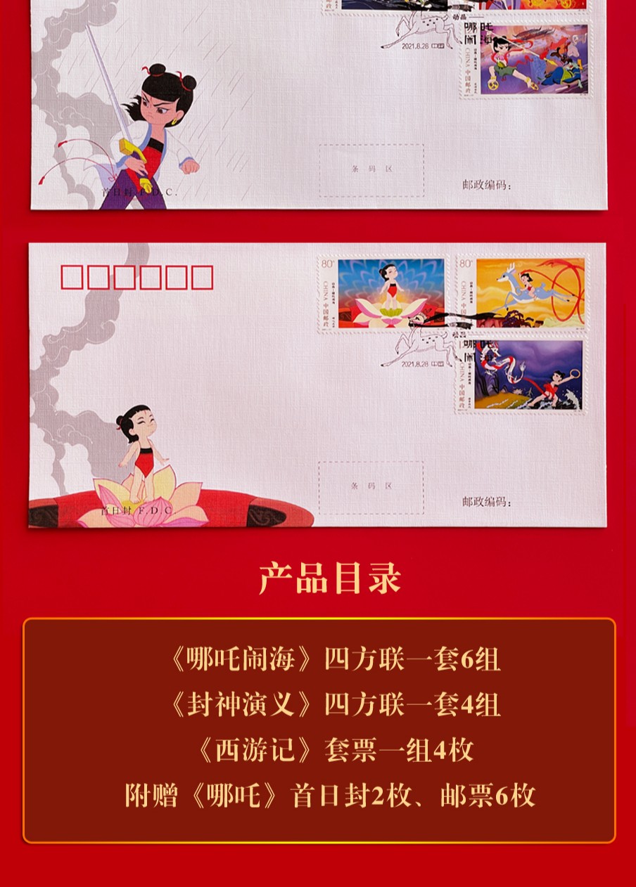 【《哪吒》珍邮票】 赠哪吒首日封2枚!收录50枚主题邮票。枚枚精品,合集成册,珍贵难得!