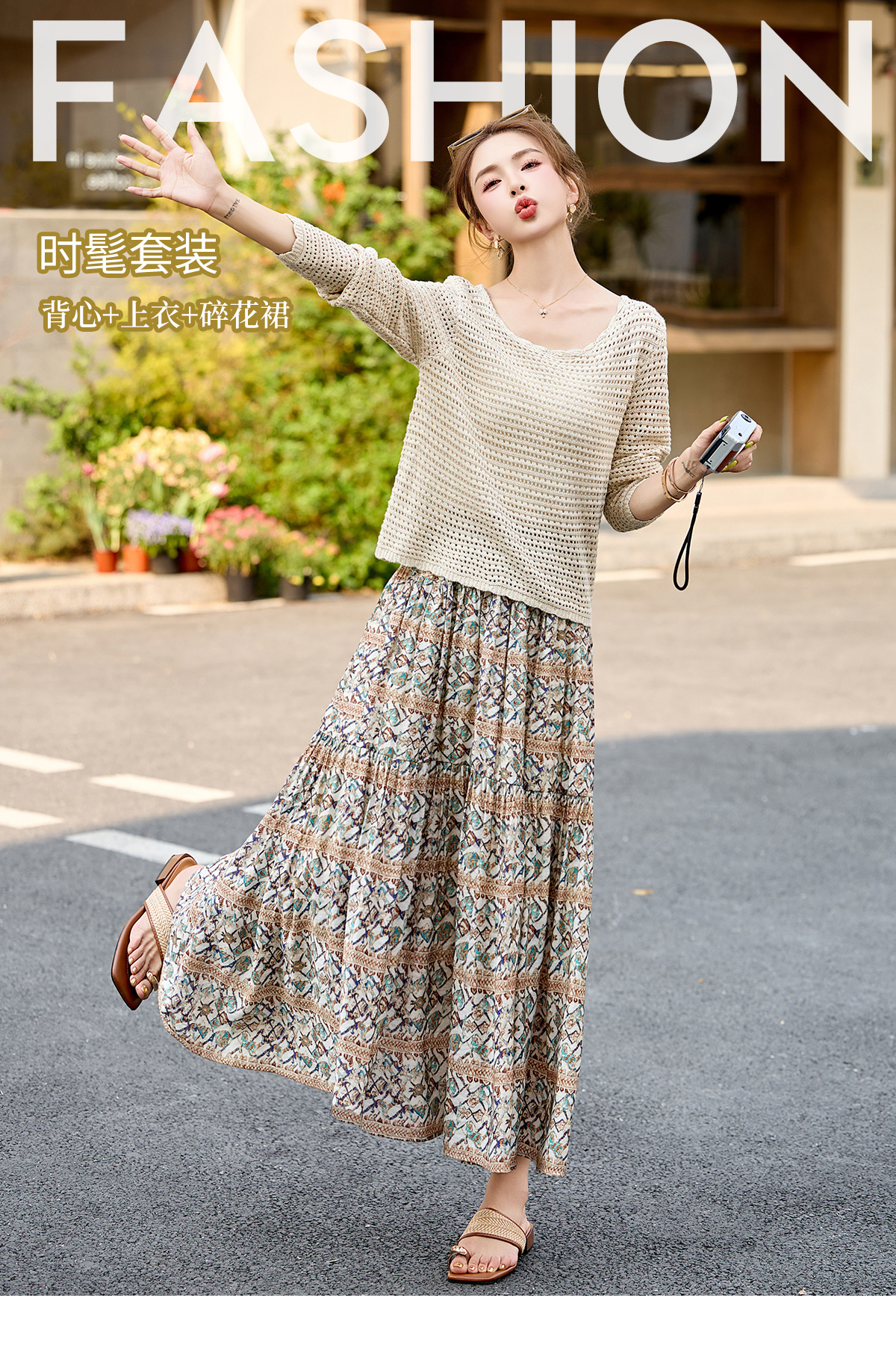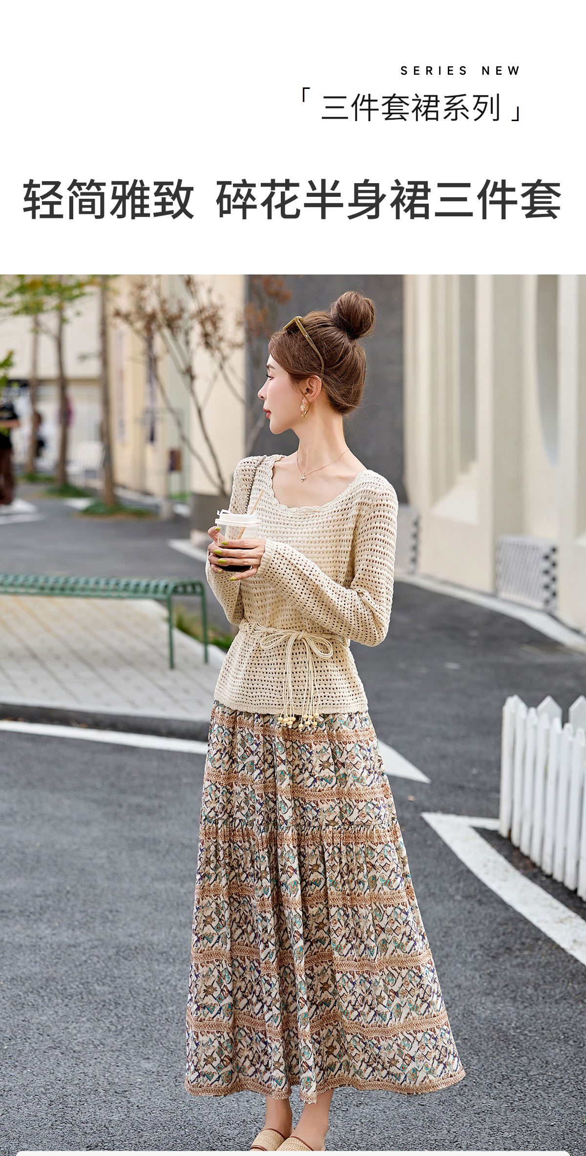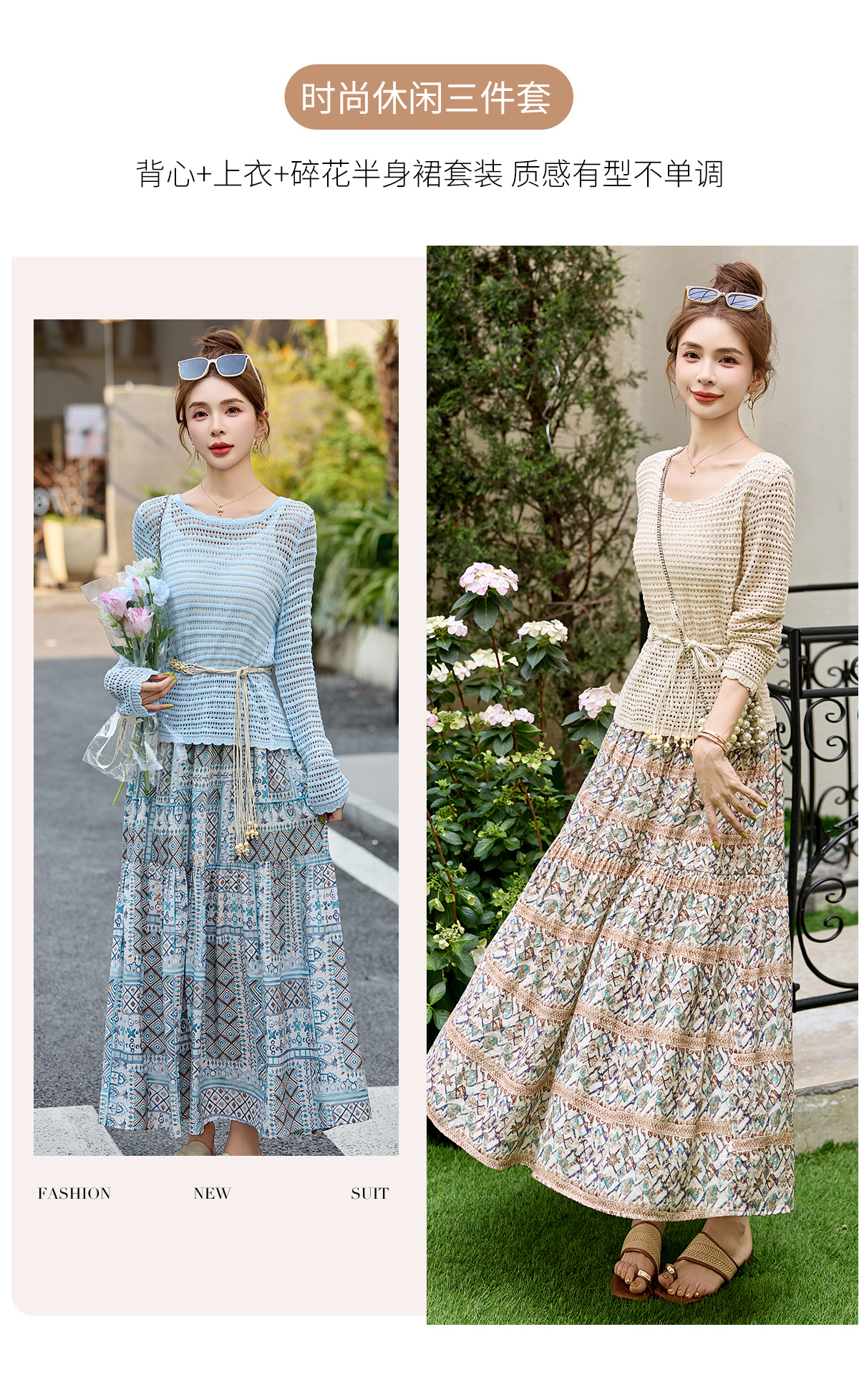 时尚休闲套装,背心+外套+印花半裙三件套裙子HR-ZYQ2527