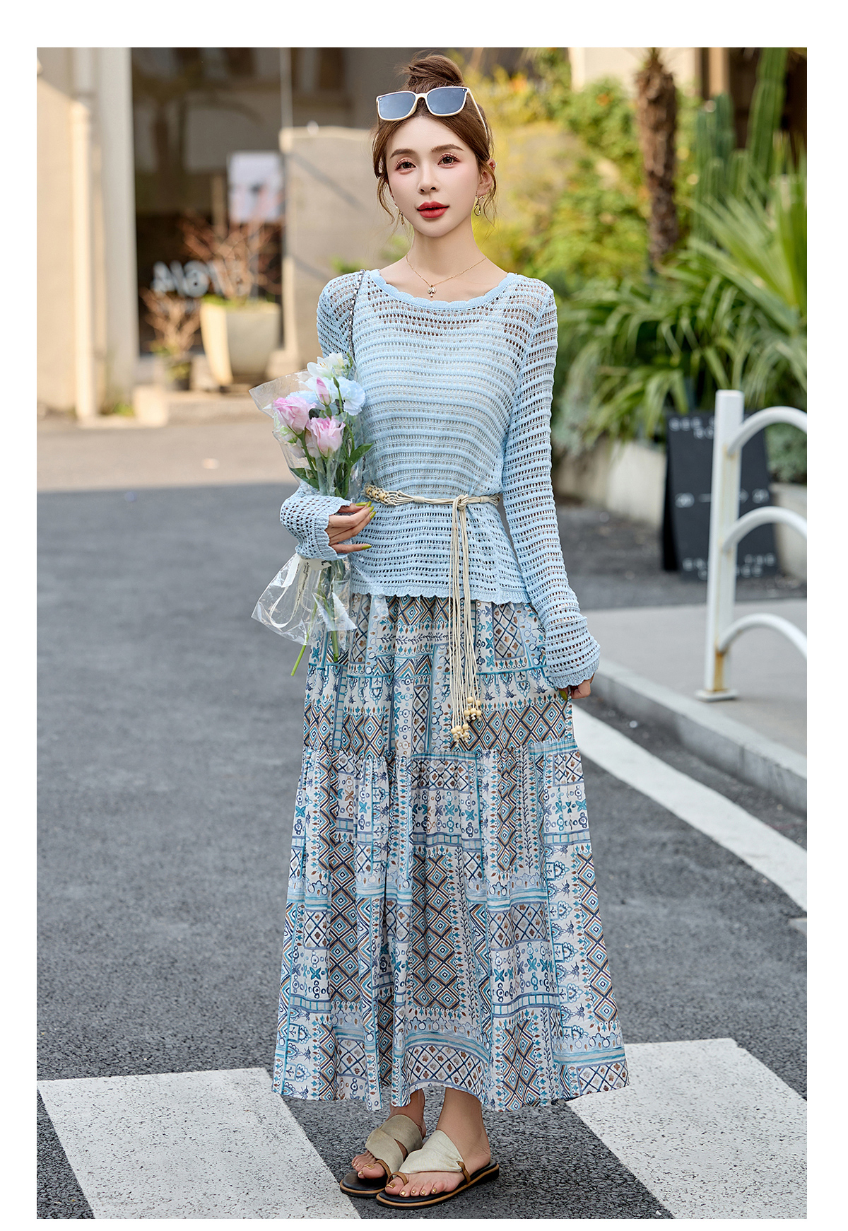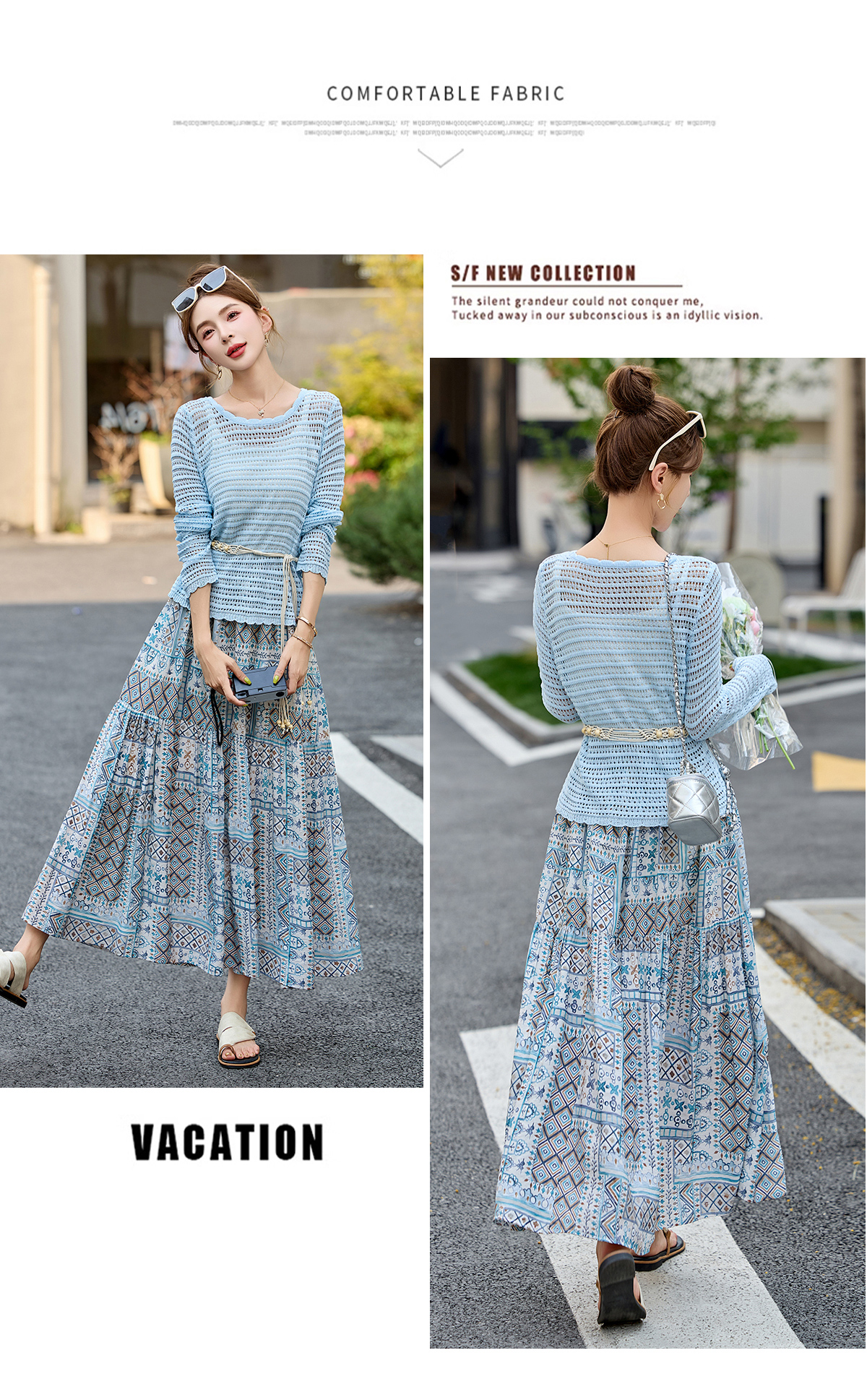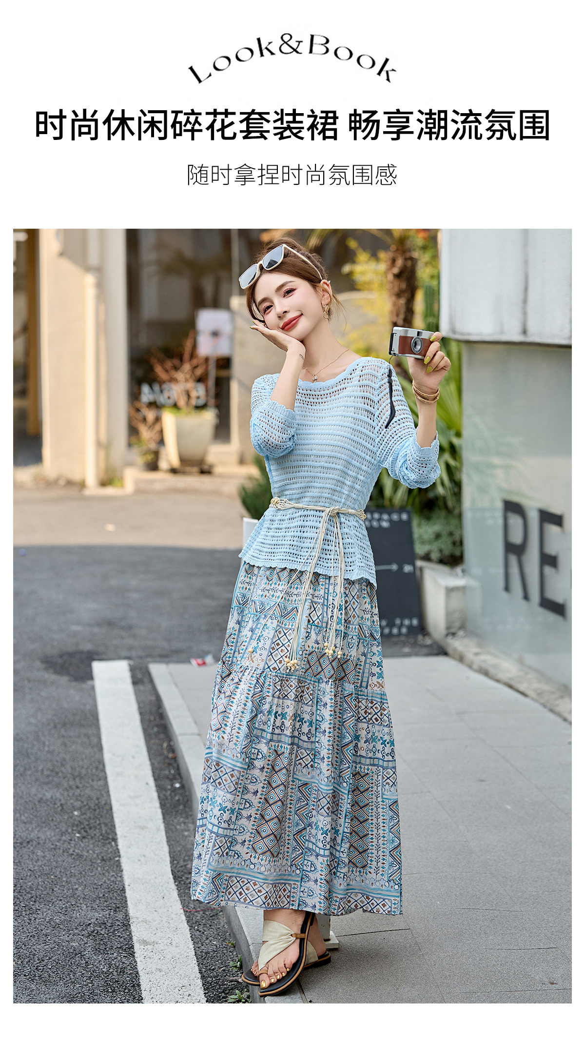 时尚休闲套装,背心+外套+印花半裙三件套裙子HR-ZYQ2527