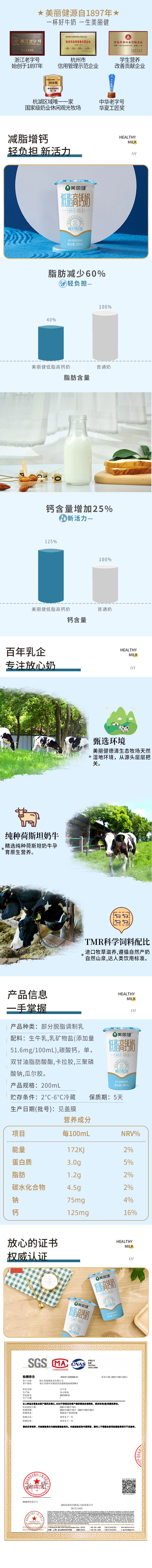 【3天后到店自提】美丽健纸杯低脂高钙奶200mL