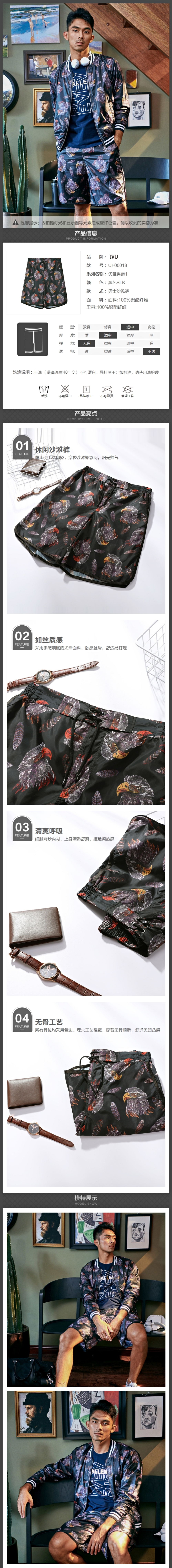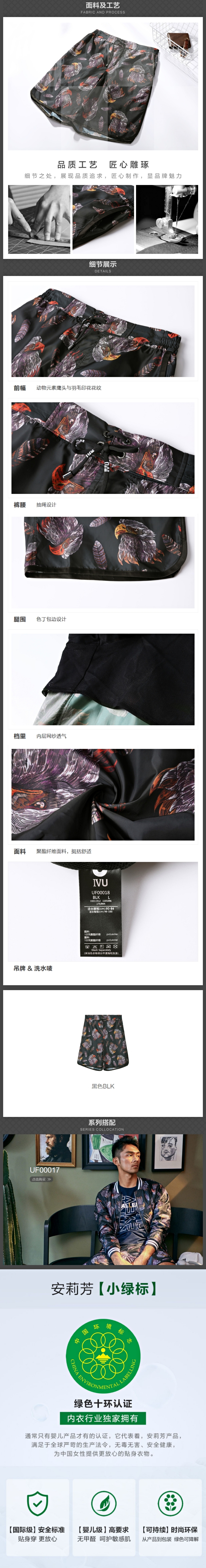 安莉芳旗下IVU时尚印花沙滩裤潮男薄款抽绳休闲短裤UF00018