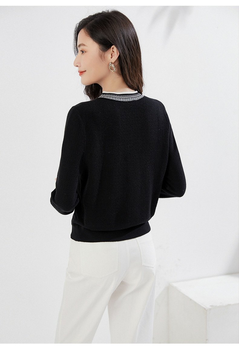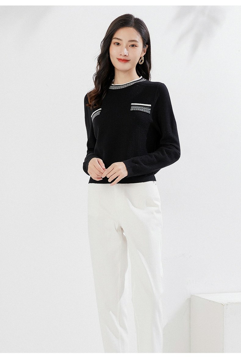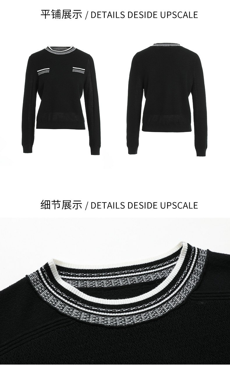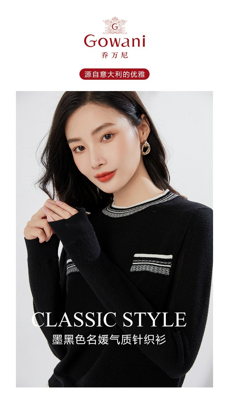 乔万尼秋冬新款针织衫亲肤绵羊毛黑白撞色小香风EI4M642