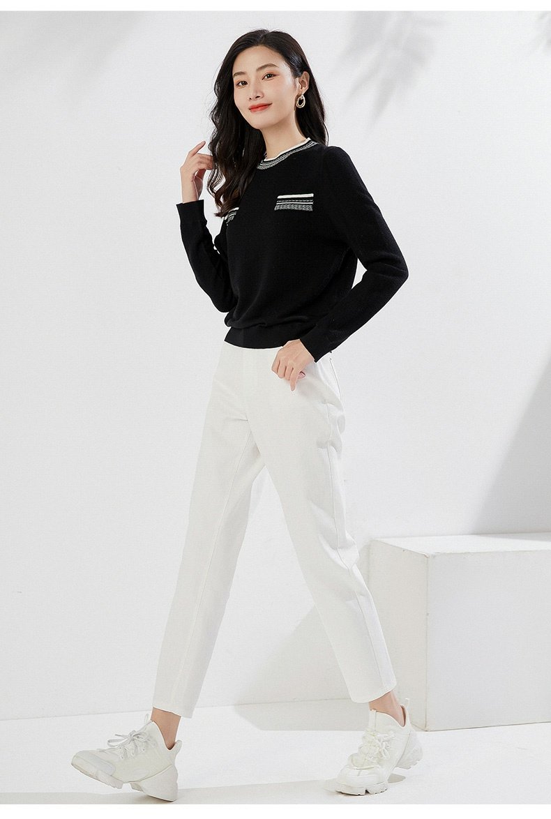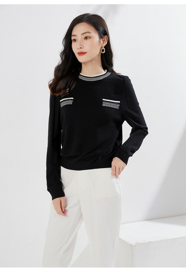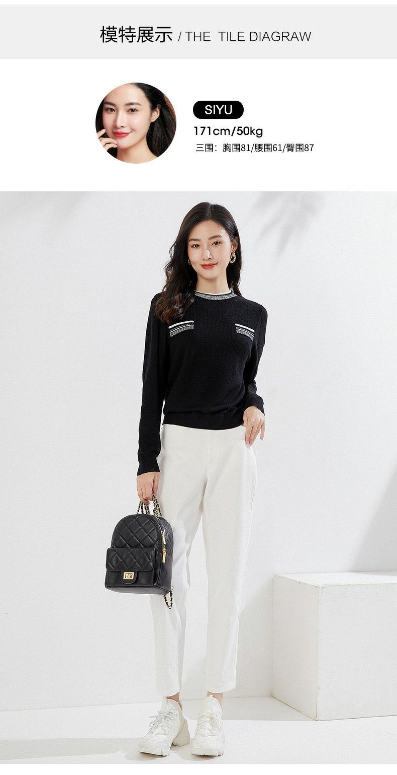 乔万尼秋冬新款针织衫亲肤绵羊毛黑白撞色小香风EI4M642