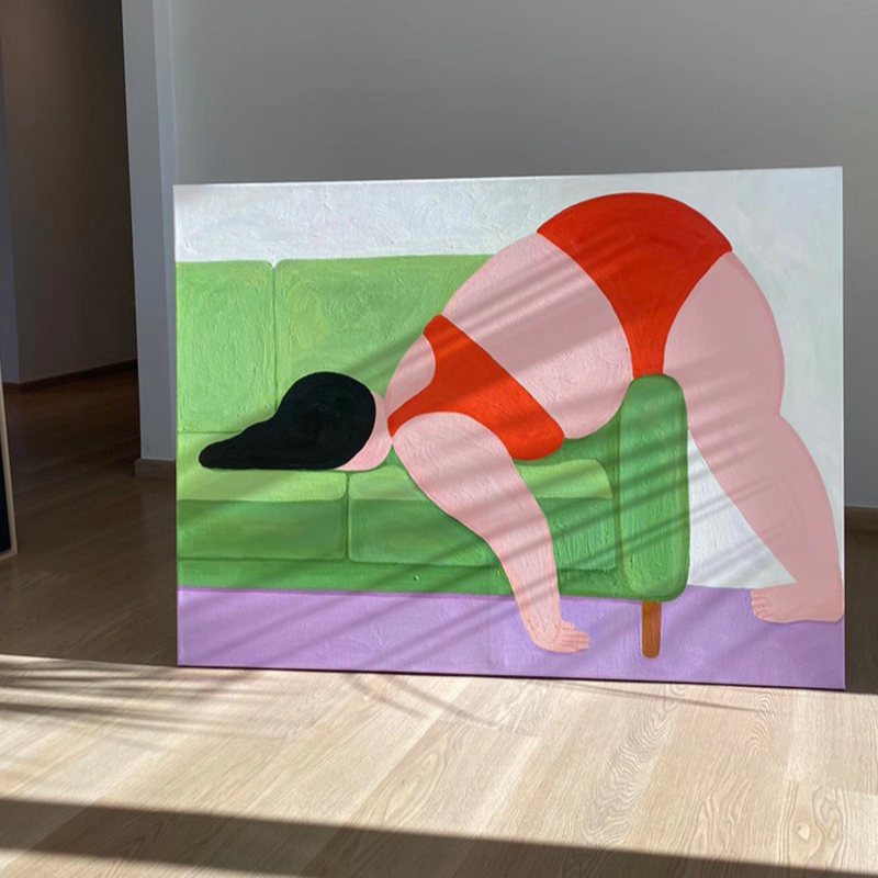 1991年出生于湖南,现居巴塞罗那。她笔下的色彩如海岛般明媚动人,人物总是慵懒微胖却从不焦虑,这和她所处的环境有关,在中国她看到很多人过着内卷、焦虑的生活,这引发了她对"当下"的哲学思考。她认为悠闲才是生活的奢侈品,所以她画了很多"躺平"系列,在她的画里,人物总是在享受着自己的生活,她希望她的画能带给人平静和欢乐。