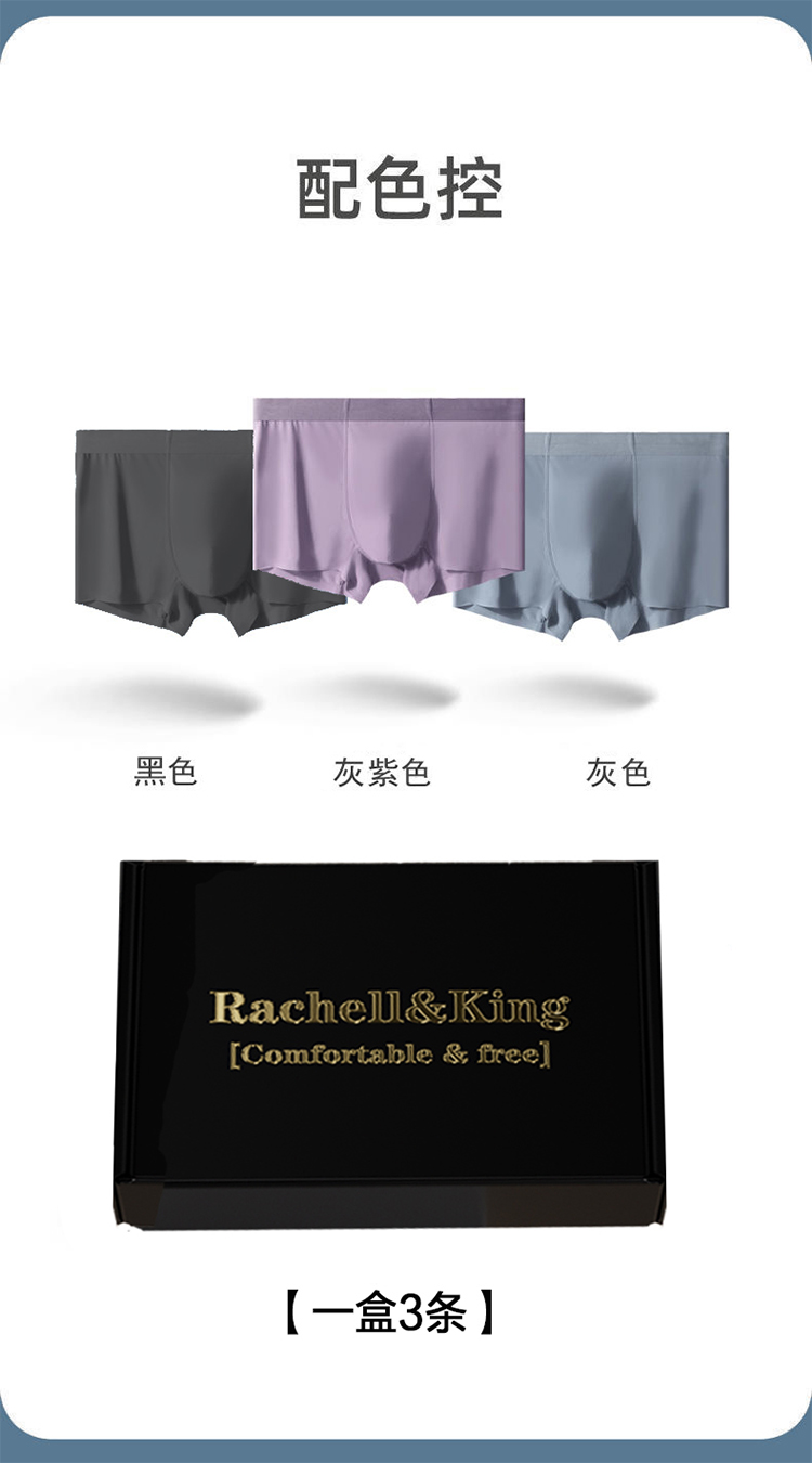 【7A抑菌 丝滑裸感 高弹不绷 】Rachell&King男士冰丝内裤(3条/盒)
