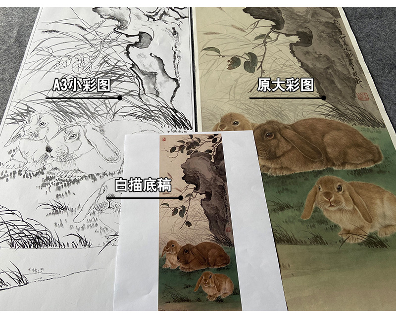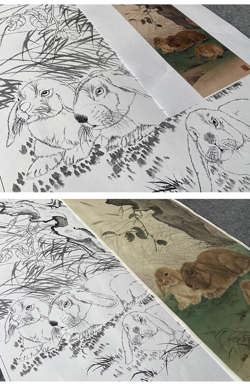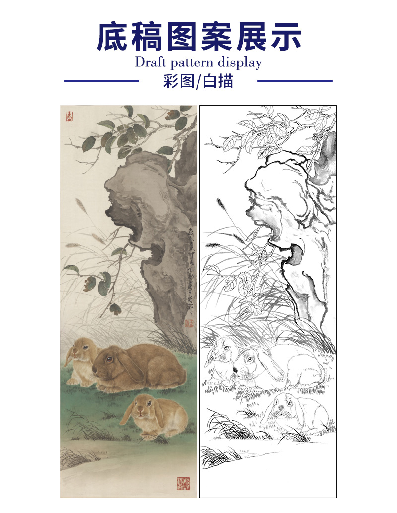 【大彩图】王生勈工笔画白描底稿《兔子》初学者临摹勾线动物线稿A650