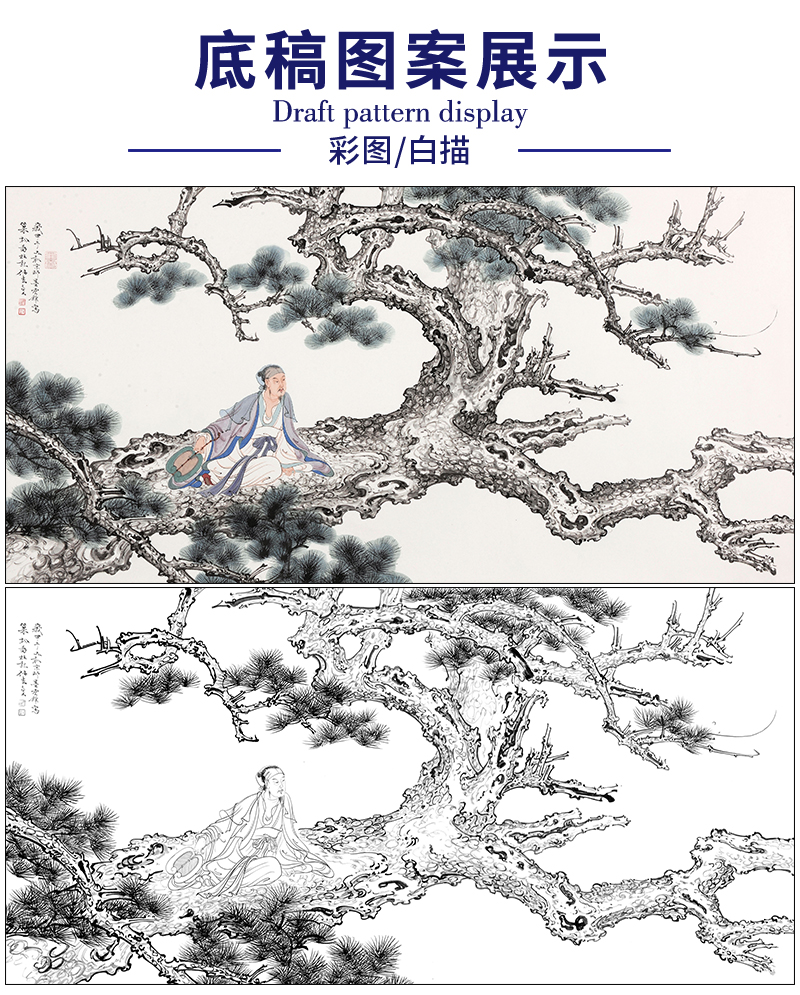 任重山水人物工笔画白描底稿《巢松图》临摹勾线高清打印稿RD75