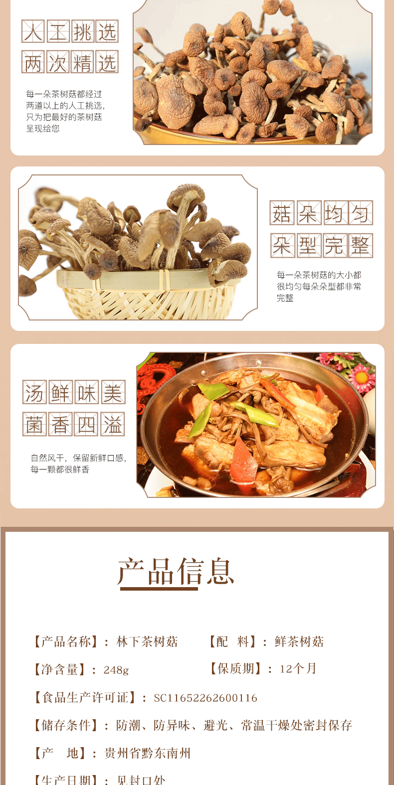 黔东南岑巩【林下茶树菇】248g装 深山好菇 源于自然 全国包邮 部分地区不发货