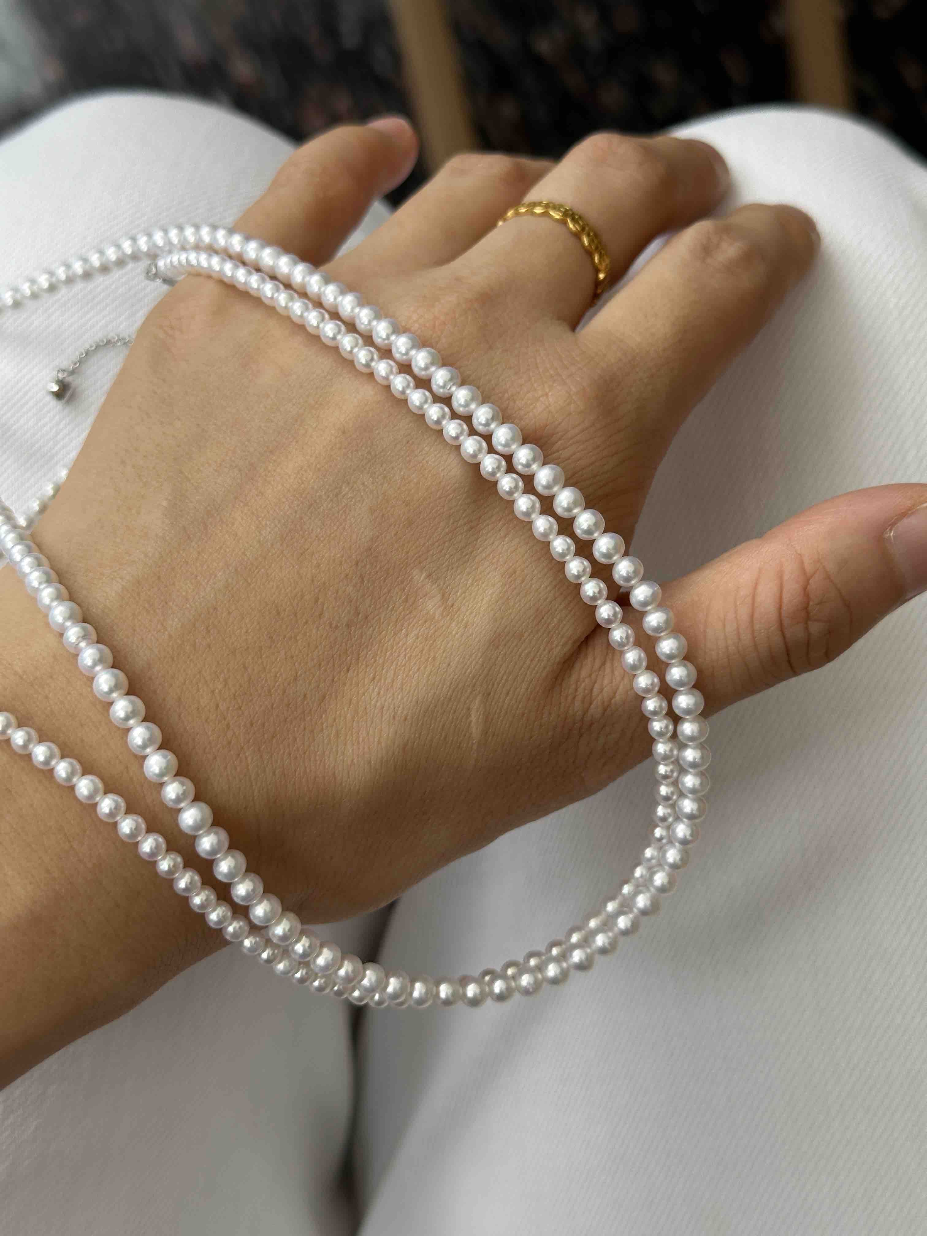 应姐妹们要求,又来给大家定制baby珍珠链啦,这次我选了2个点位大小,分别是3-3.5mm和3.5-4mm