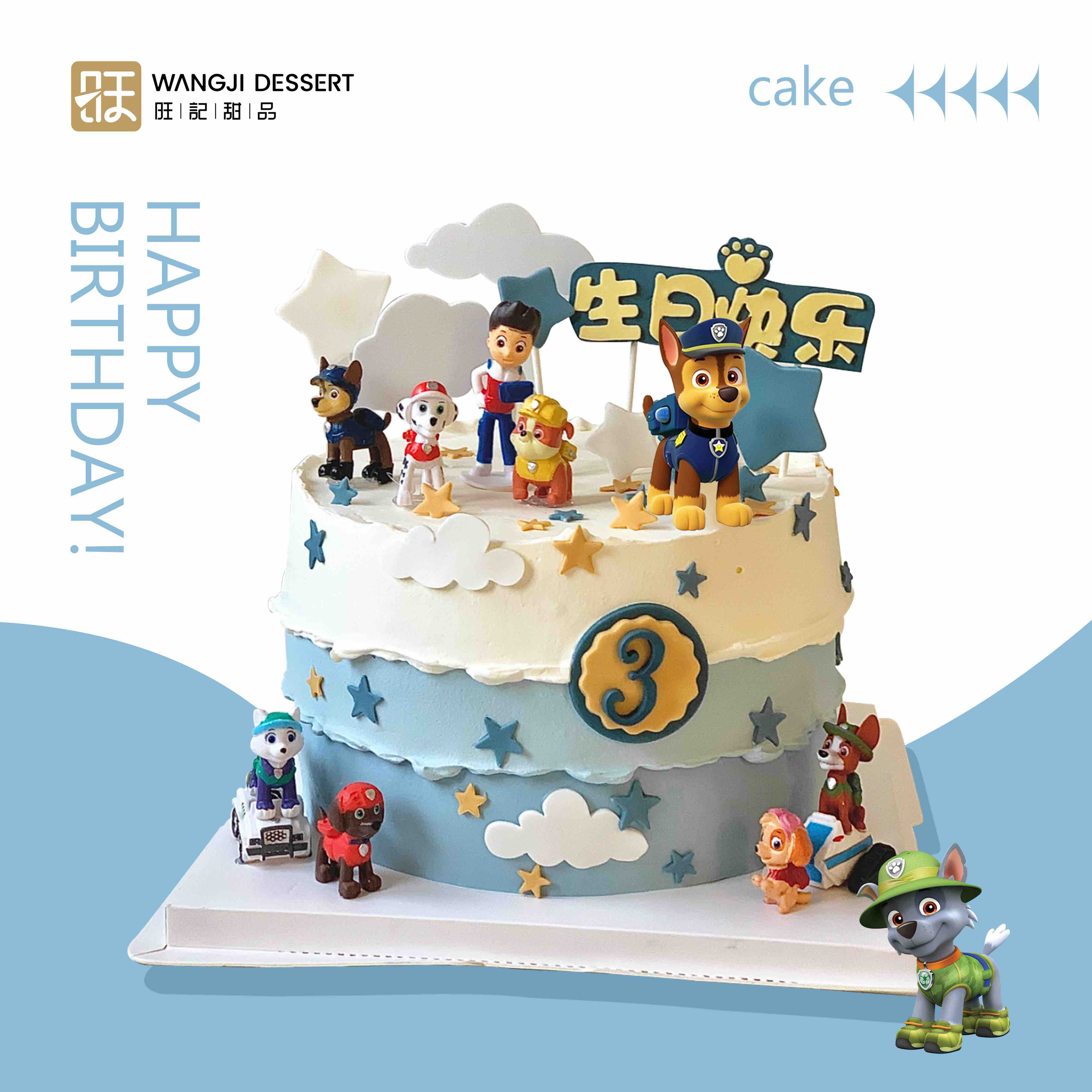 汪汪队,新鲜芒果夹心戚风蛋糕,有进口动物淡奶油和混合乳脂奶油可选