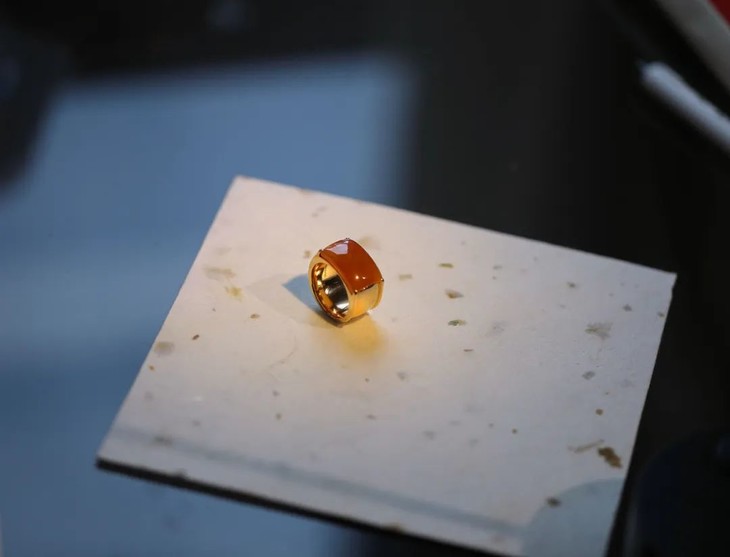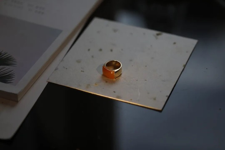 红翡朝上,自是一枚有存在感,压手感的大戒。